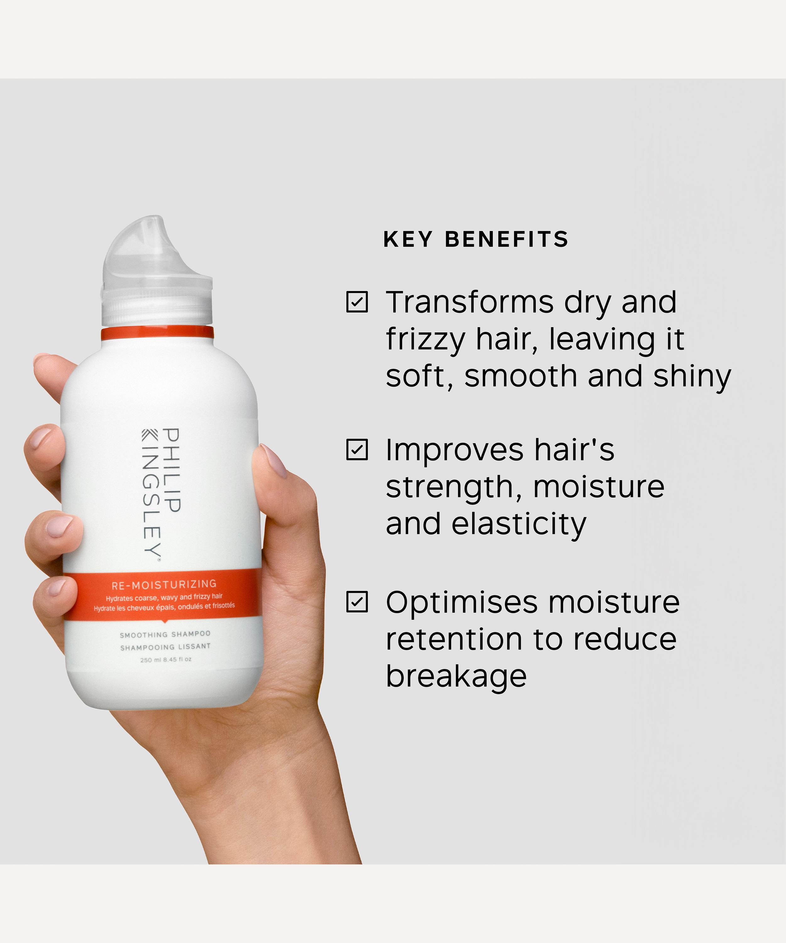Offering the ultimate cleanse for curly, frizzy and wavy hair types, Philip Kingsley's Re-Moisturising Smoothing Shampoo boasts a highly effective formula that targets even the driest and most coarse hair.