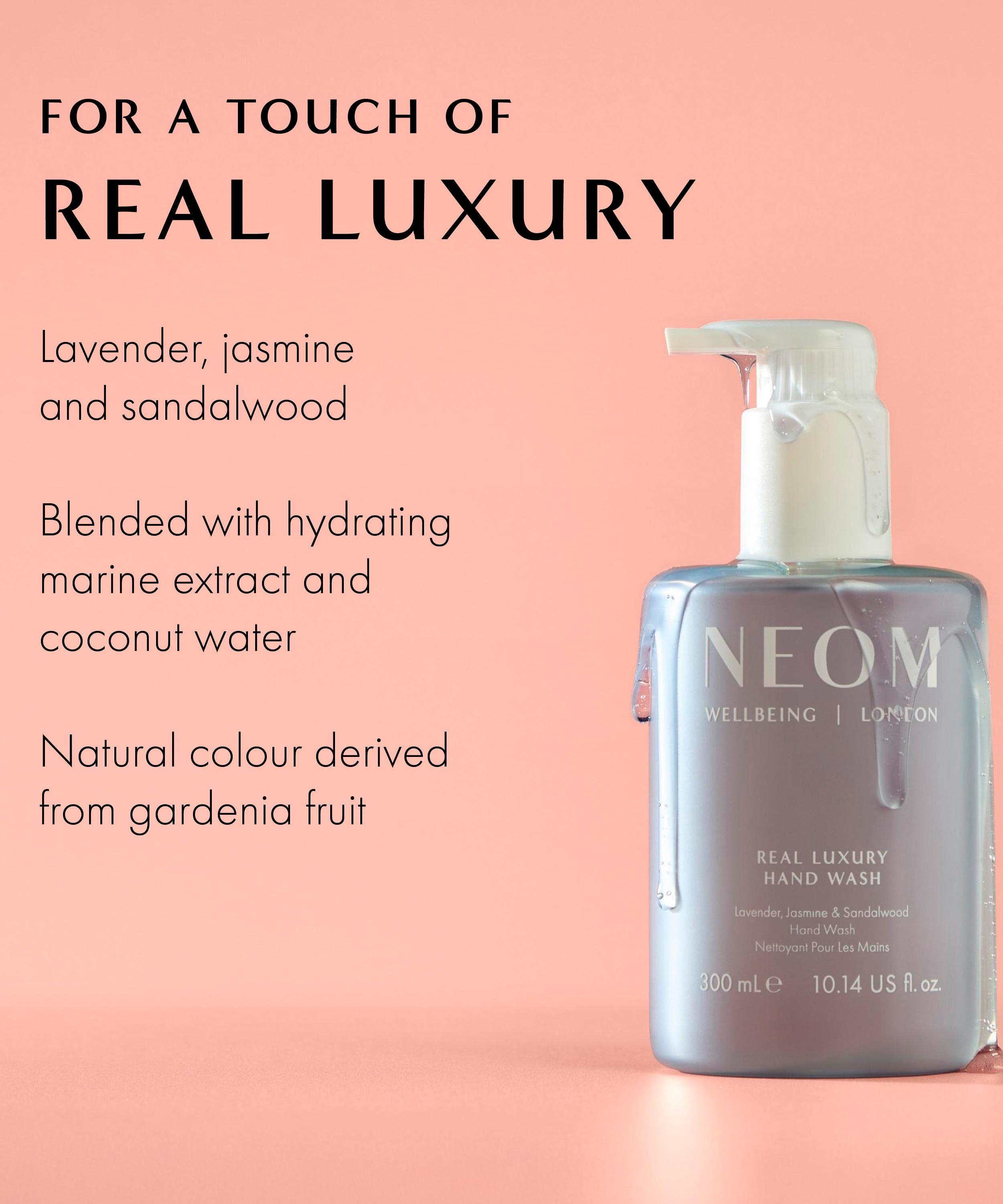 Offering an indulgent addition to your daily routine, NEOM Wellbeing London's Real Luxury Hand Wash is infused the calming aromas of jasmine, lavender and sandalwood.