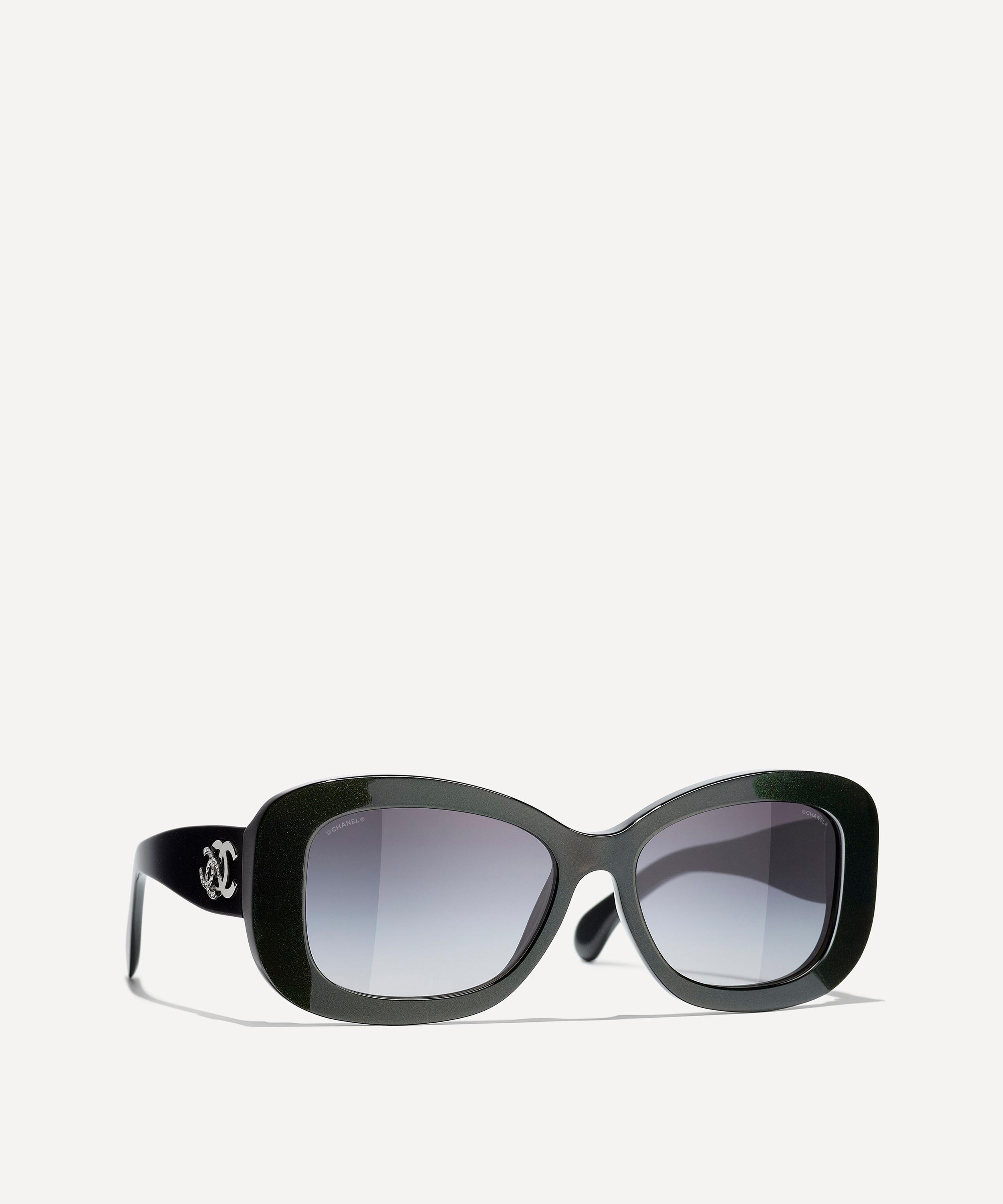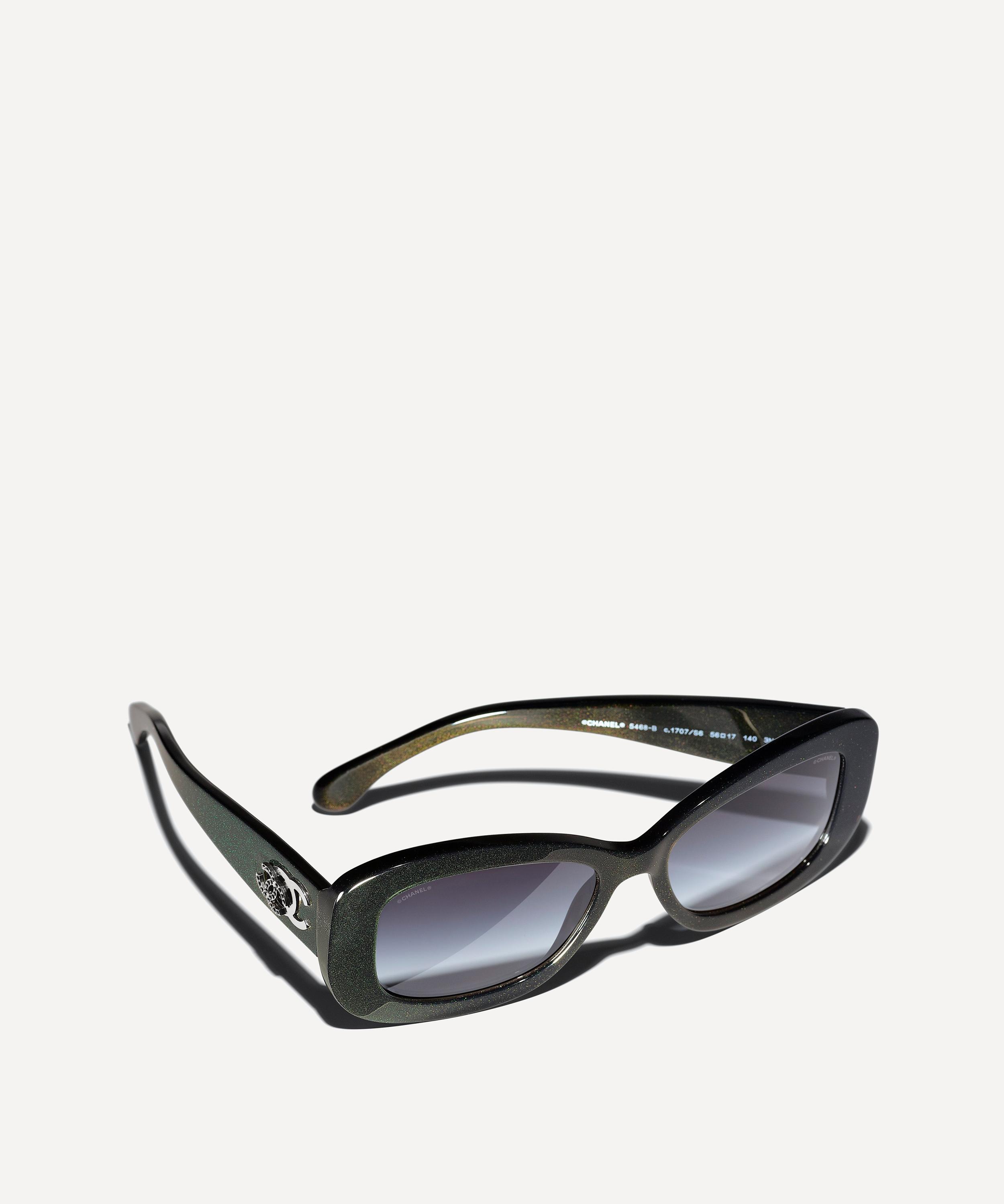 Show your affiliation for the one of the world’s most iconic fashion houses in these rectangle sunglasses from CHANEL. Crafted from durable acetate, this pair feature glossy, full rim frames in a vivid green colourway. Designed to effortlessly exude the label's renowned timeless glamour, the oversized frames are finished with the world-recognisable double c logo at the temples - style them with pulled-back hair to show off the details.