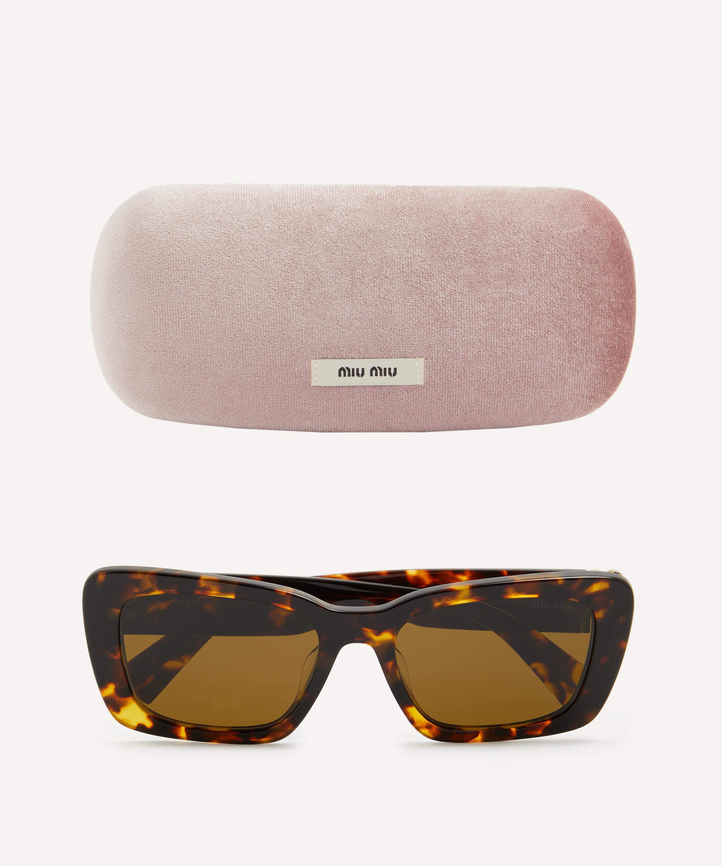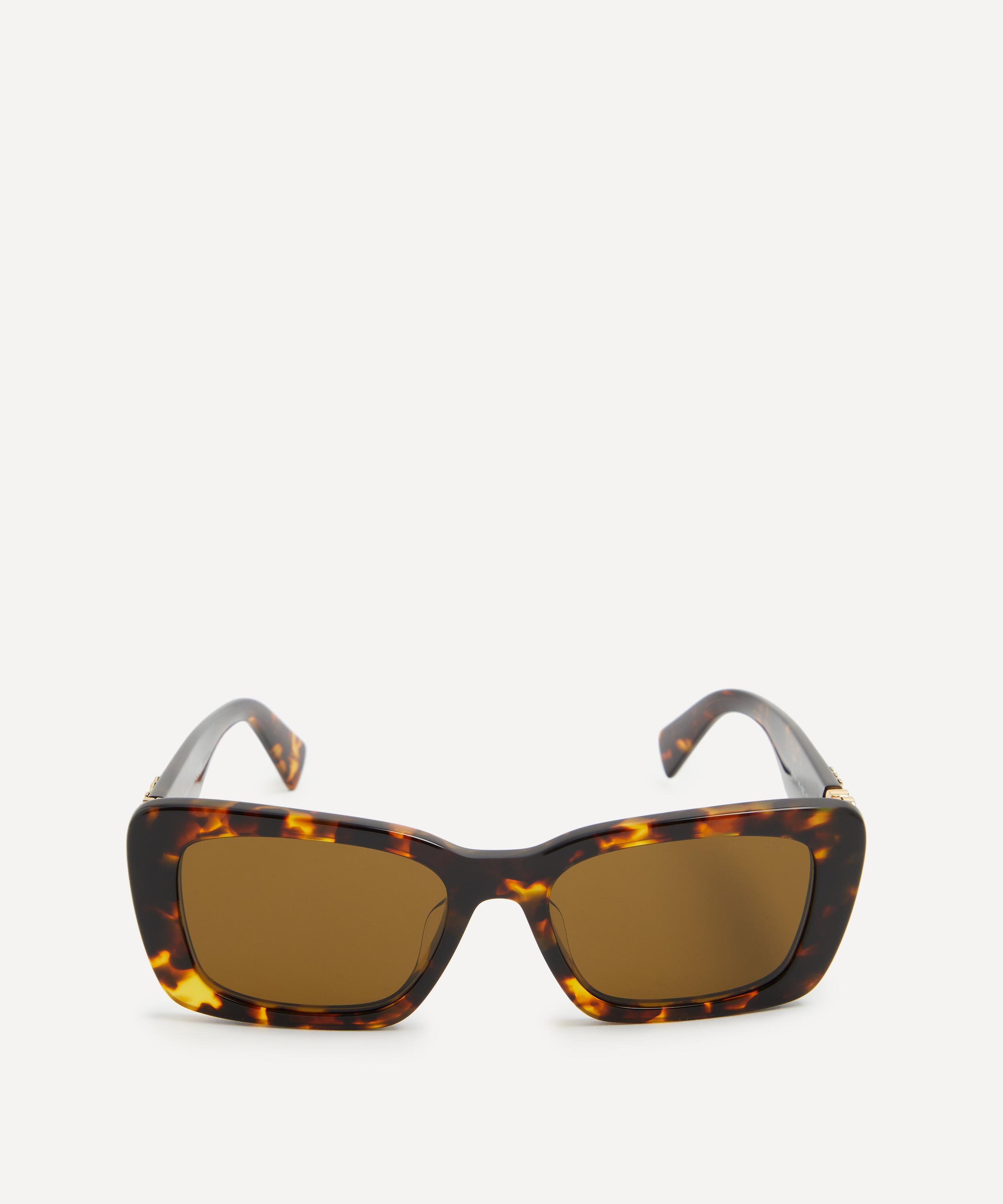 Heighten the impact of any attire with these rectangle sunglasses from Miu Miu. Expertly crafted from Havana acetate, to create a statement pair that instantly draws the eye, these sunnies are fitted with a saddle nose bridge and brown gradient lenses to shade and protect your eyes from UV light. Complete with the signature branding at the temples, they make for an ultra-chic finish to your curated looks.