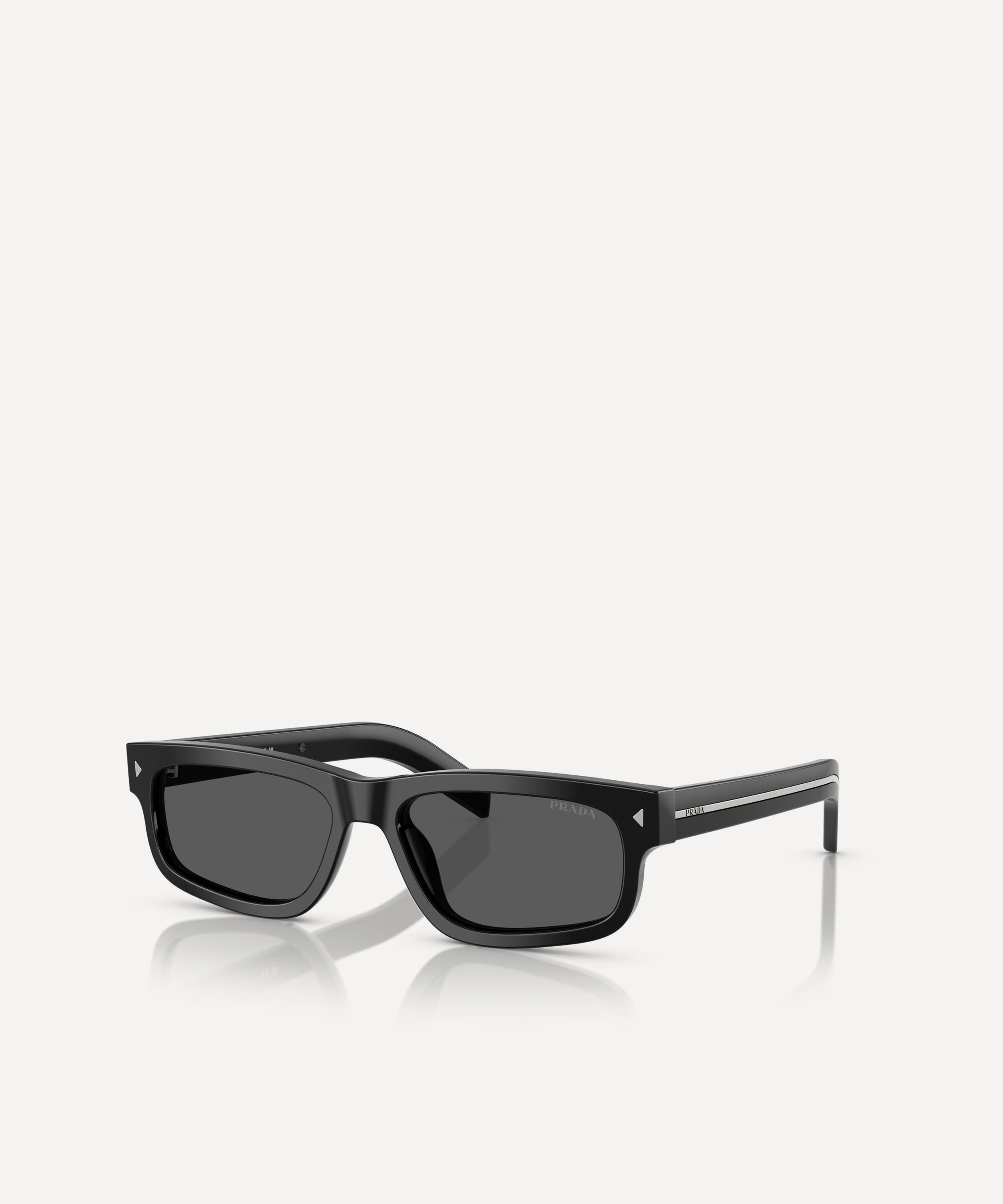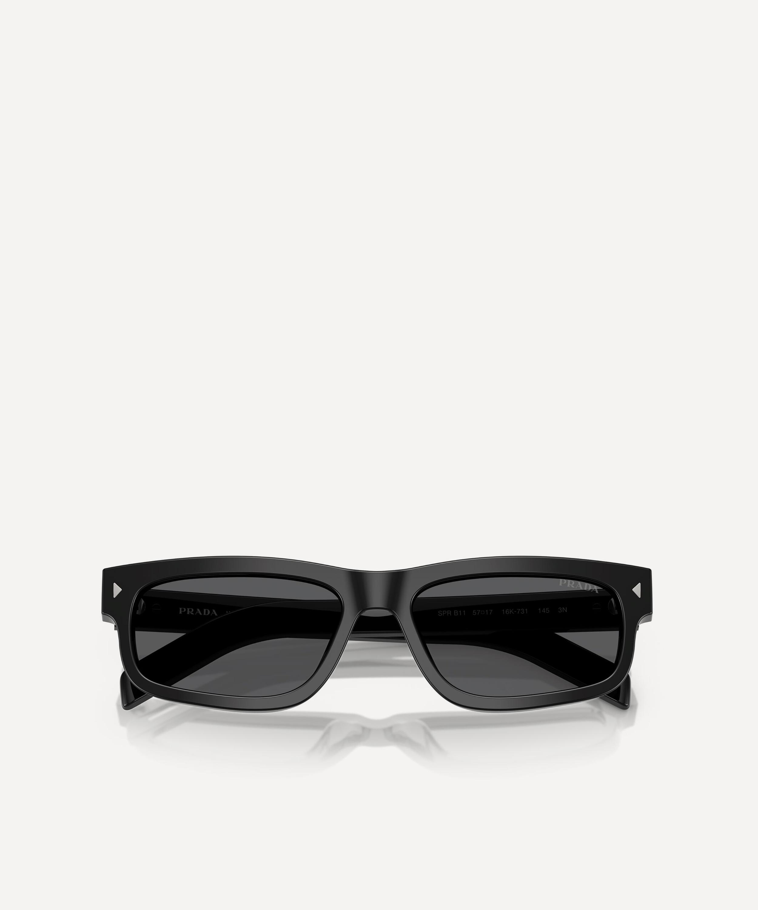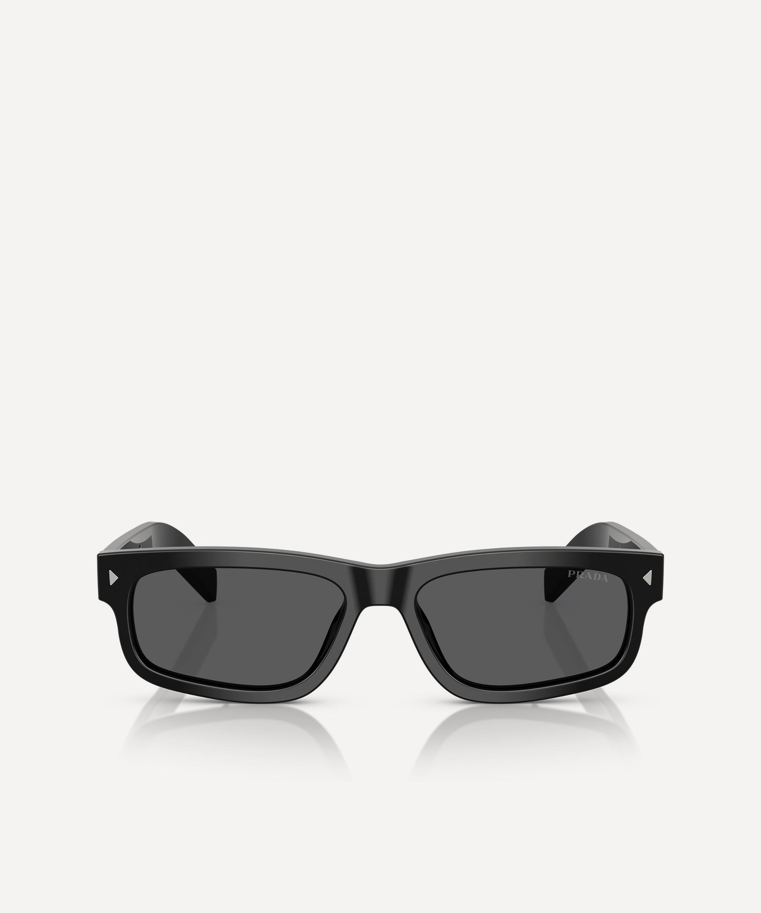 Invigorate any attire with Prada’s rectangle sunglasses for a highly contemporary flair. Expertly crafted from premium acetate in a black colourway, this stylish pair feature a sleek silhouette with a comfortable saddle nose bridge and dark-grey lenses to give you a clearer view on sunny days whilst protecting your eyes from UV light. Finished with a subtle brand logo at the temple for a punctuating finish, throw them on whenever you need a statement boost.