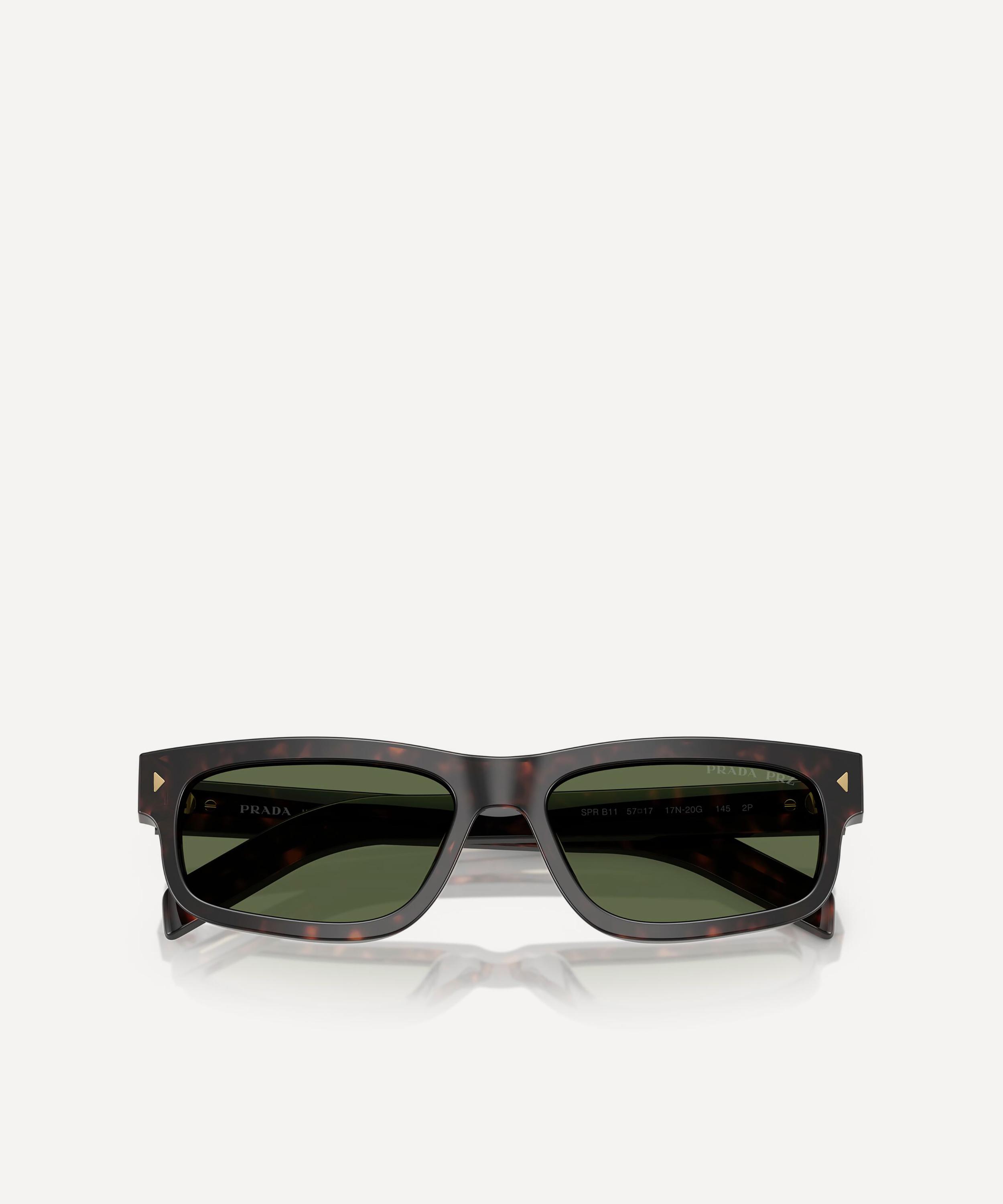 Invigorate any attire with Prada’s rectangle sunglasses for a highly contemporary flair. Expertly crafted from premium acetate in a tortoise colourway, this stylish pair feature a sleek silhouette with a comfortable saddle nose bridge and green-tinted lenses to give you a clearer view on sunny days whilst protecting your eyes from UV light. Finished with a subtle brand logo at the temple for a punctuating finish, throw them on whenever you need a statement boost.