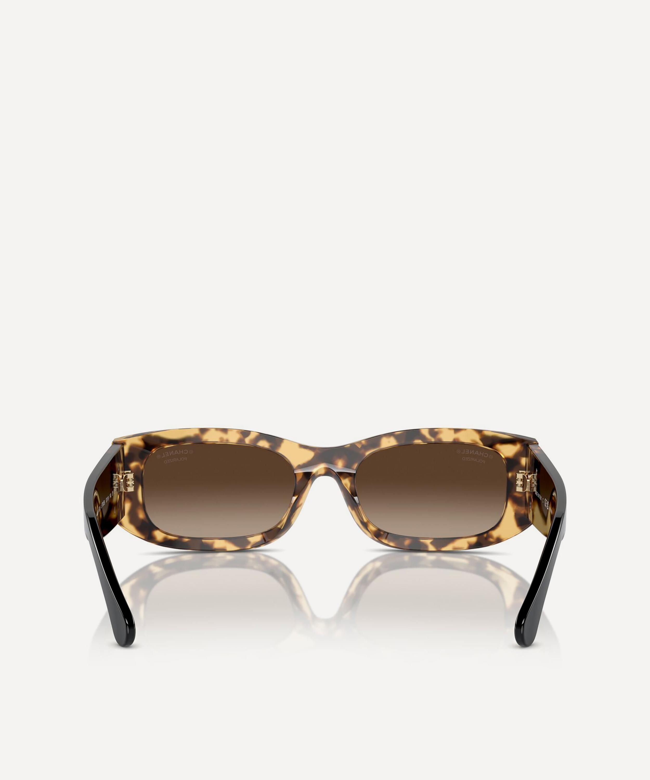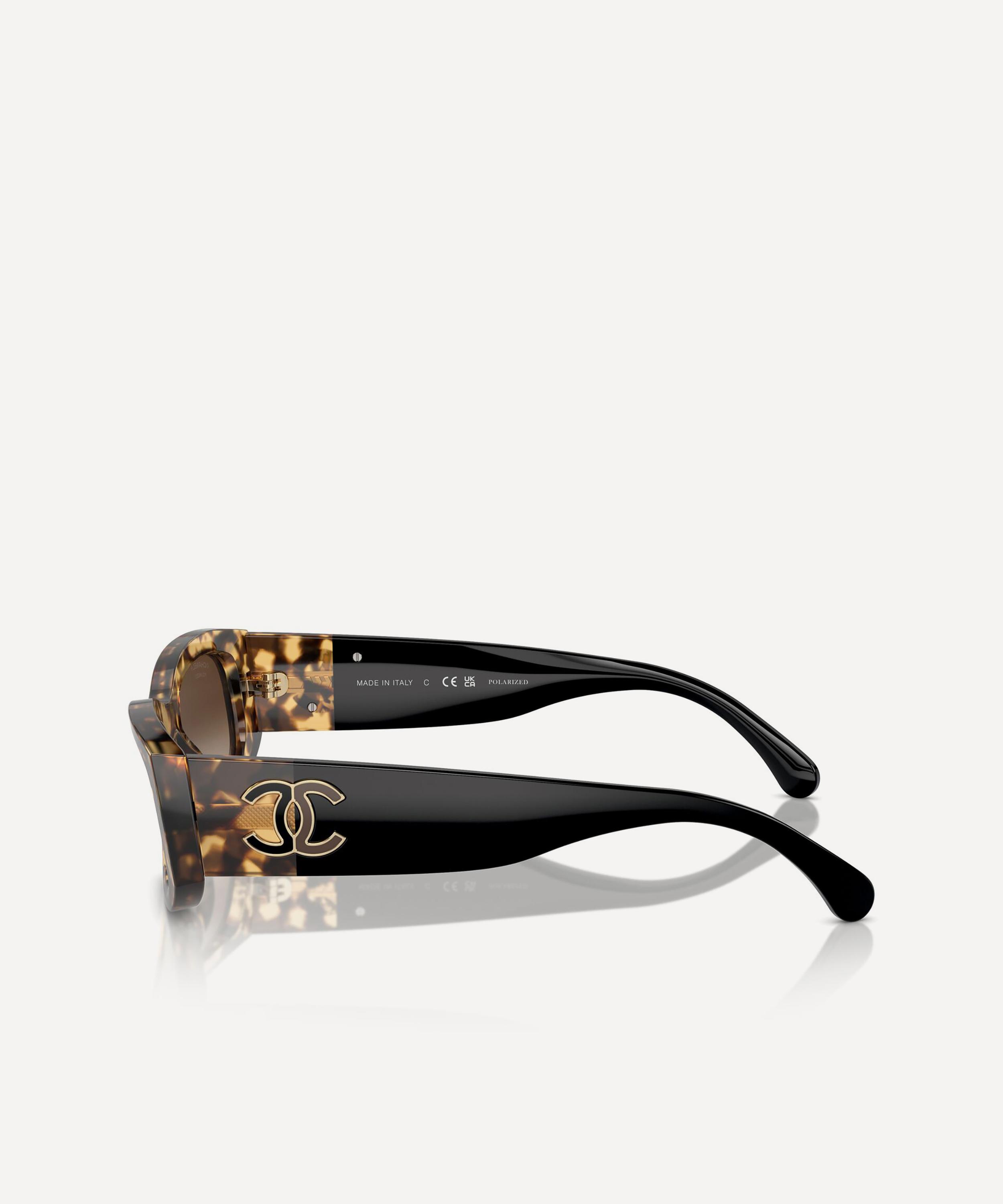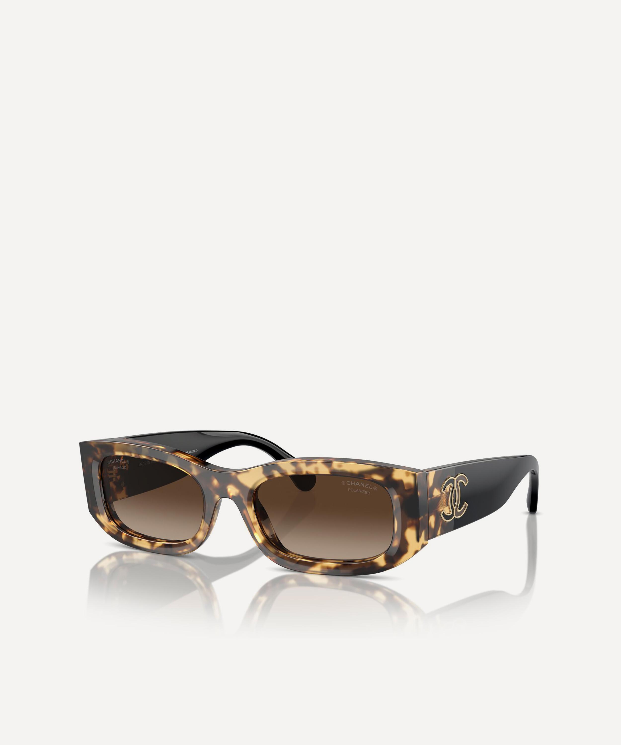 Add a touch of glamour to your everyday look with these rectangle sunglasses from CHANEL. Crafted from premium acetate in a tortoise colourway, they feature a sleek silhouette with a comfortable saddle nose bridge and brown gradient, polarised lenses to protect your eyes from UV light. Complete with the iconic CHANEL emblem logo, style them with pulled-back hair to show off the details.