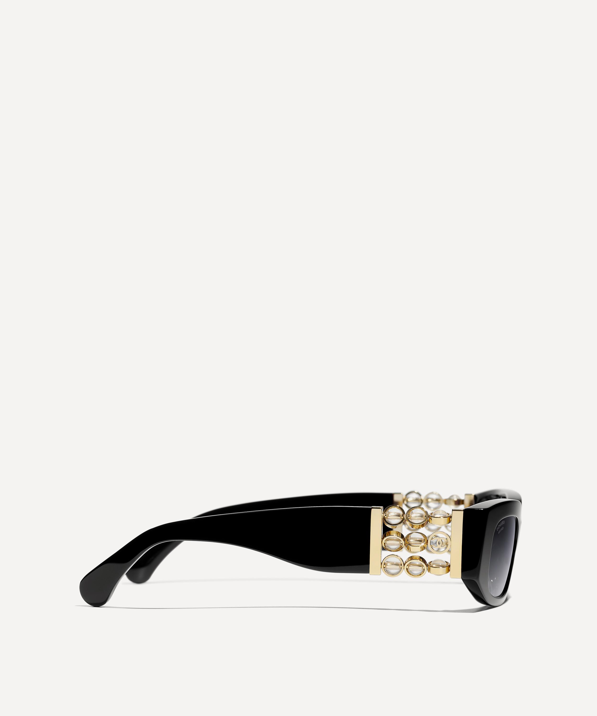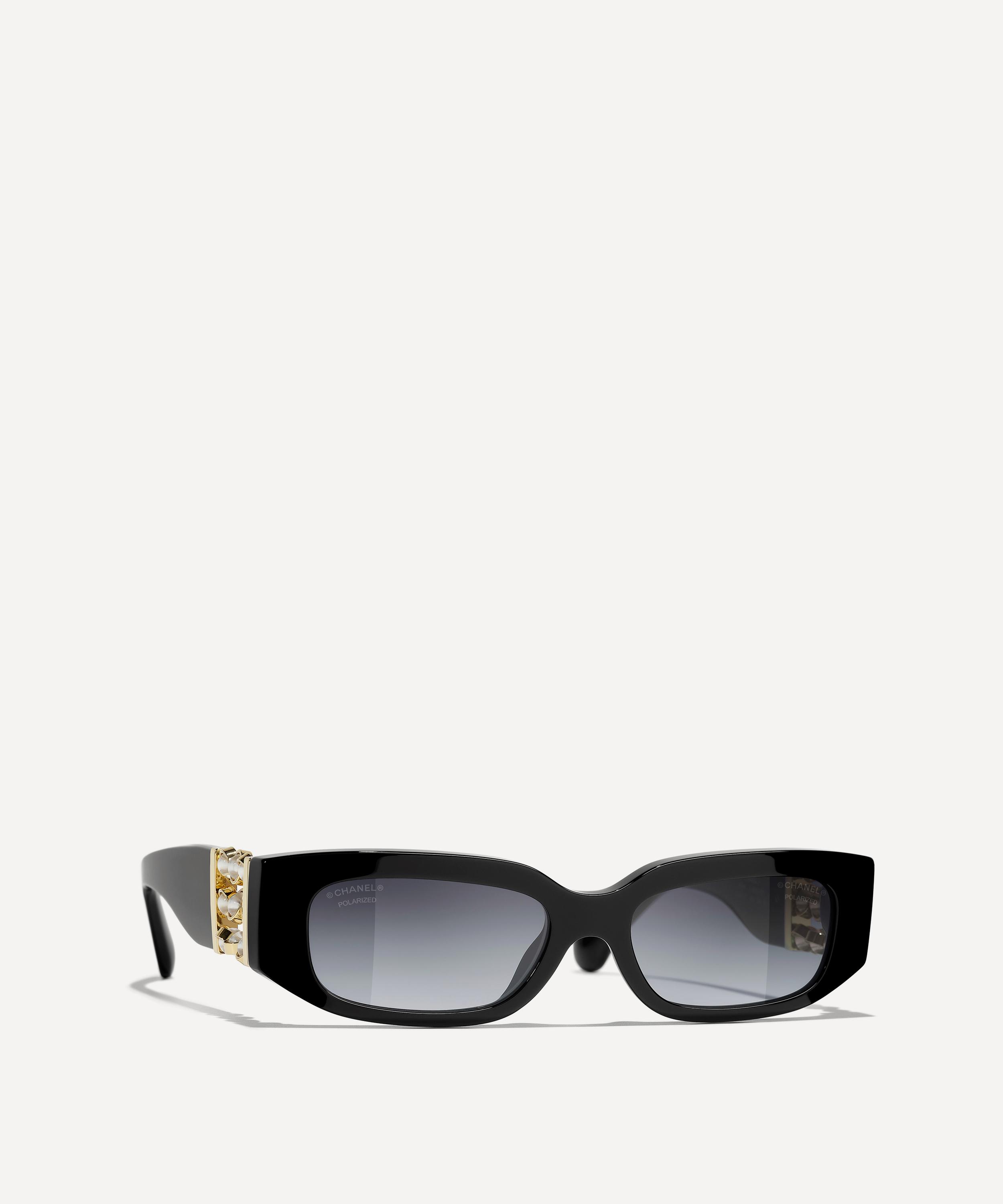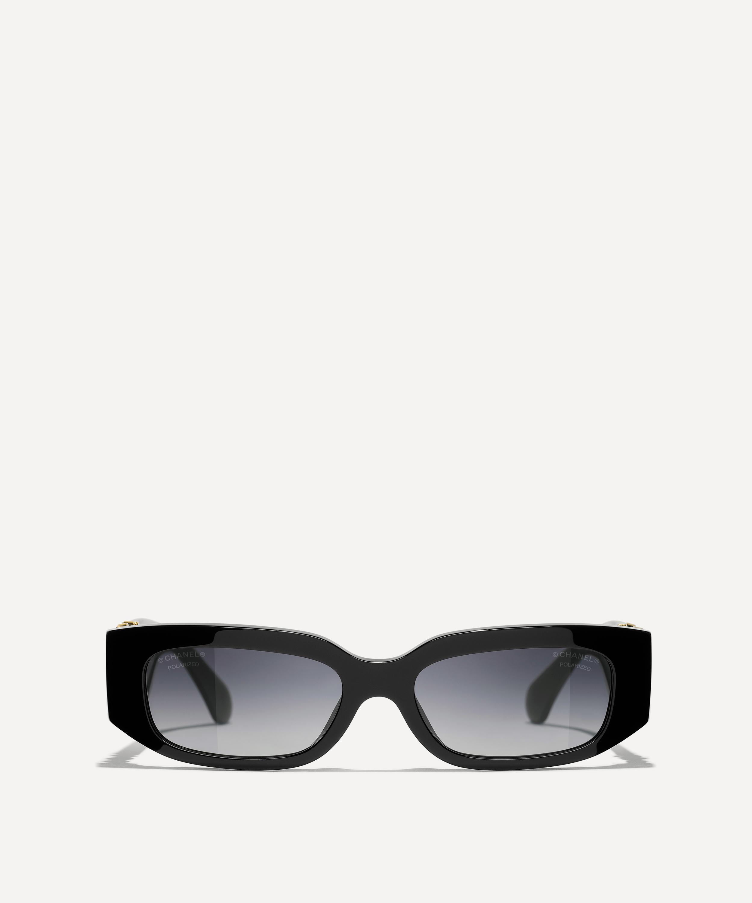 Add a touch of glamour to your everyday look with these rectangle sunglasses from CHANEL. Crafted from premium acetate in a black colourway, they feature a sleek silhouette with a comfortable saddle nose bridge and grey gradient, polarised lenses to protect your eyes from UV light. Adorned with spinning orbs to the temples, they’re complete with the iconic CHANEL emblem logo. Style them with pulled-back hair to show off the details.