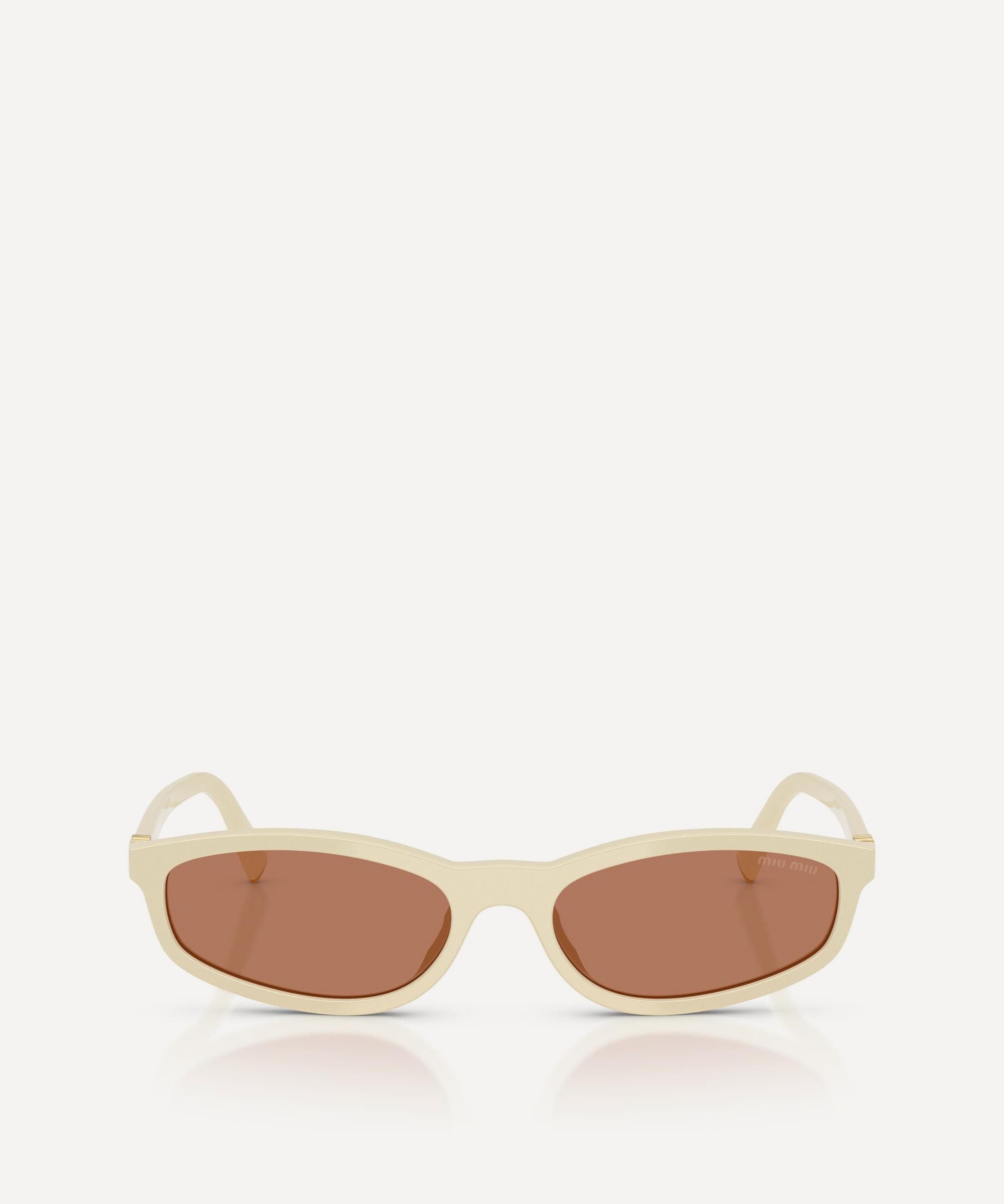 Heighten the impact of any attire with these rectangle sunglasses from Miu Miu. Expertly crafted from white acetate, to create a statement pair that instantly draws the eye, these sunnies are fitted with a comfortable saddle nose bridge and brown-tinted lenses to shade and protect your eyes from UV light. Complete with signature branding at the temples, they make for an ultra-chic finish to your curated looks.