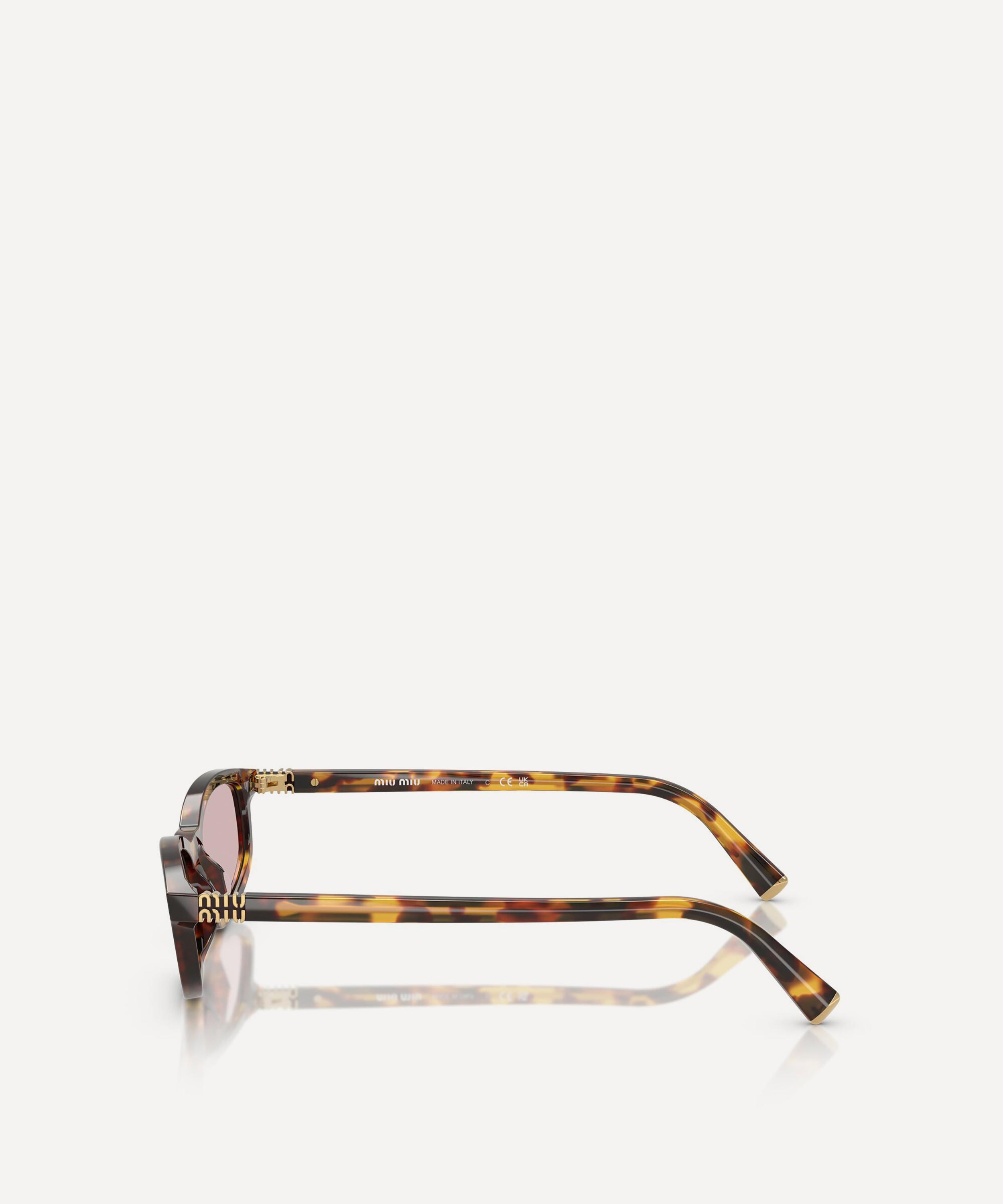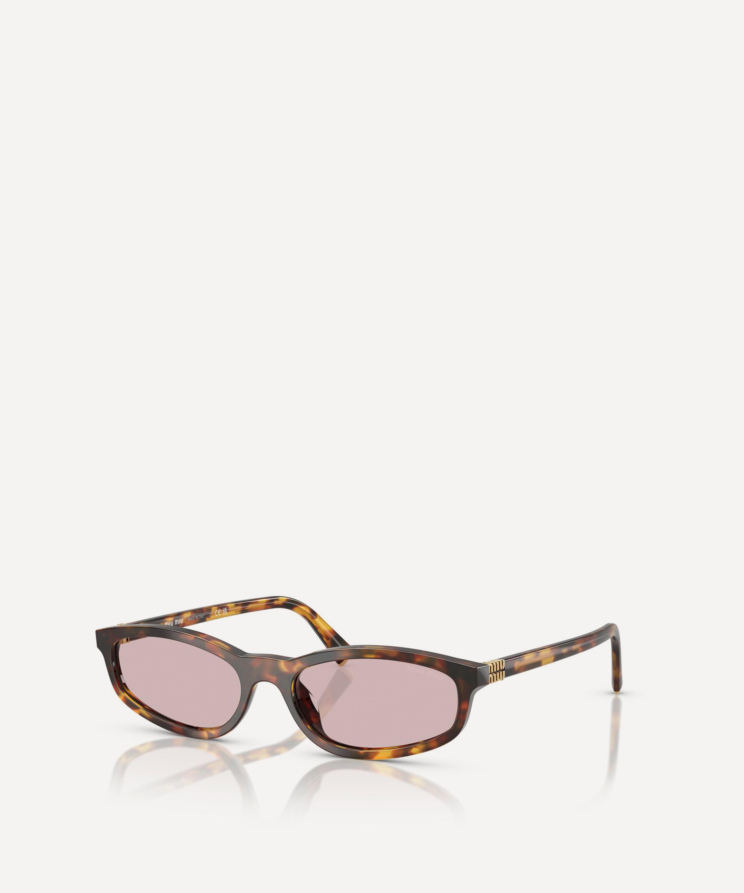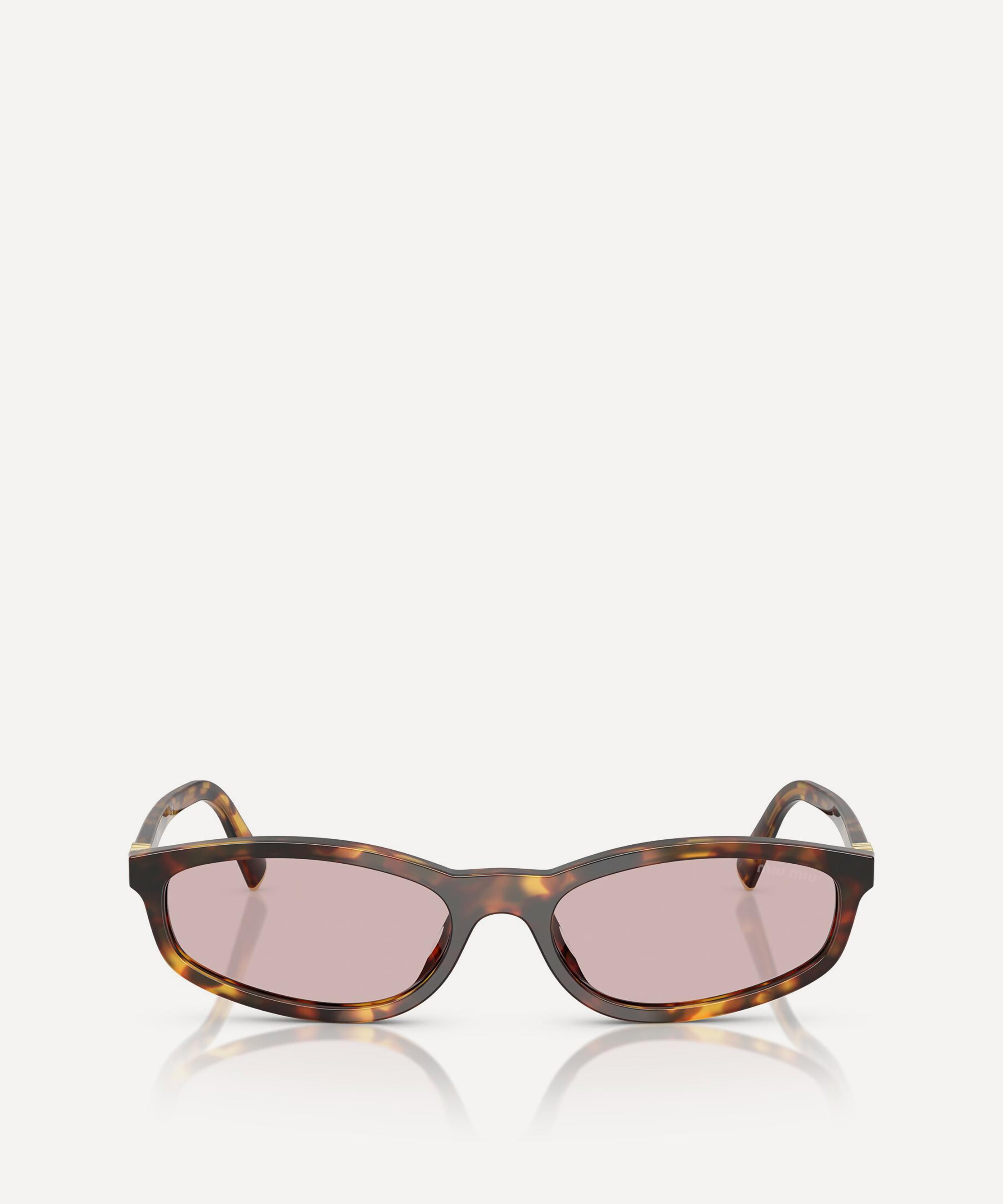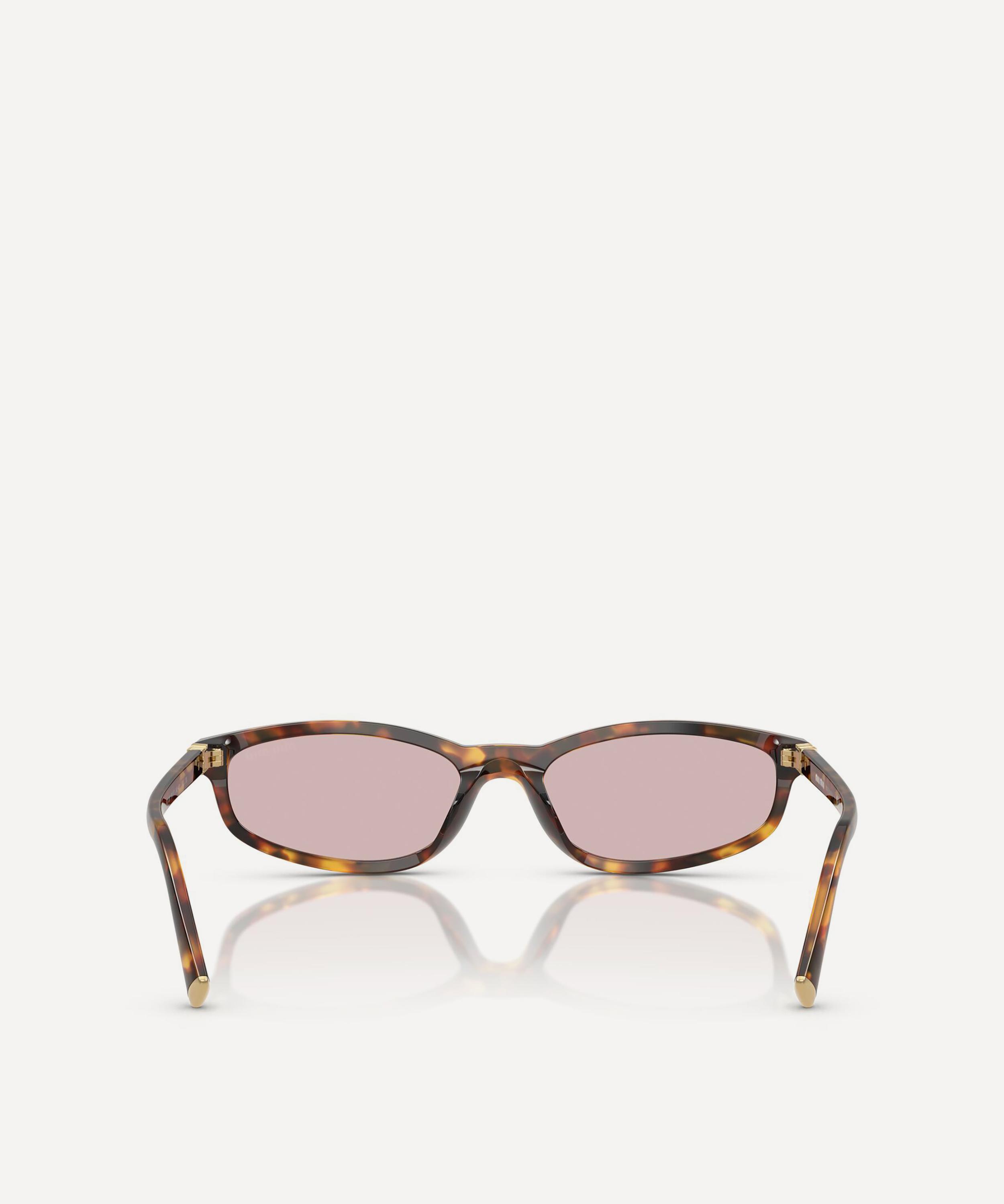Heighten the impact of any attire with these rectangle sunglasses from Miu Miu. Expertly crafted from Havana acetate, to create a statement pair that instantly draws the eye, these narrow sunnies are fitted with a comfortable saddle nose bridge and pink lenses to shade and protect your eyes from UV light. Complete with the signature branding at the temples, they make for an ultra-chic finish to your curated looks.