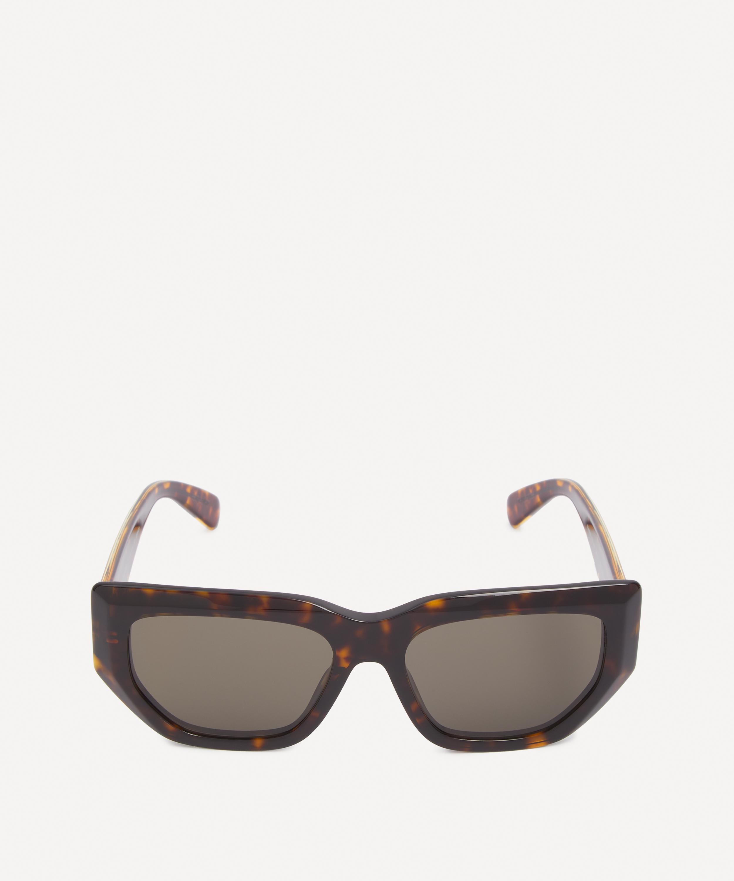 Stella McCartney recalls vintage glamour with these cat-eye sunglasses. Expertly crafted from translucent acetate in an alluring orange-brown hue and shaped to a rectangular silhouette with edges, the pair is finessed with double gold-pin accents and engraved logos. They’re a standout pick for sun-drenched city walks or long afternoons spent by the pool.