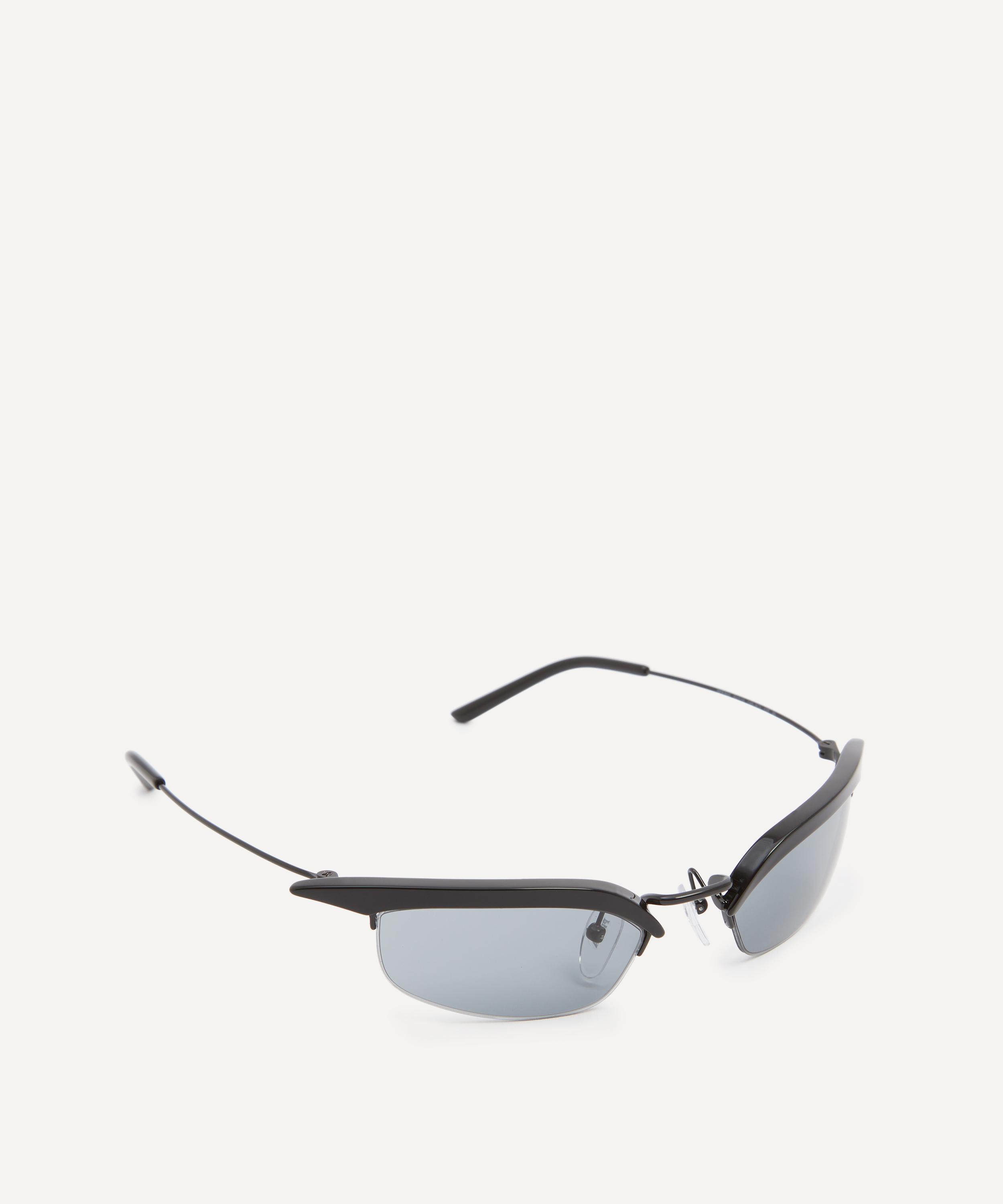 Showcasing a bold, slim rectangular silhouette that instantly draws the eye, these sleek metal frames feature sharp, pointed acetate brow line details and are complete with ultra-thin temples with the brand's lettering logo to the tips for a punctuating finish.