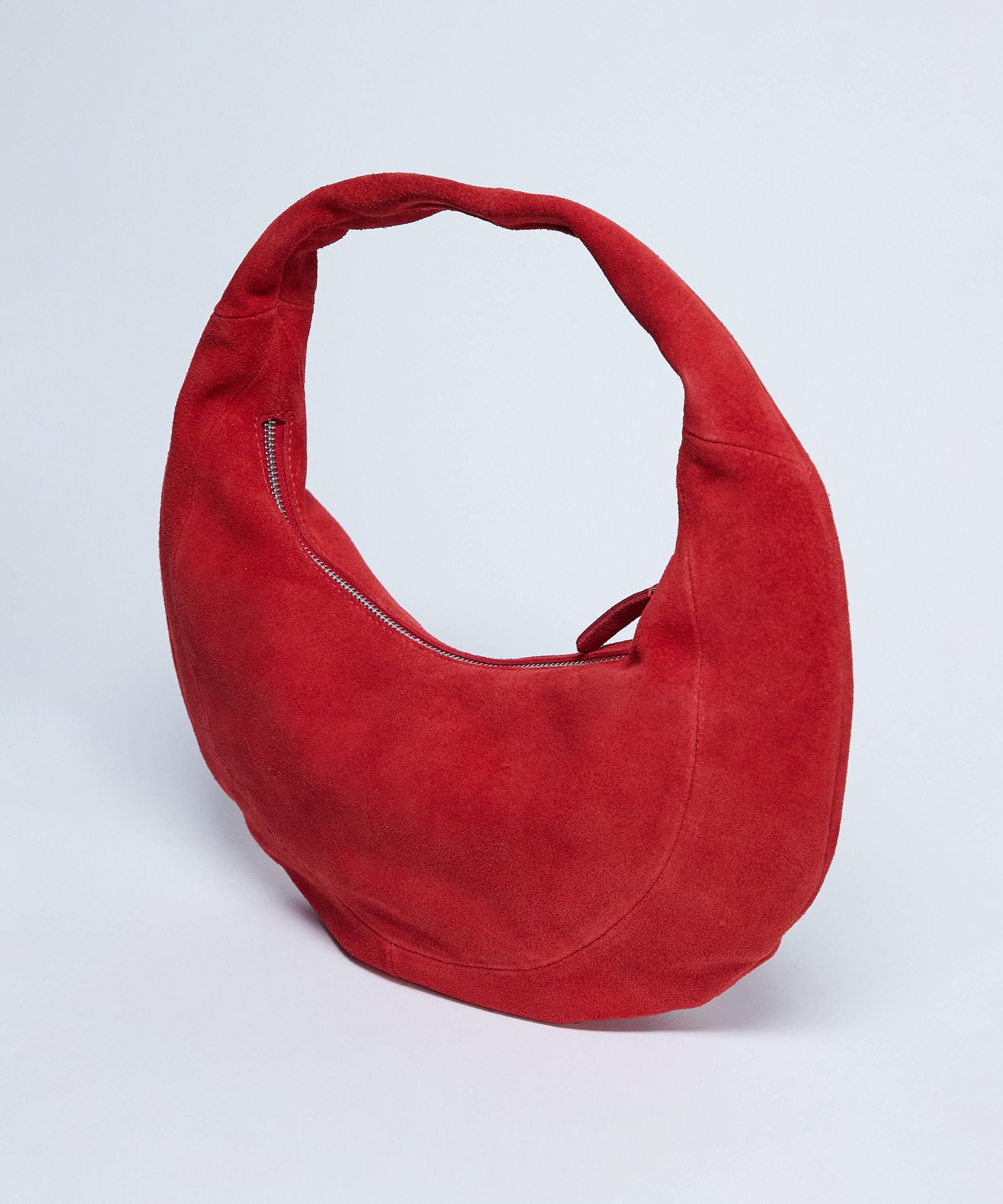 Crafted from pure suede in a vibrant red shade, the Cian bag features a curved design with a shoulder strap and zip fastening for easy access - perfect for carrying all your essentials in style.