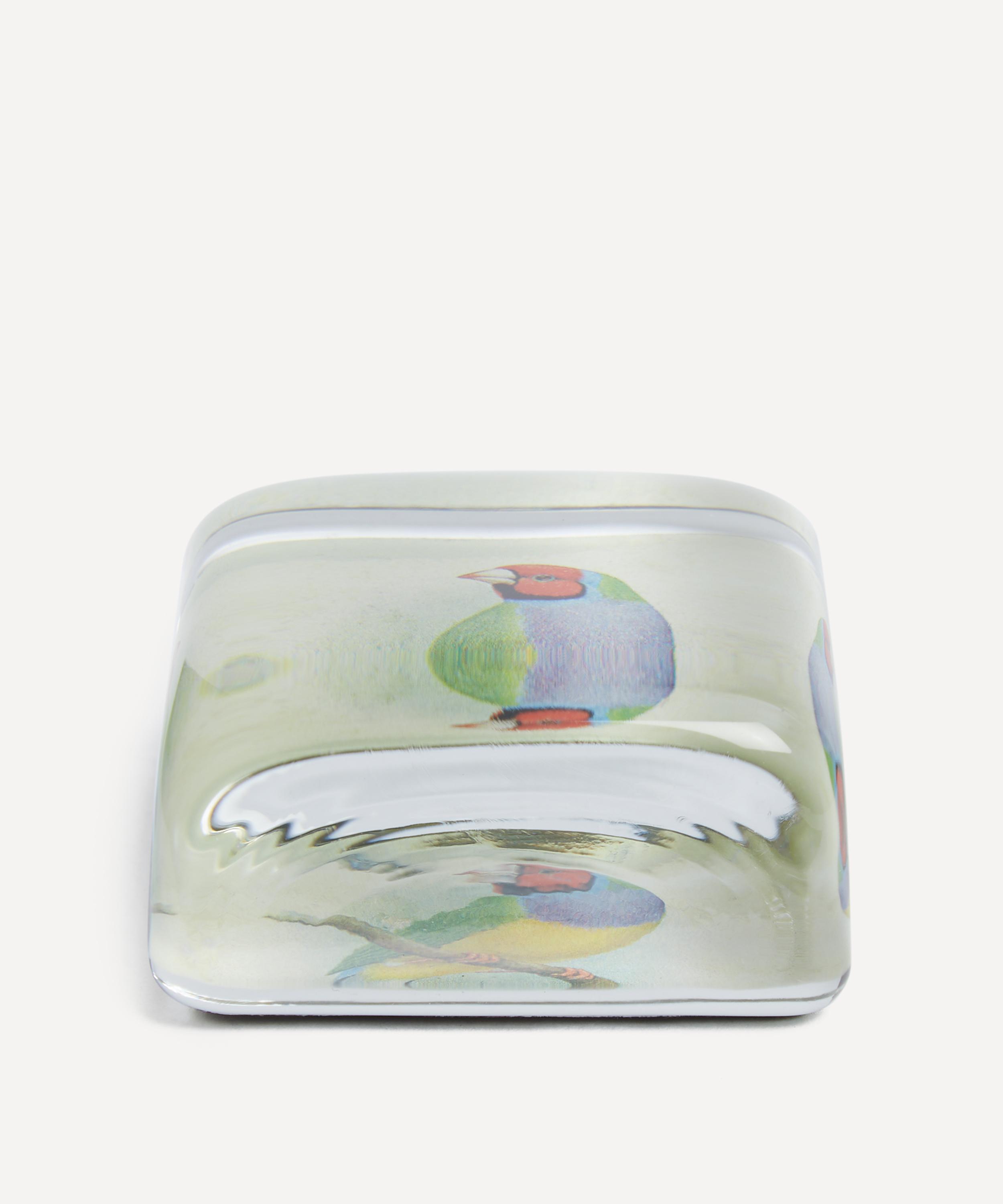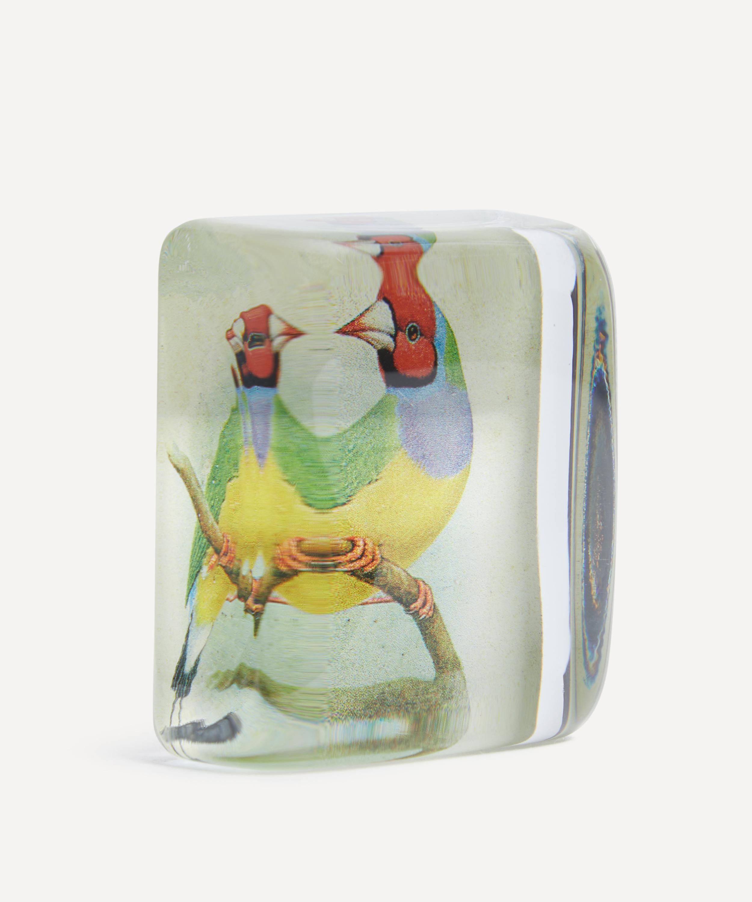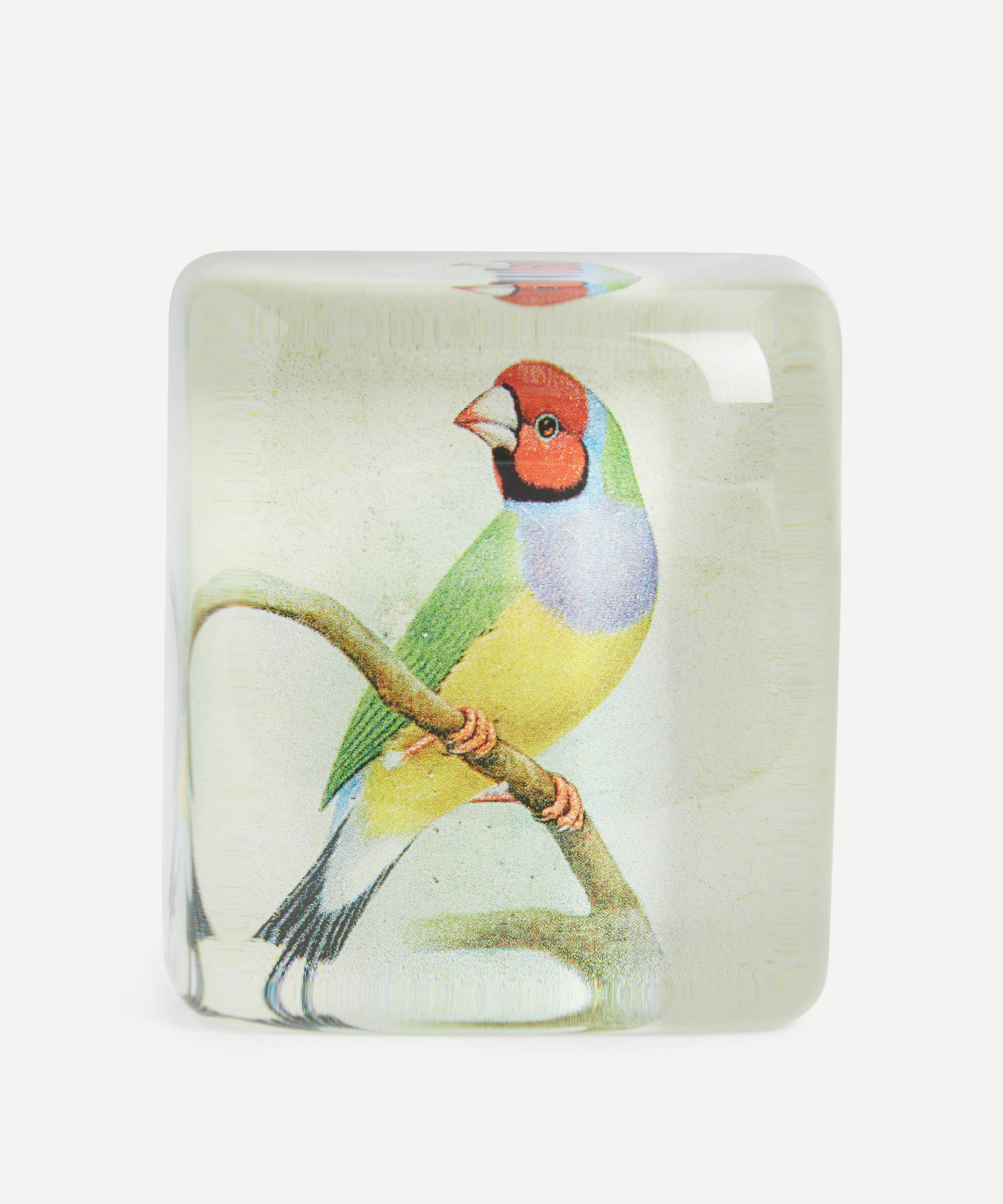 John Derian’s signature decoupage style is instantly recognisable in this Red-Headed Gouldian Finch paperweight - a practical decorative accent that will easily elevate your workspace.