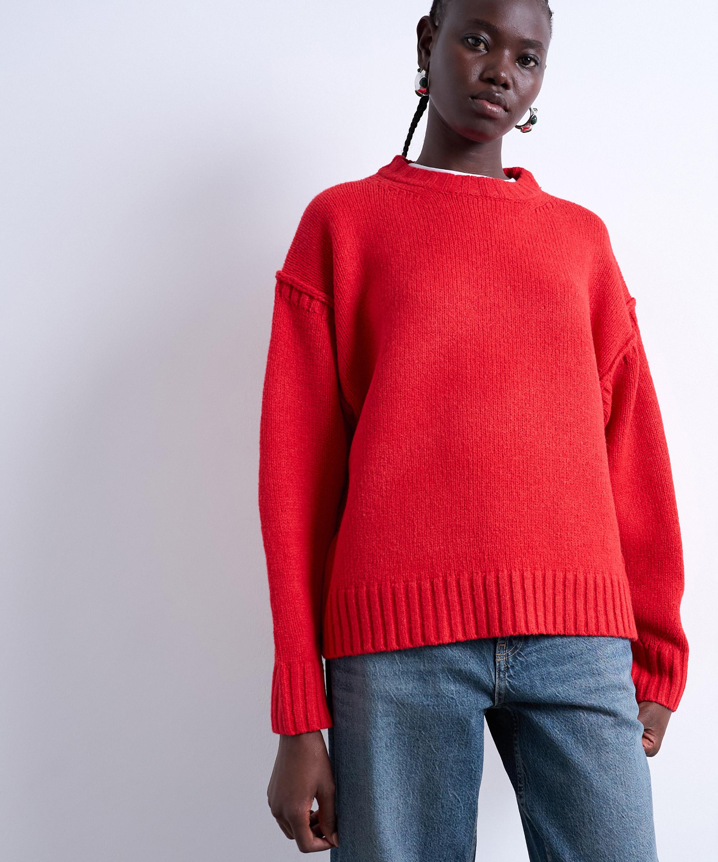 Red Knitted Clean Exposed Seam Jumper