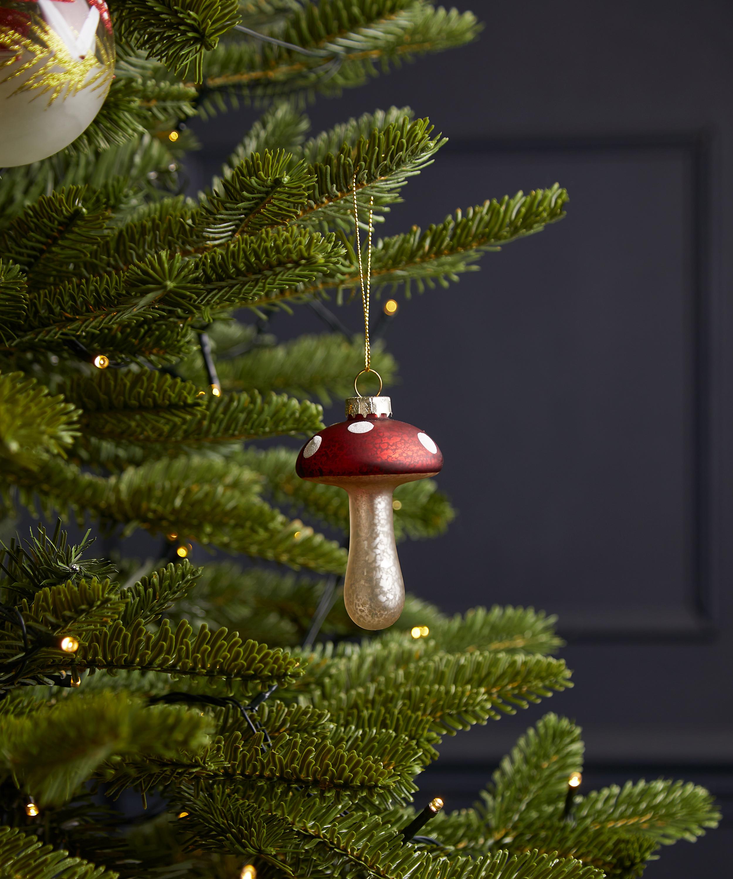 Deck out your tree with a touch of whimsy and bring the magic of the season to life with this ornament. An alternative to traditional decorations, it features a red mushroom with glitter detailing – a playful option for those seeking a treasured heirloom piece, use to bring a pop of colour to your festive display.
