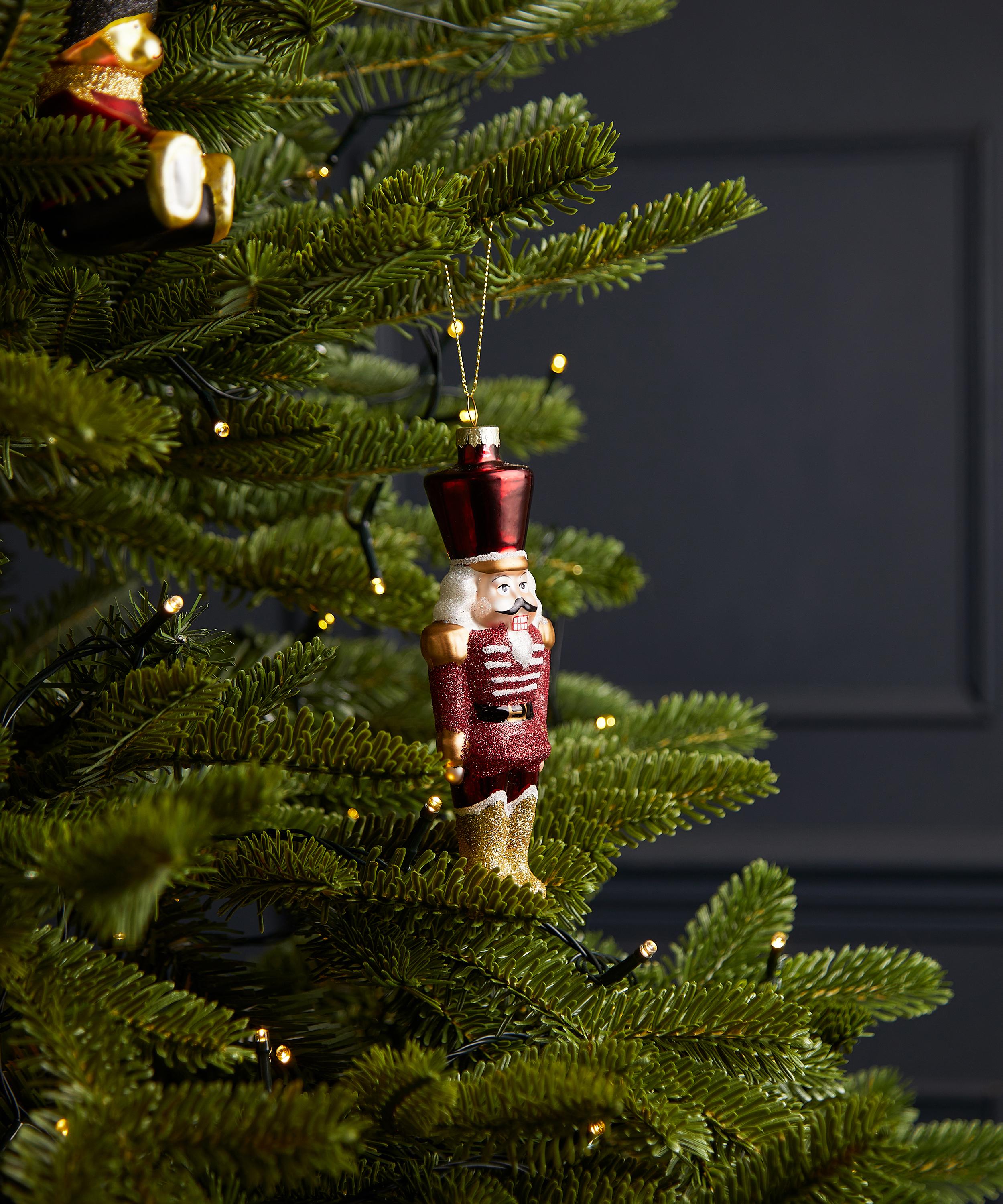 A contemporary twist on a classic seasonal décor, it’s crafted in the shape of the iconic Nutcracker soldier. It can be easily paired with a mix of traditional and contemporary adornments and has a glitter finish that adds a subtle sparkle to your Christmas tree.