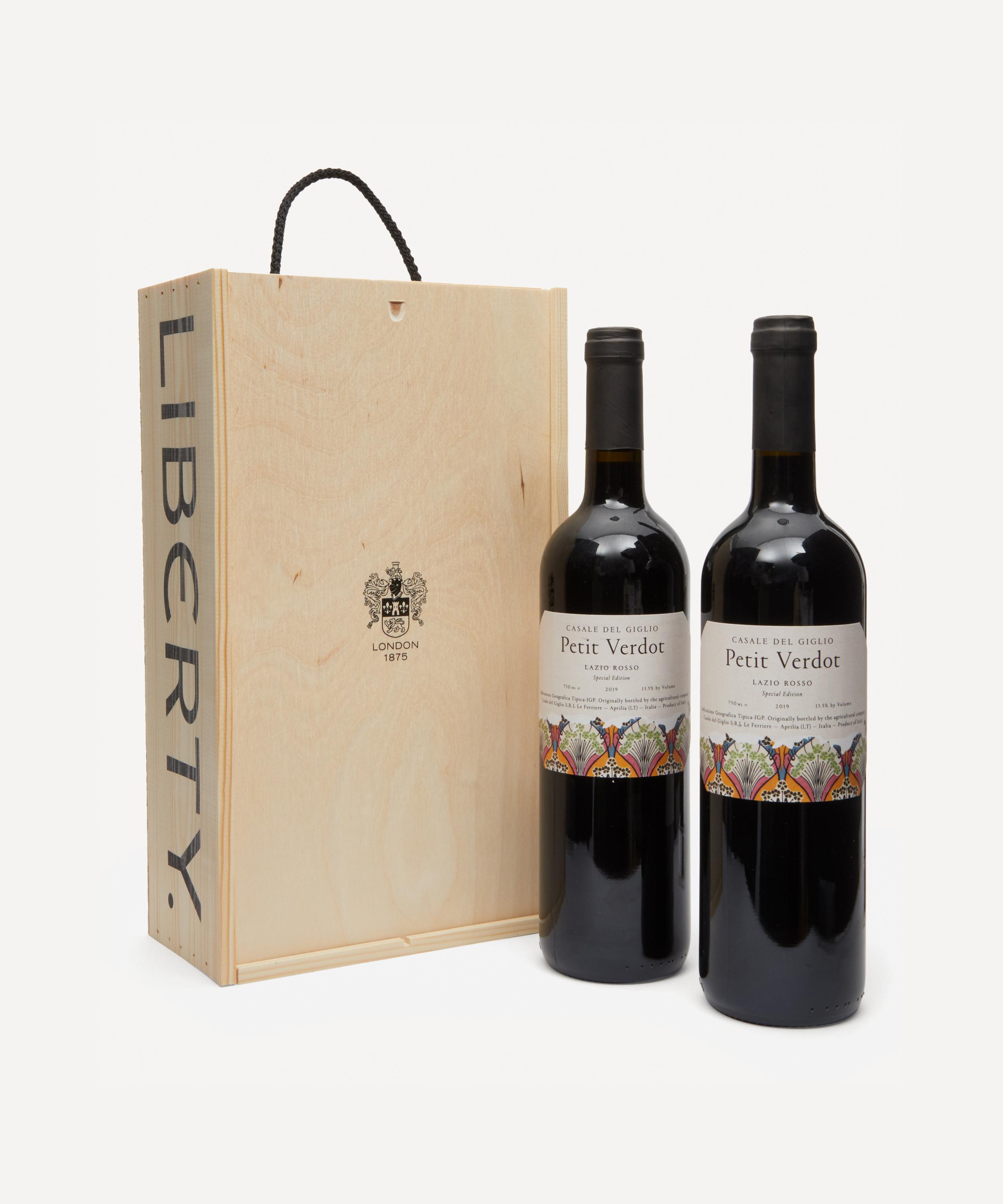 Created exclusively for Liberty with a limited-edition Ianthe print label, Casale del Giglio’s Petit Verdot comes nestled in a rustic, Liberty branded wooden crate. Elegant and full-bodied, this deep crimson wine displays an intense, lingering aroma of red berry fruit, cherry, myrtle and juniper with a spicy, white peppery finish. A masterclass in excellence, this wine hamper is a unique and thoughtful gift for Liberty lovers and wine connoisseurs alike.