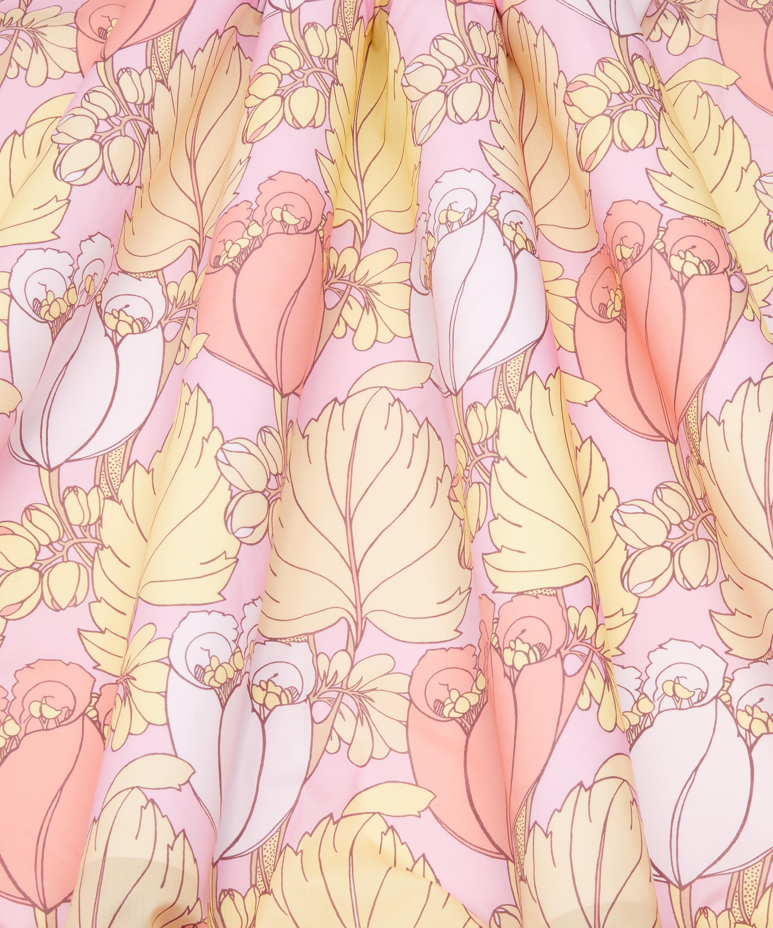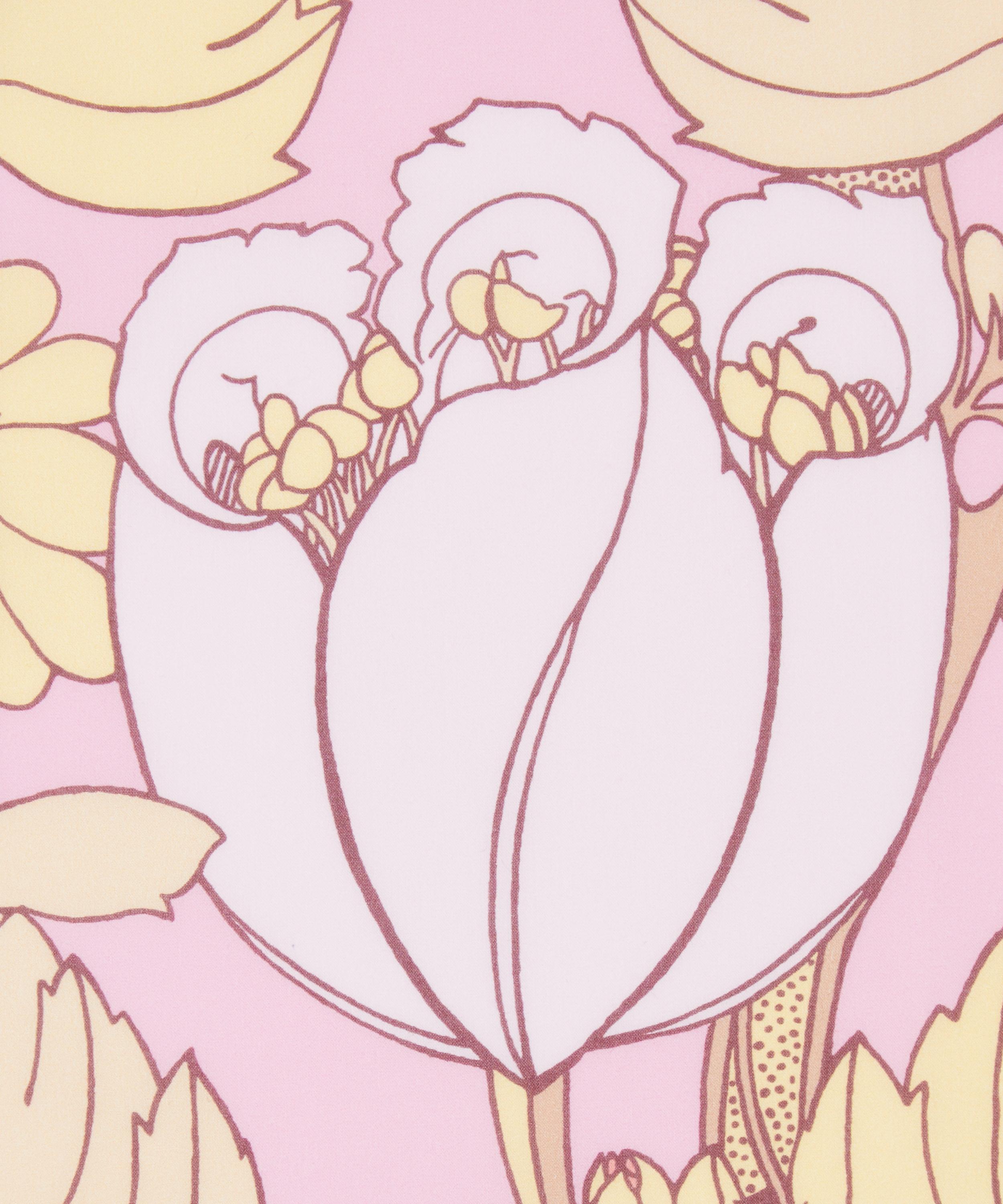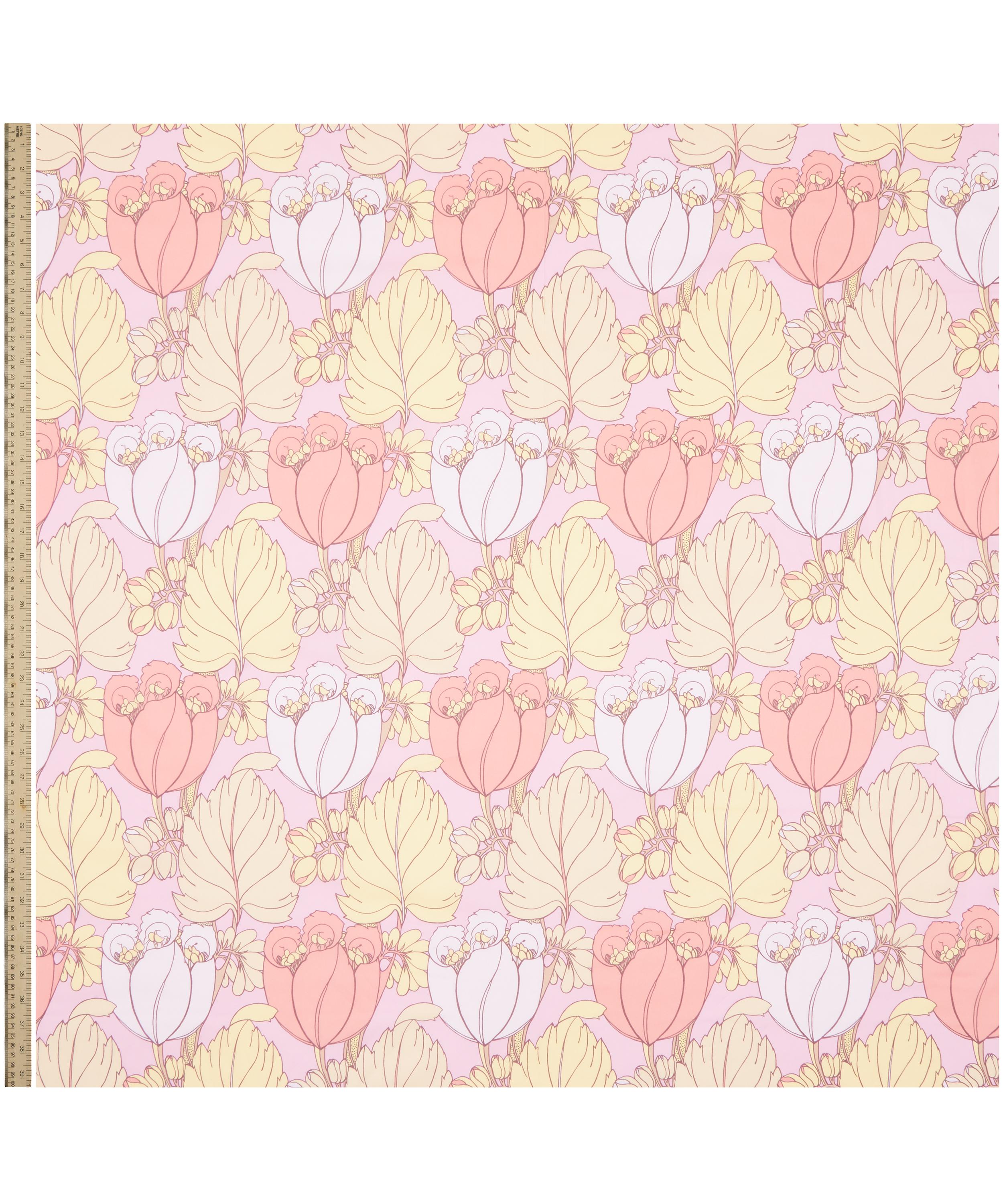 Regency Petals was originally designed as a Liberty furnishing fabric in 1966, during the height of the late 1960s Art Nouveau revival. Blending period elegance with a bold, retro edge, this luxurious design features stylised tulips, delicate flower buds, and graceful leaves, arranged in a balanced, symmetrical composition. Drawing from the refined aesthetic of Regency-era gentleman’s clubs, its bold areas of flat colour create a look both sophisticated and sartorial.