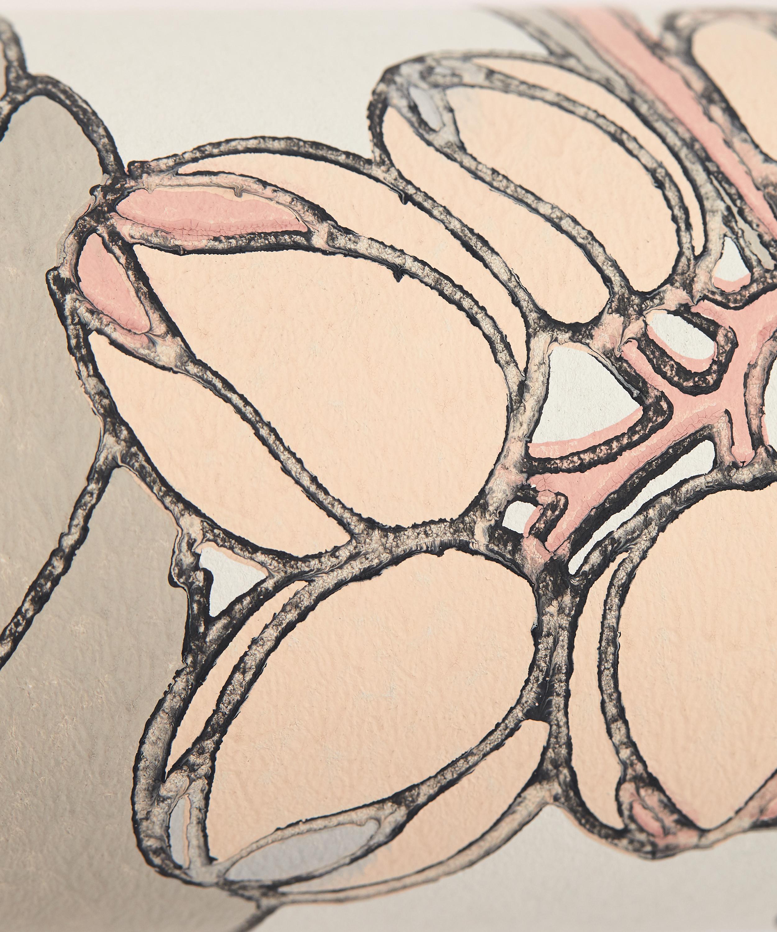 Reminiscent of the gentleman’s clubs of the Regency period, Regency Tulip is reimagined through bold tonal colour combinations into a striking sartorial design. Rich chalky grounds form the background for the boldly coloured tulip motifs, in beautiful matte and metallic pigments. Carefully selected to bring this design to life, the surface print technique allows rich reticulation of surface pigment, emulating traditional block printing effects.