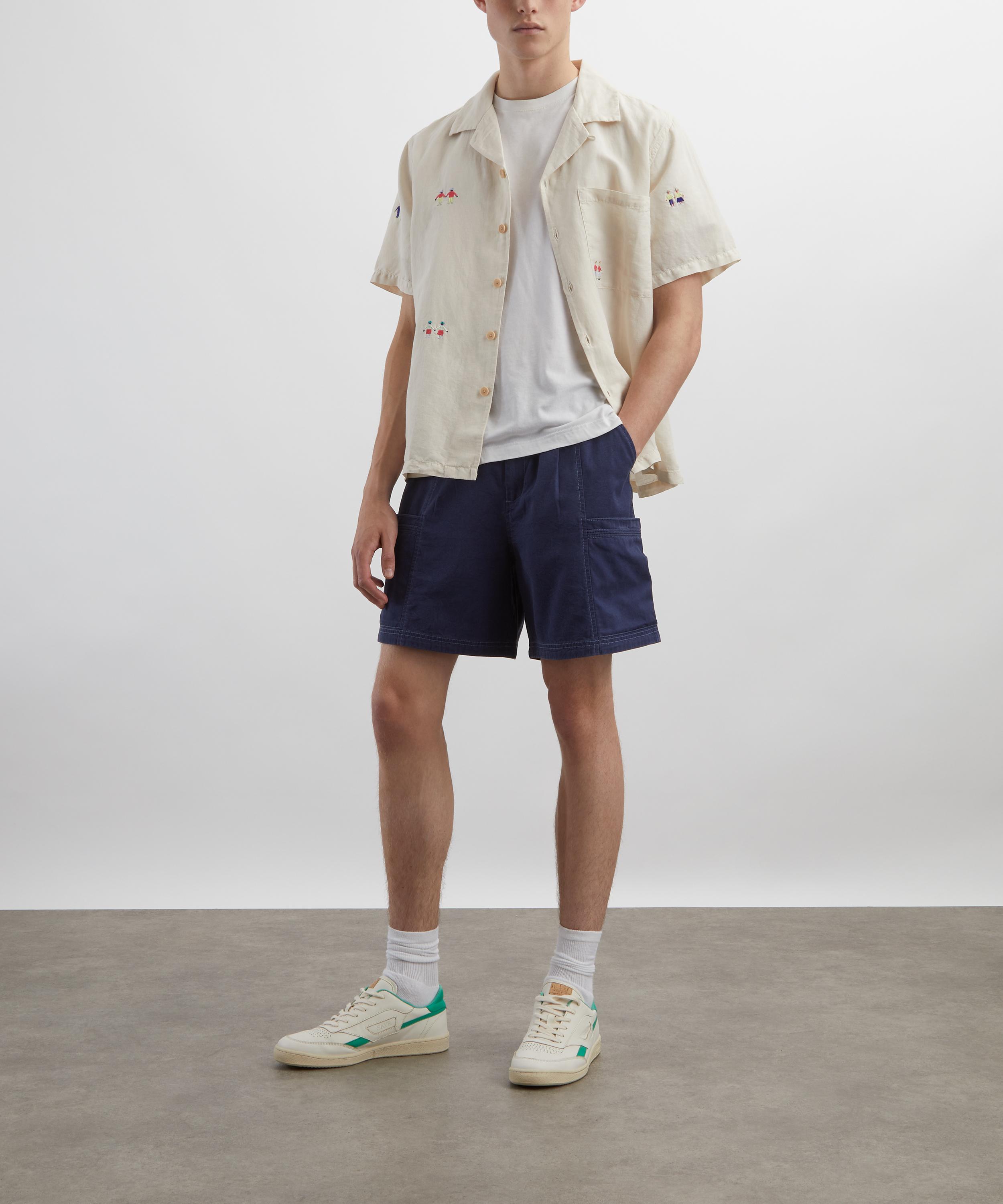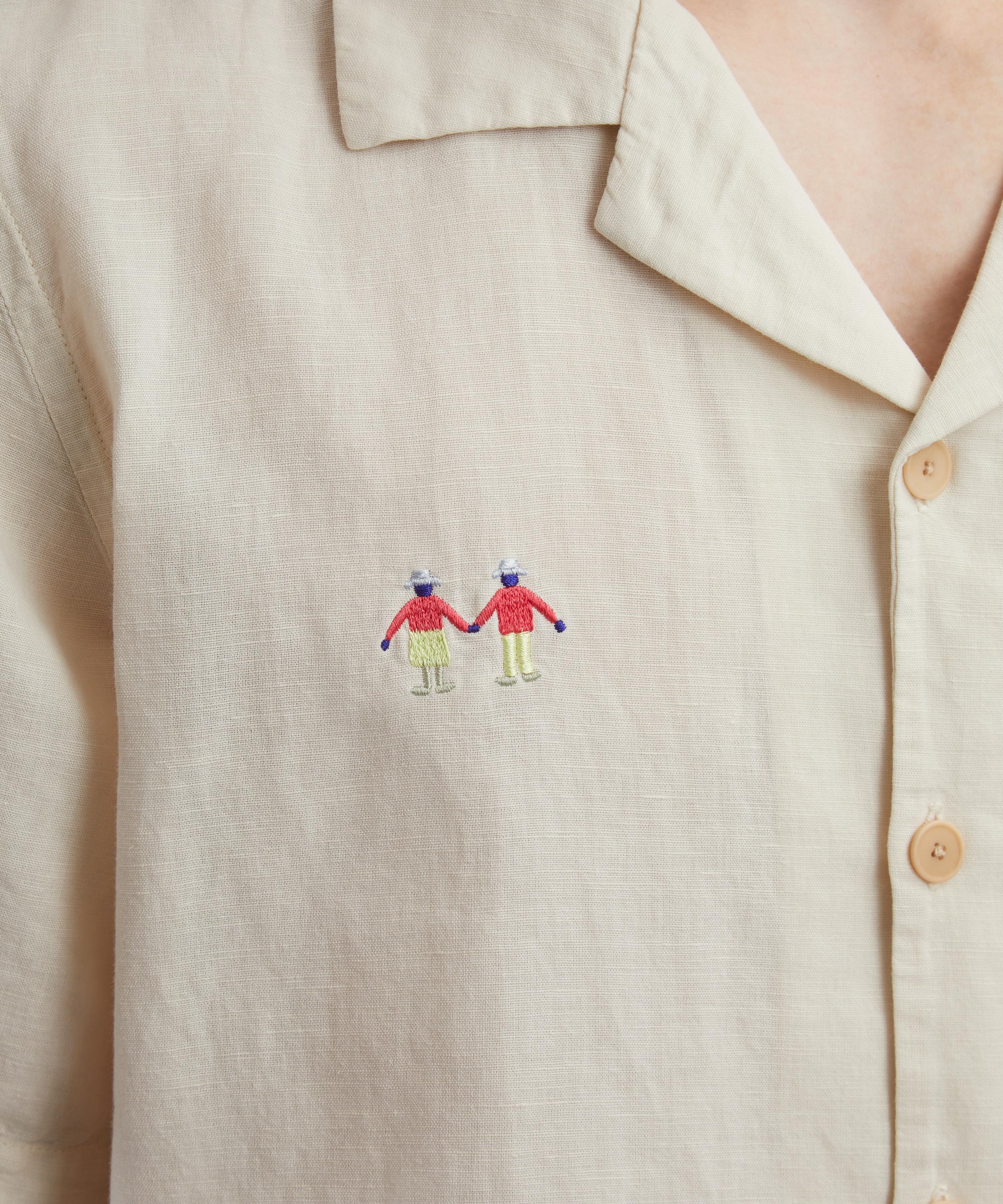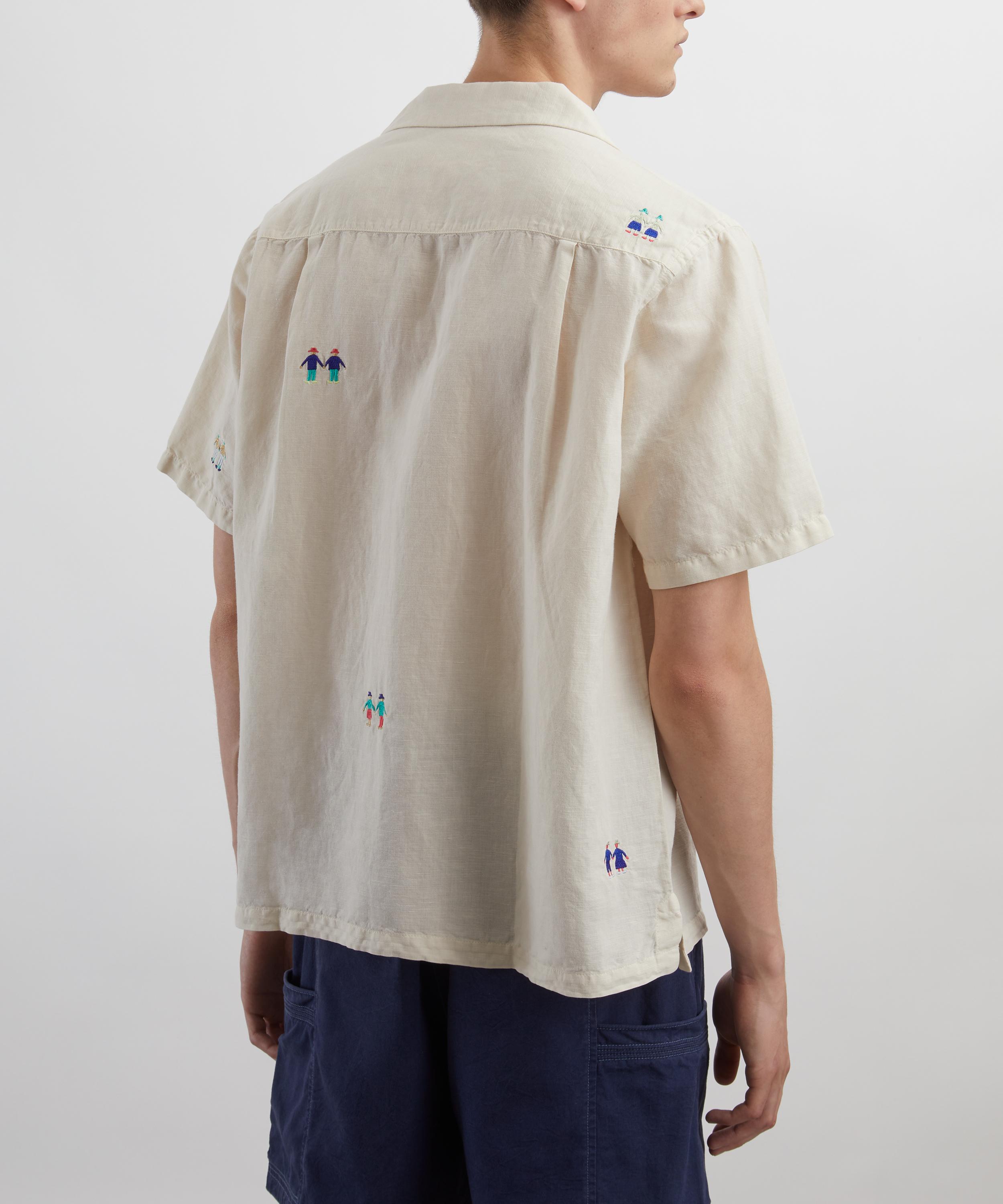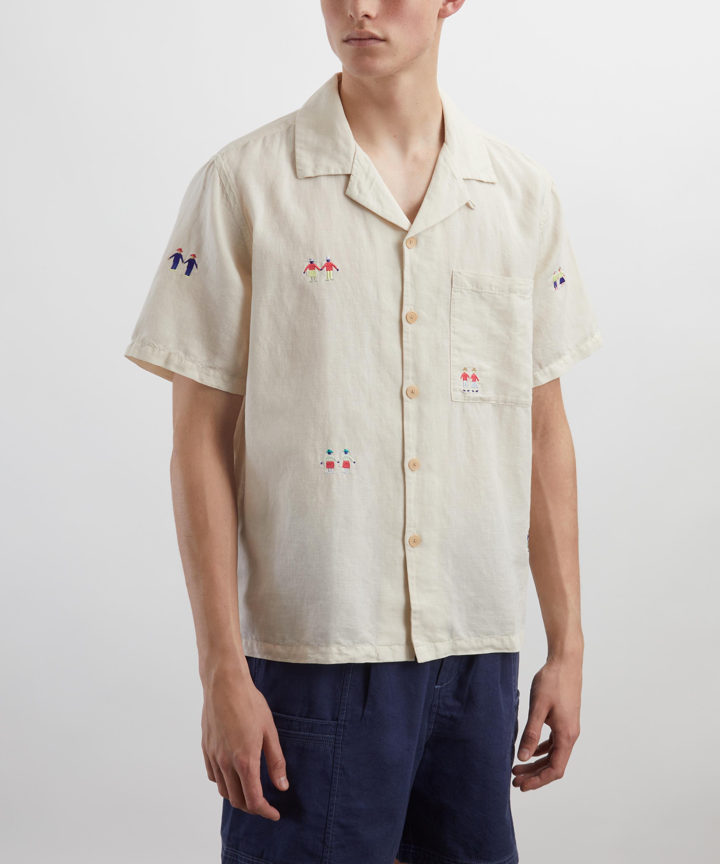Relaxed and softly tailored, this casual shirt is made from a lightweight linen and cotton blend, fastened with corozo nut buttons. Designed with a spread collar, short sleeves, and a single chest patch pocket, this piece is elevated by intricate Folk ‘people’ embroidery scattered across the surface, adding a unique, artistic touch.