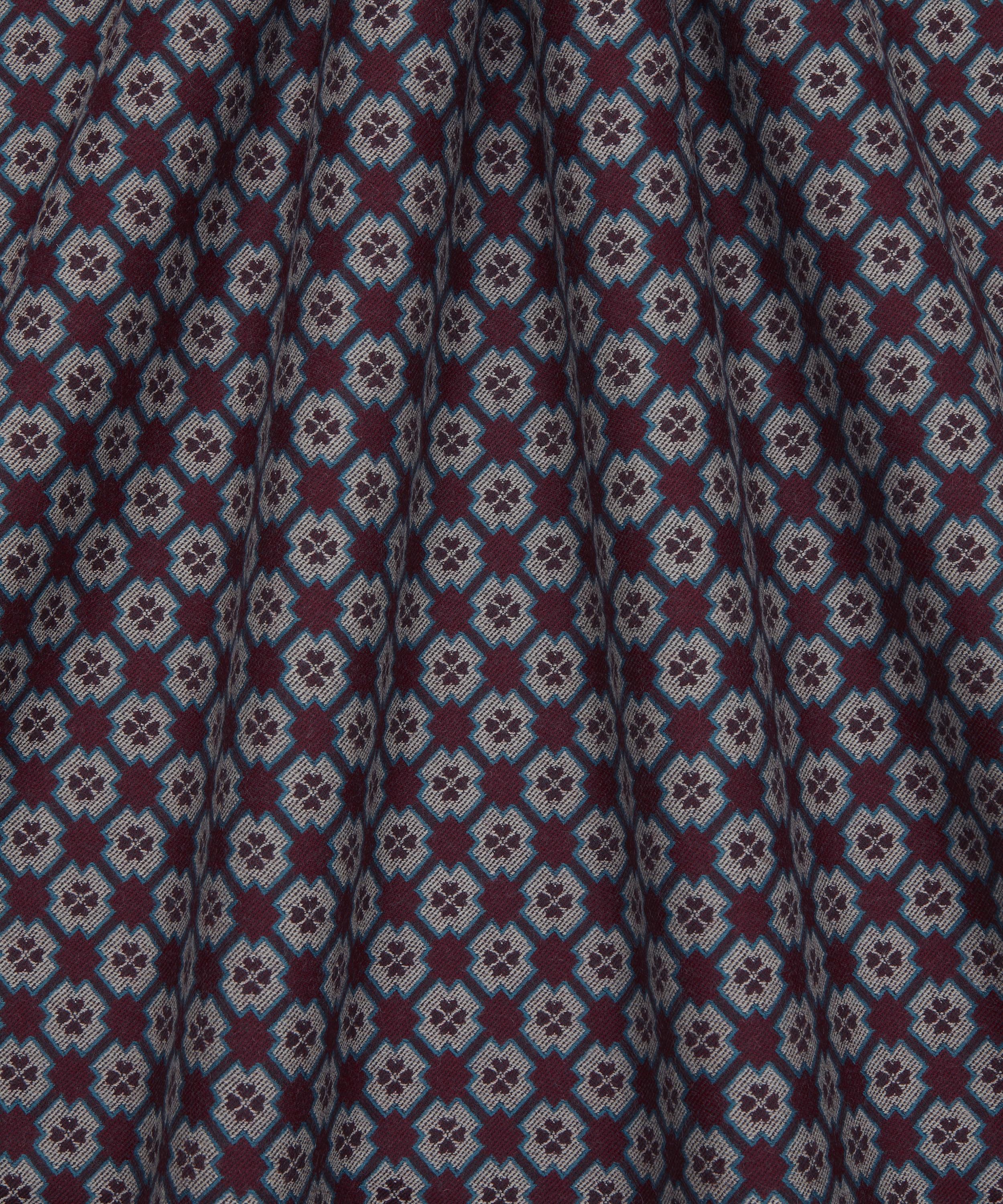 Taking inspiration from a 1973 hand-painted Liberty artwork, this small geometric check embraces the underlying symmetry found all around us in nature. Tiny rotating rose florets are reminiscent of the minute details of flower centres, anchored by a closely arranged pattern of diagonal stripes and squares. Woven entirely from wool, Remy Rose is appropriate for light upholstery, drapery, cushions, and accessories.