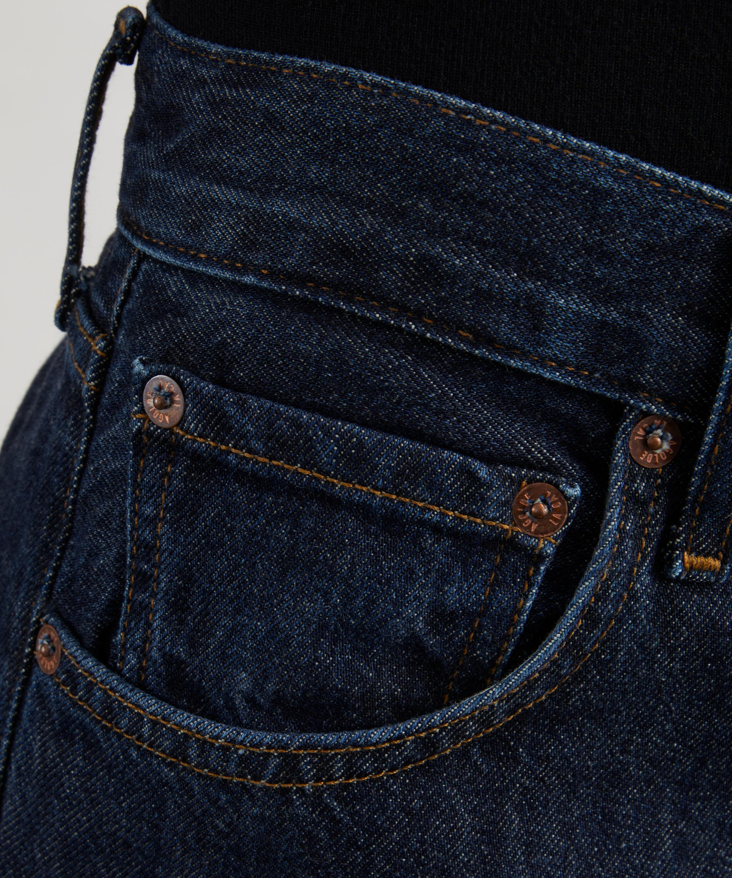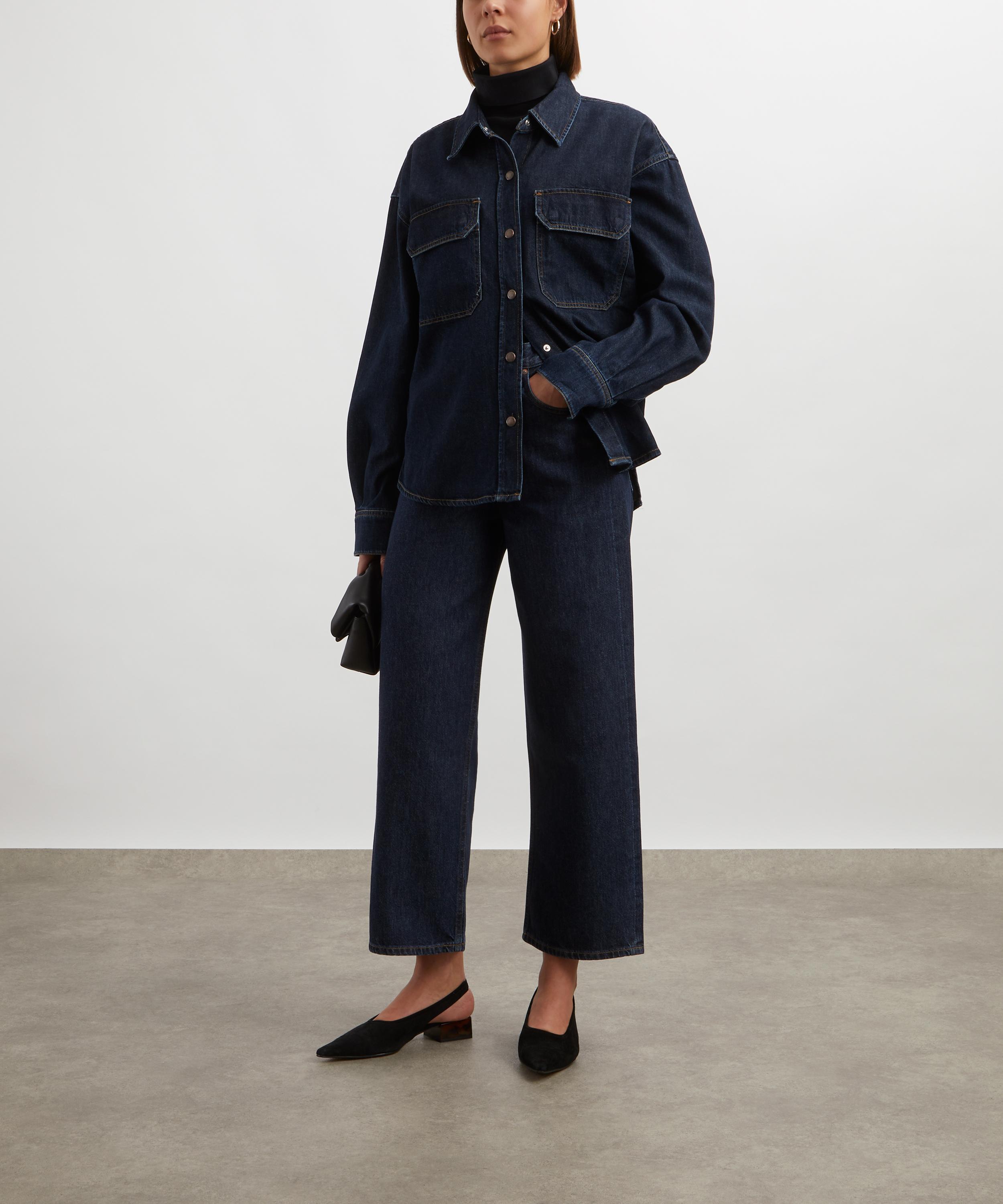 The ultimate everyday pair, these jeans are designed with a flattering high-rise waist, a relaxed fit through the hips, and wide leg silhouette. Crafted from zero-stretch denim, the saturated dark indigo wash makes them versatile enough to pair with anything in your wardrobe.