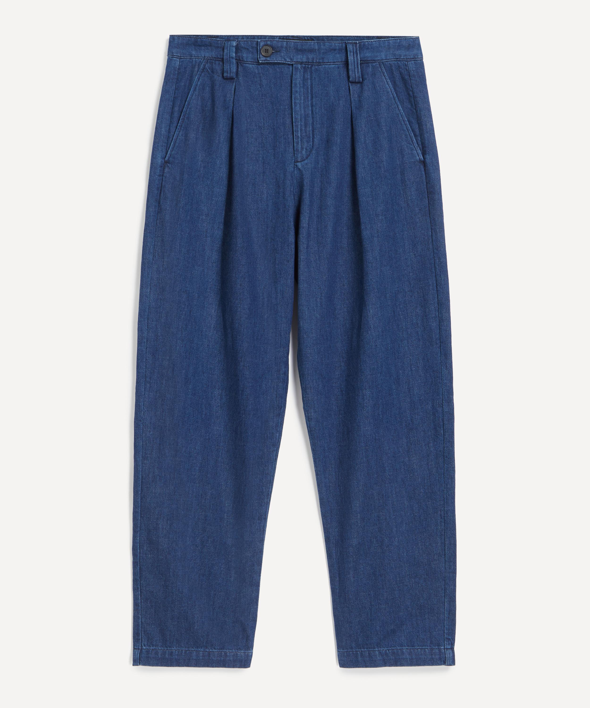 Inspired by classic chinos, these denim jeans feature a wide, slightly tapered carrot leg. Cut from cotton in an indigo wash, they're finished with an off-centre buttoned placket and front pleats for a sharp, tailored touch.