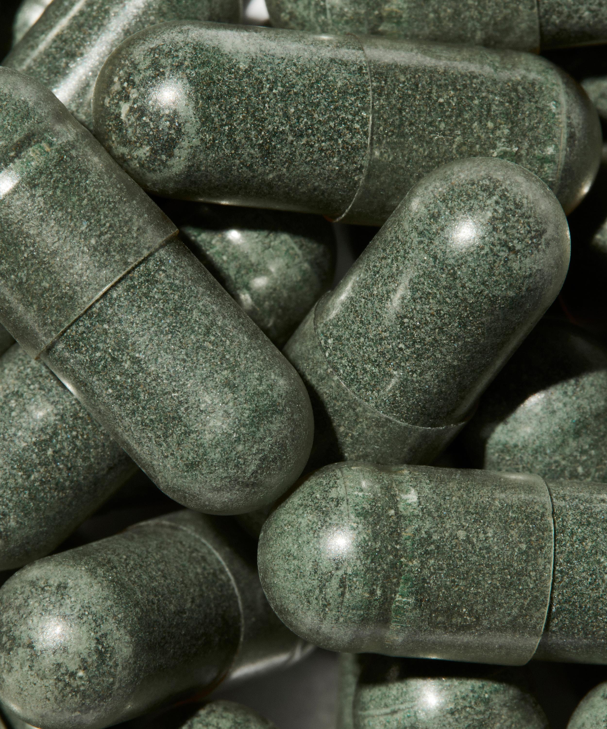 Spirulina (Arthrospira Platensis), Vegetable Capsule Shell: Hydroxypropyl Methylcellulose, PureSea Organic Seaweed, Vitamin C (Ascorbic Acid), Coating Agent: Ethyl Cellulose, Anagain(™) Pea Shoot Extract, Bamboo Silica, Ferrous Bisglycinate, Zinc Bisglycinate, D-Biotin, Copper Bisglycinate.