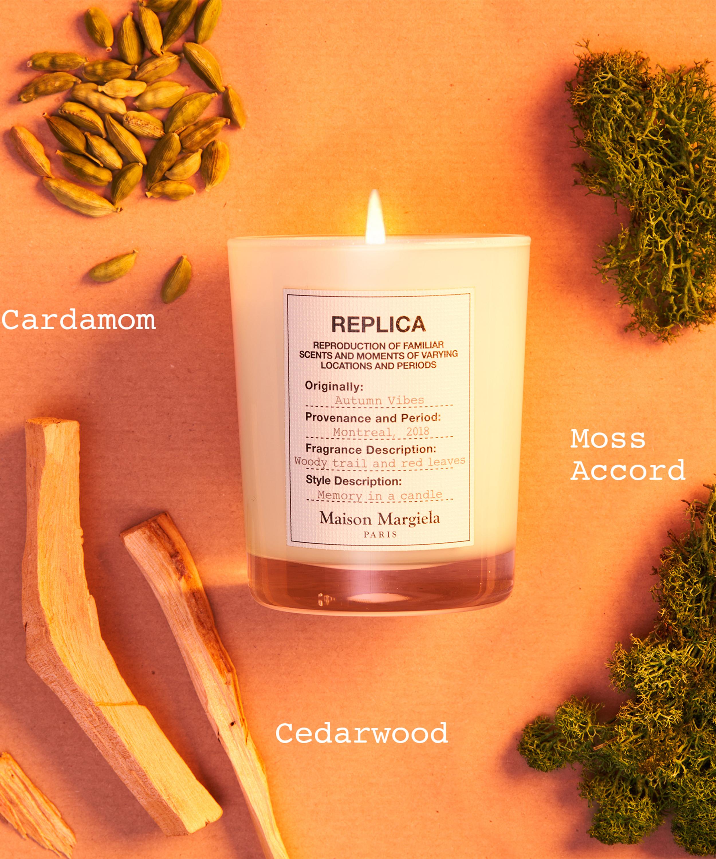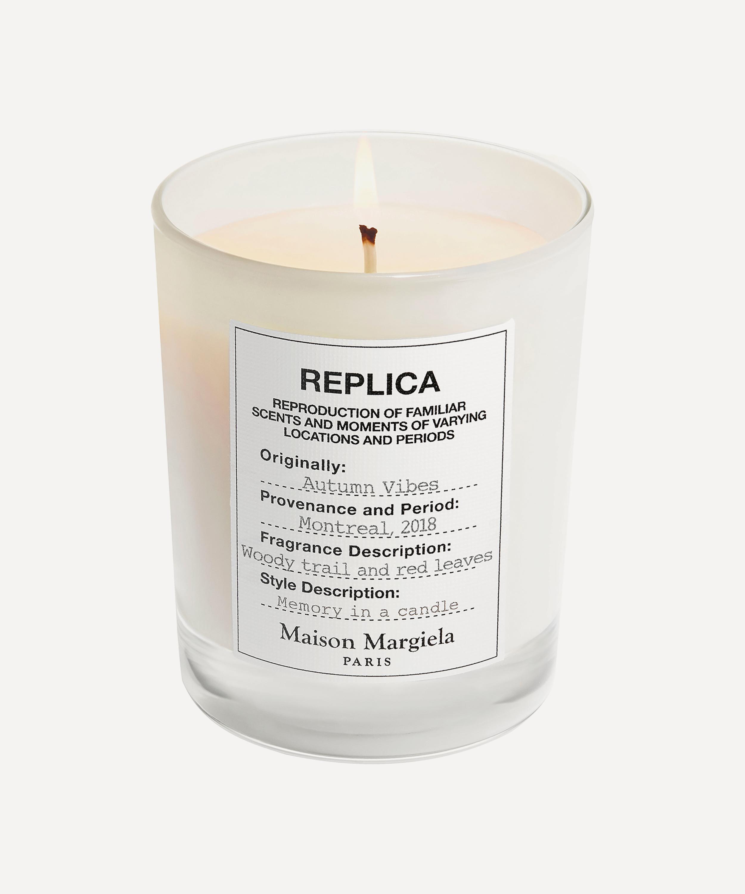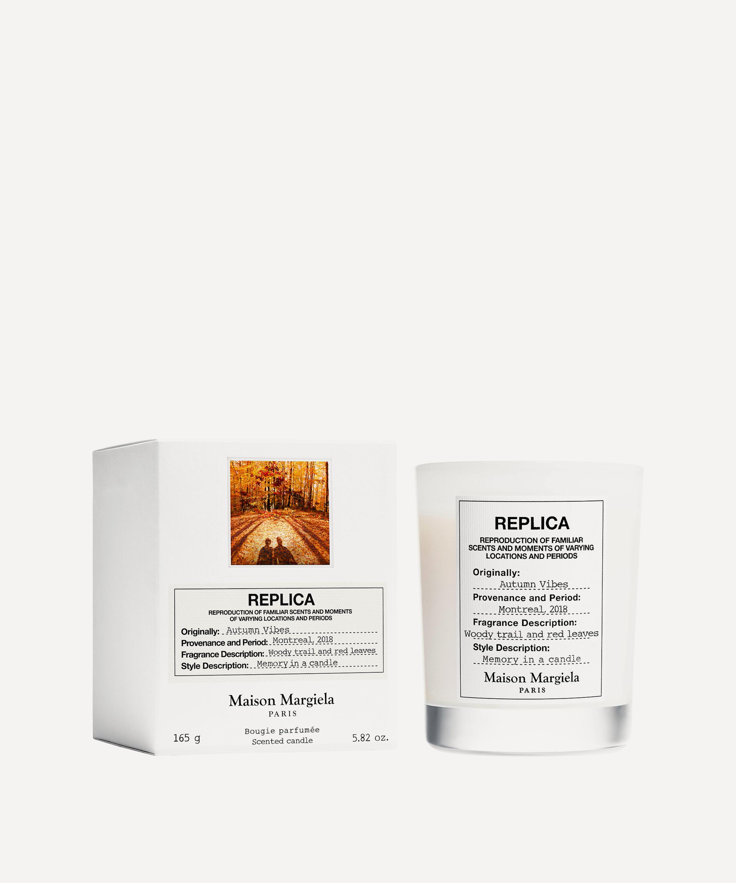 Imbue your home with the vibrance of nature with the Replica Autumn Vibes scented candle from Maison Margiela, an earthy and addictive blend that captures a memory from Montreal, 2018, through fragrance.