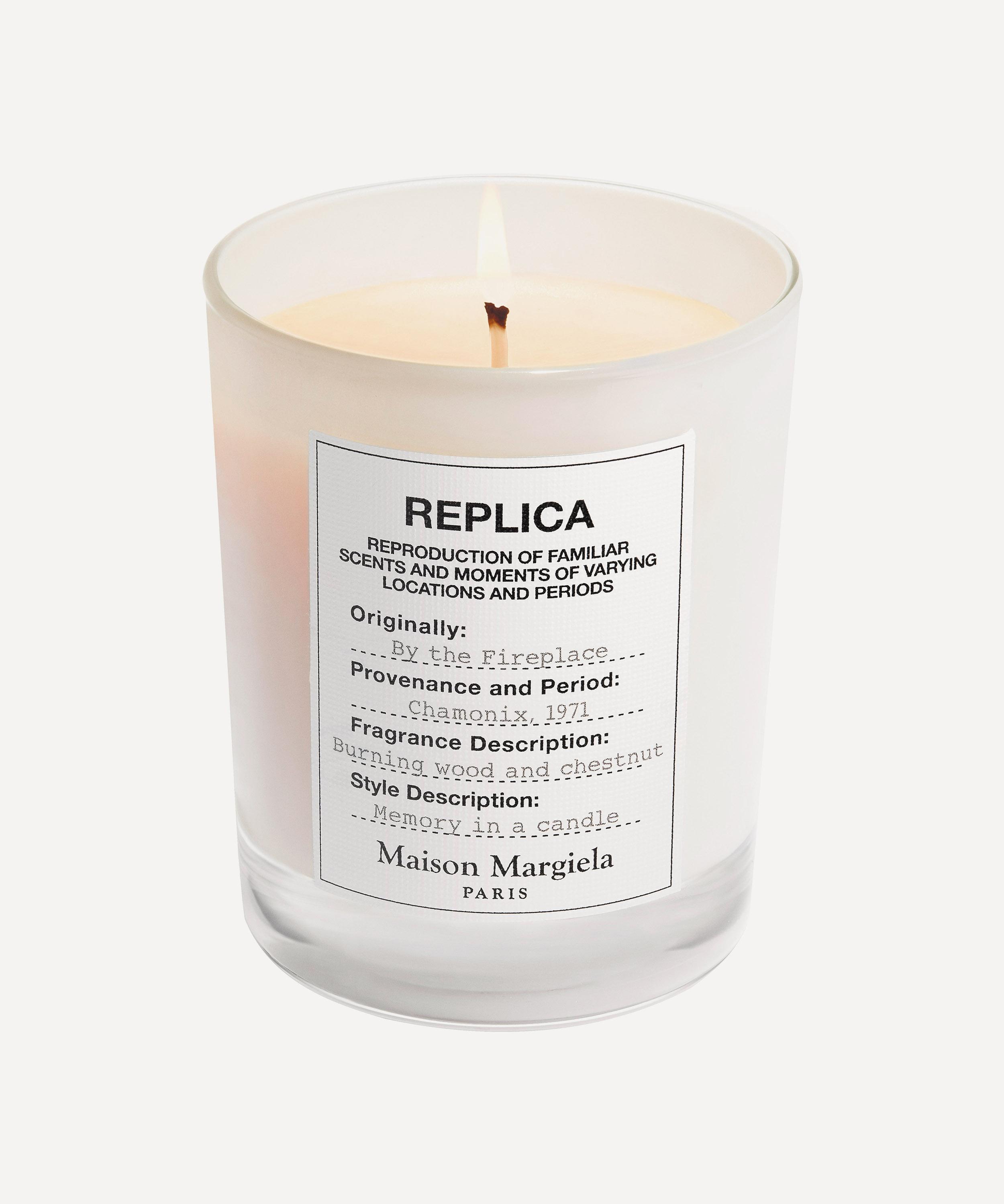 Elevate your interiors with the comforting aromas of Maison Margiela's Replica By the Fireplace scented candle, capturing a memory from Chamonix, 1971, in fragrance.