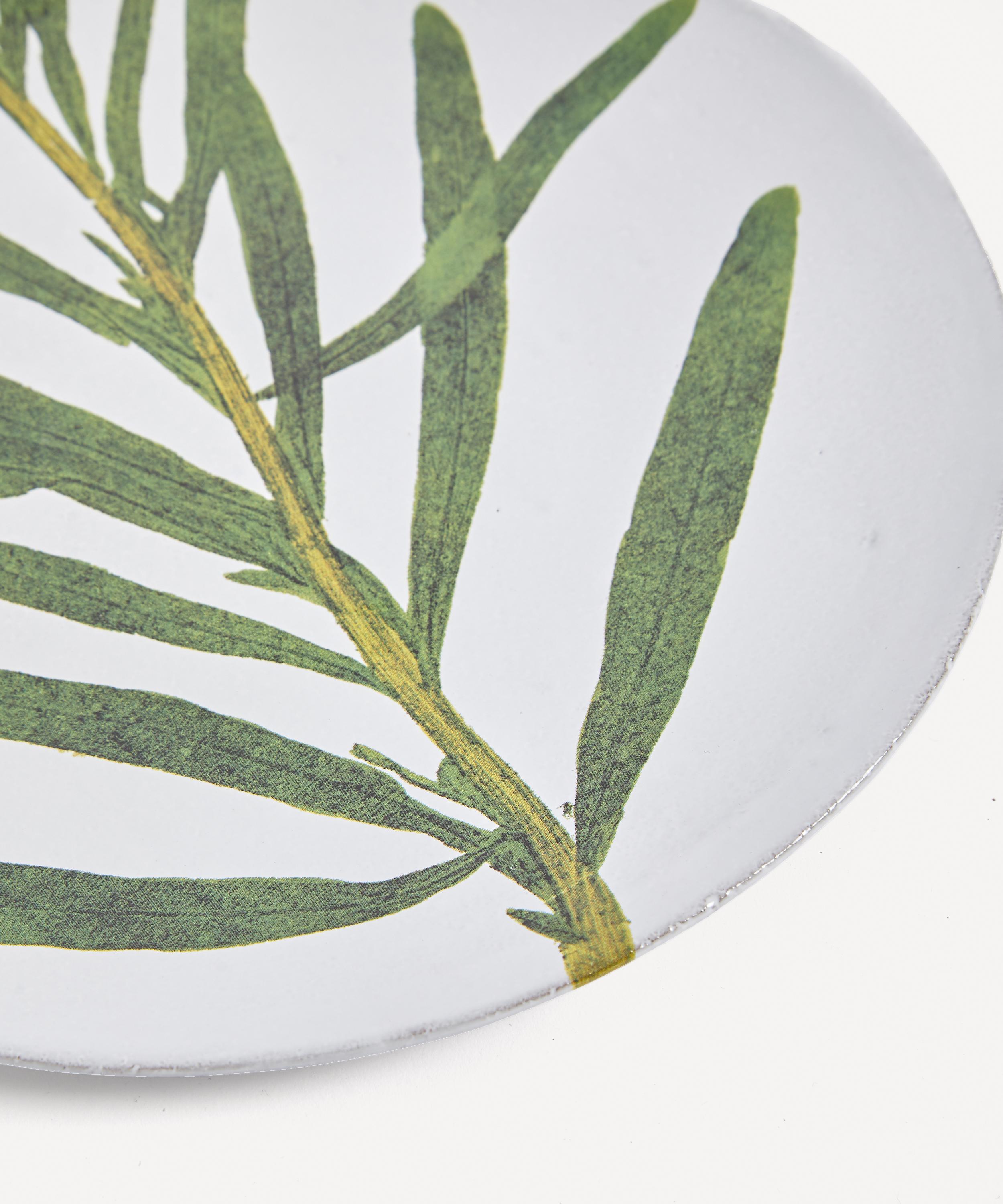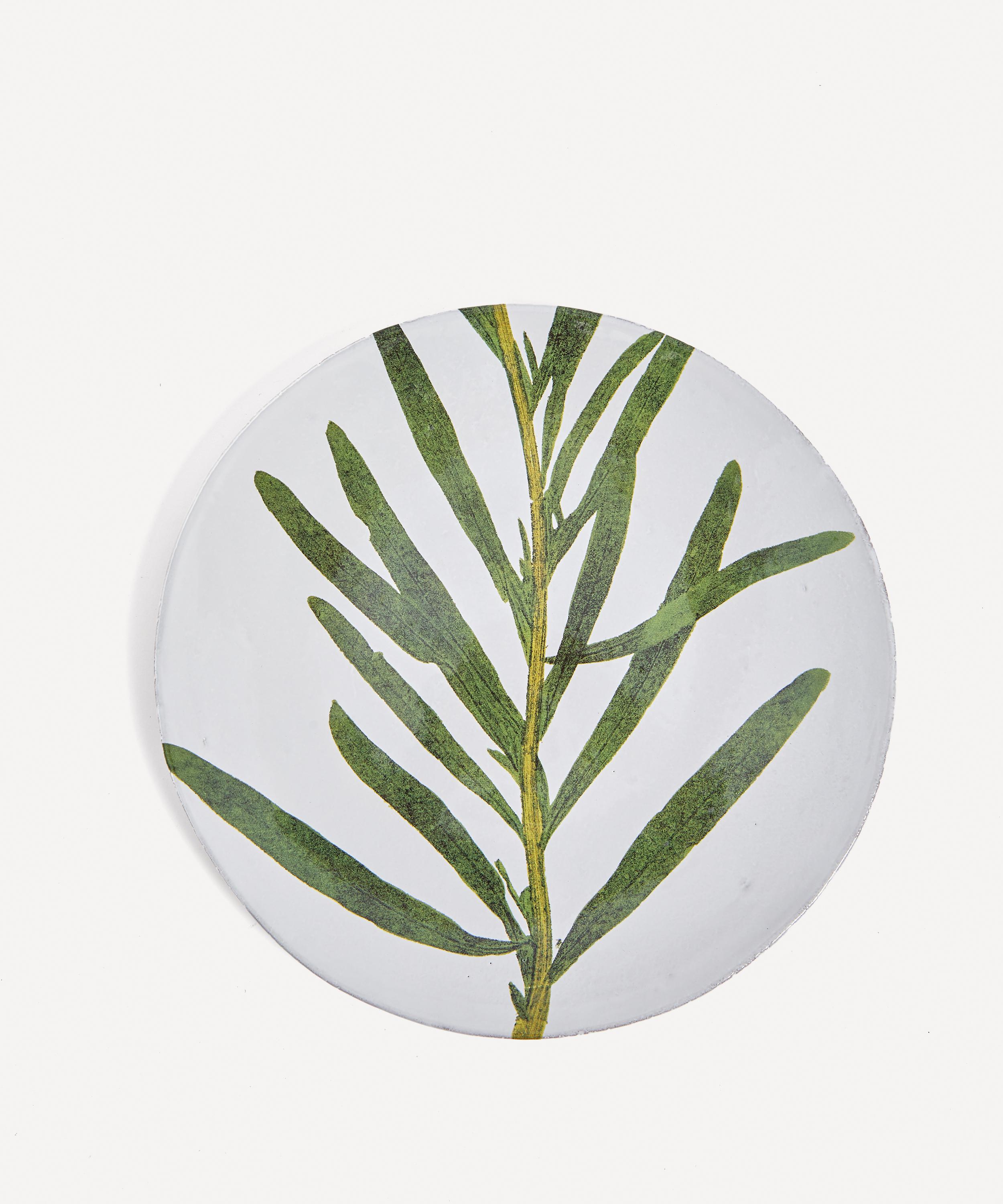 Perfect as a dinner plate, serving platter, or just for decoration this distinct design is defined by the delicate reseda leaf motif painted on the front. Handcrafted at the brand’s workshops in Paris using terracotta that’s finished with a glossy glaze, this plate is durable while looking delicate, making it perfect for your next dinner party.