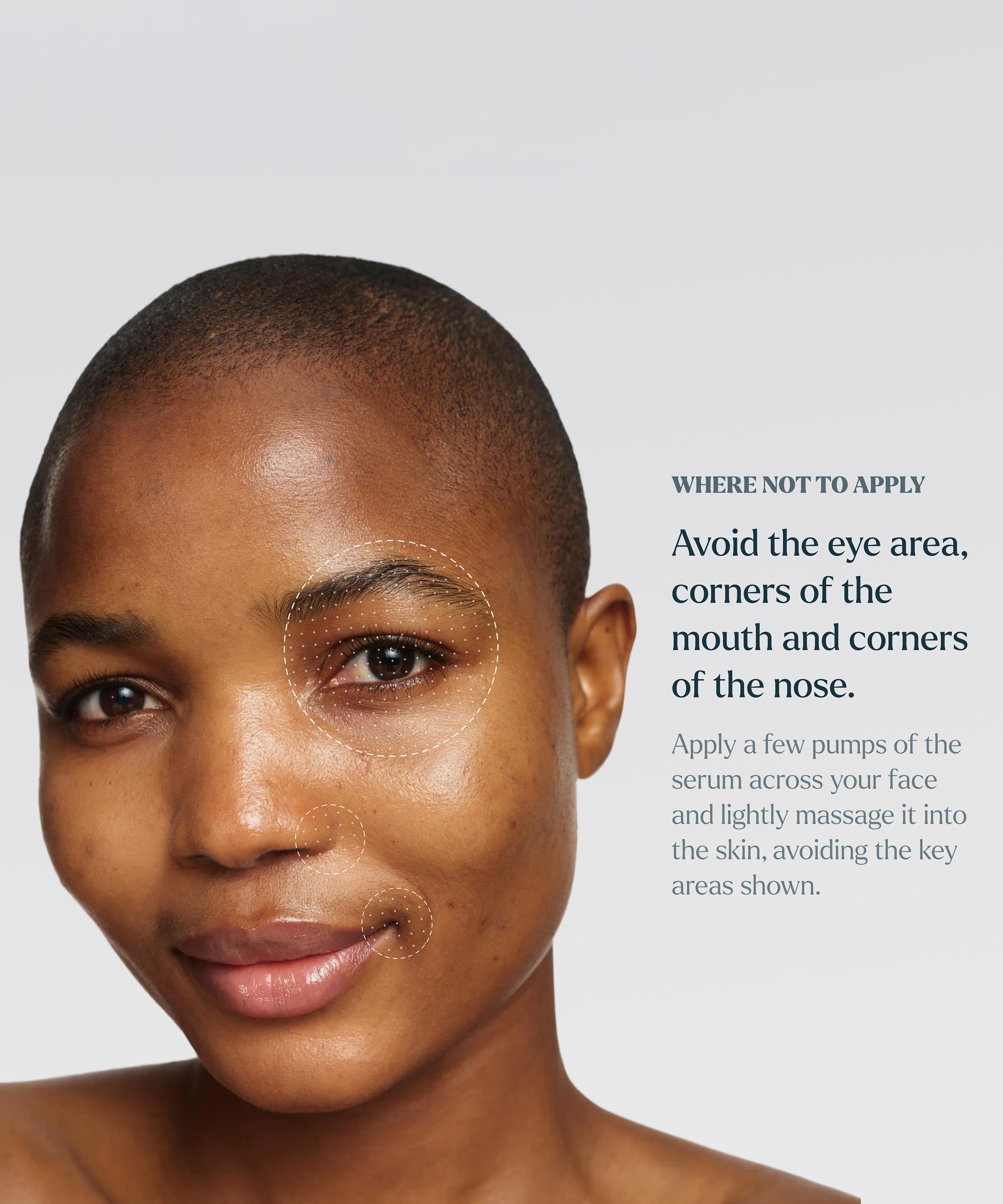 Use as part of your evening regime, after cleansing and toning. Apply a few pumps of the serum across your face and lightly massage into the skin. Allow to absorb and follow with your moisturiser. Use sun protection during the day. Recommended usage is twice a week, building up to 3-4 times per week depending on skin’s need. If you are currently using an acid product (e.g. AHA, BHA toner), it is recommended that you use the acid product and the retinoid on alternate days.