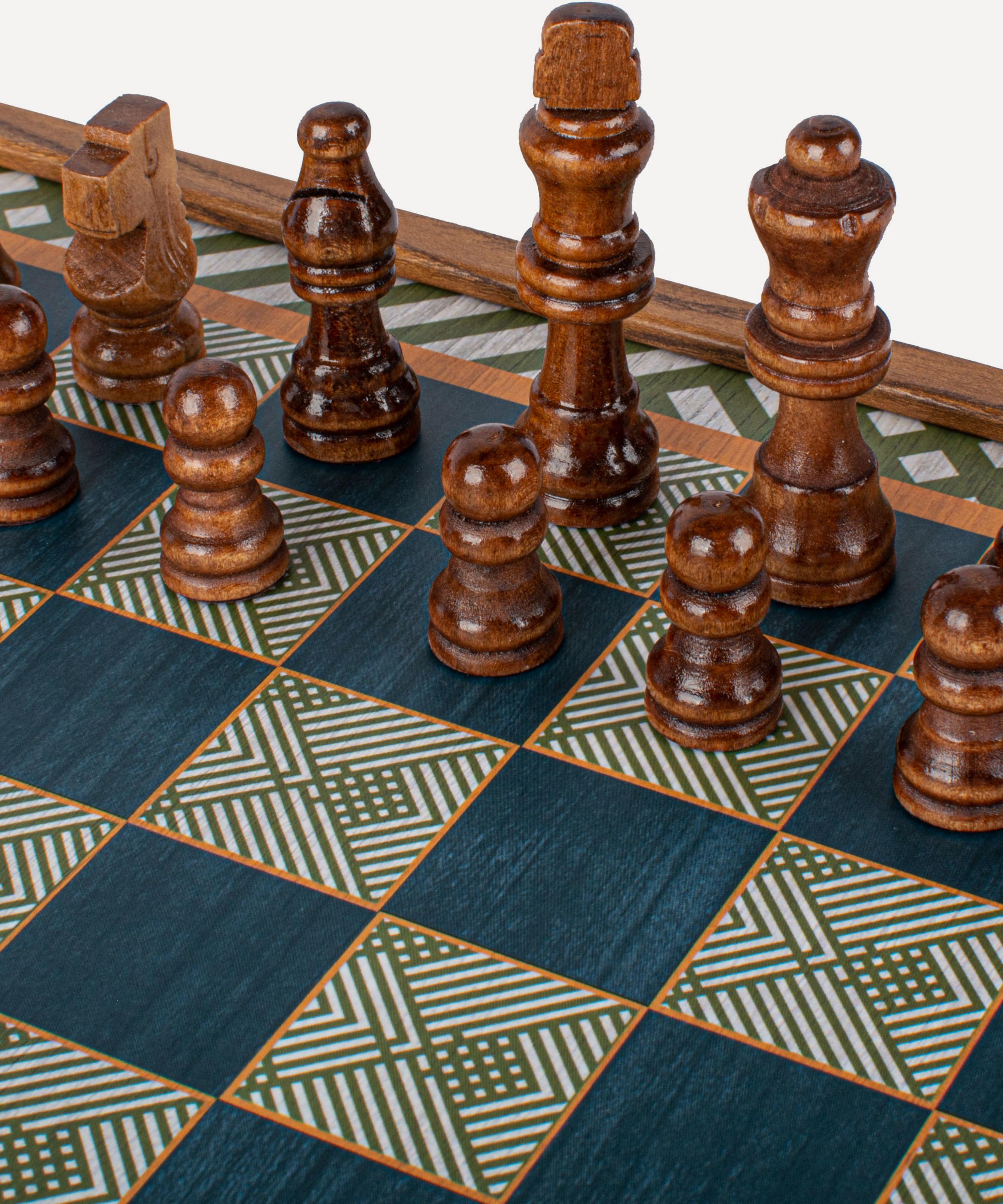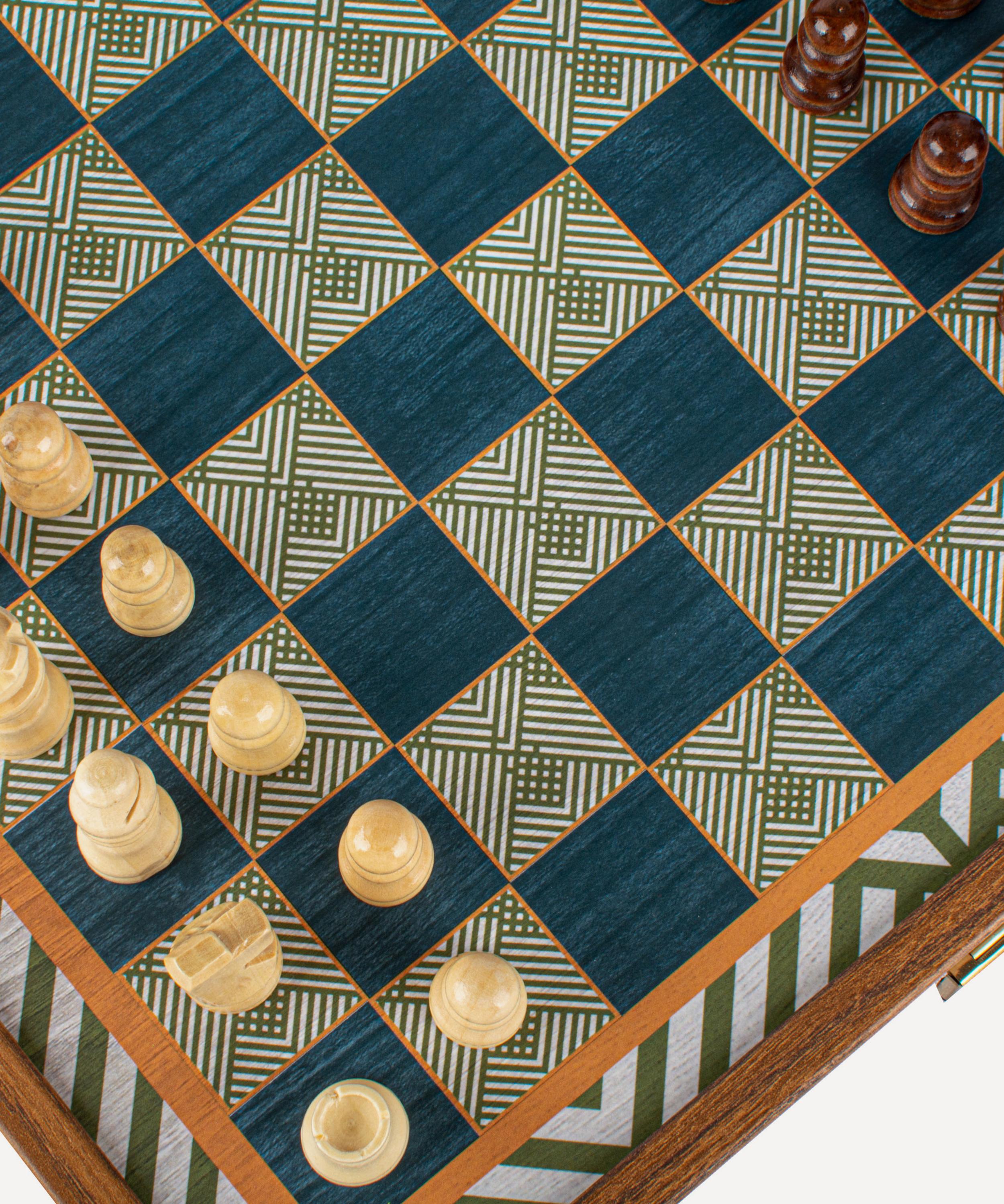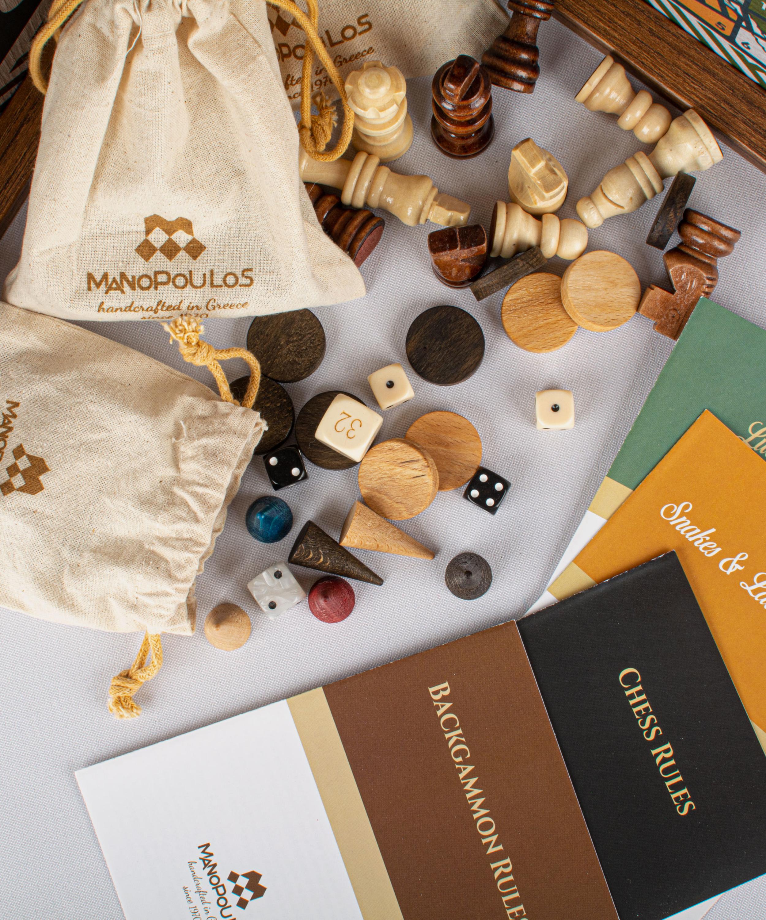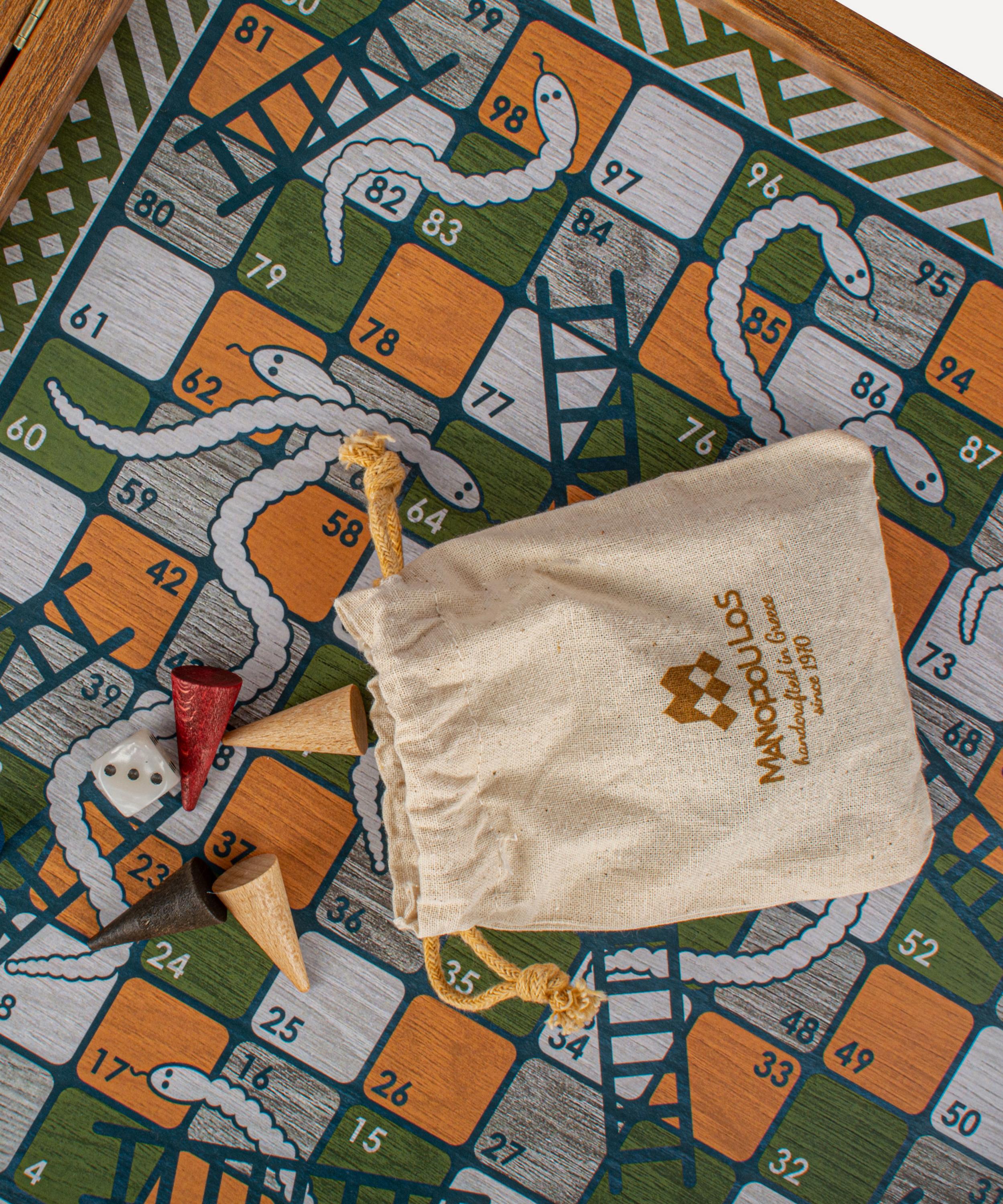 This 4-in-1 combo set is meticulously handcrafted to a charmingly retro aesthetic, with an innovative design that allows chess, backgammon, ludo and snakes to be played. Effortlessly elegant as a stylistic object or the perfect addition to a well-stocked games room, this luxury four-way board is set to impress.About Manopoulos