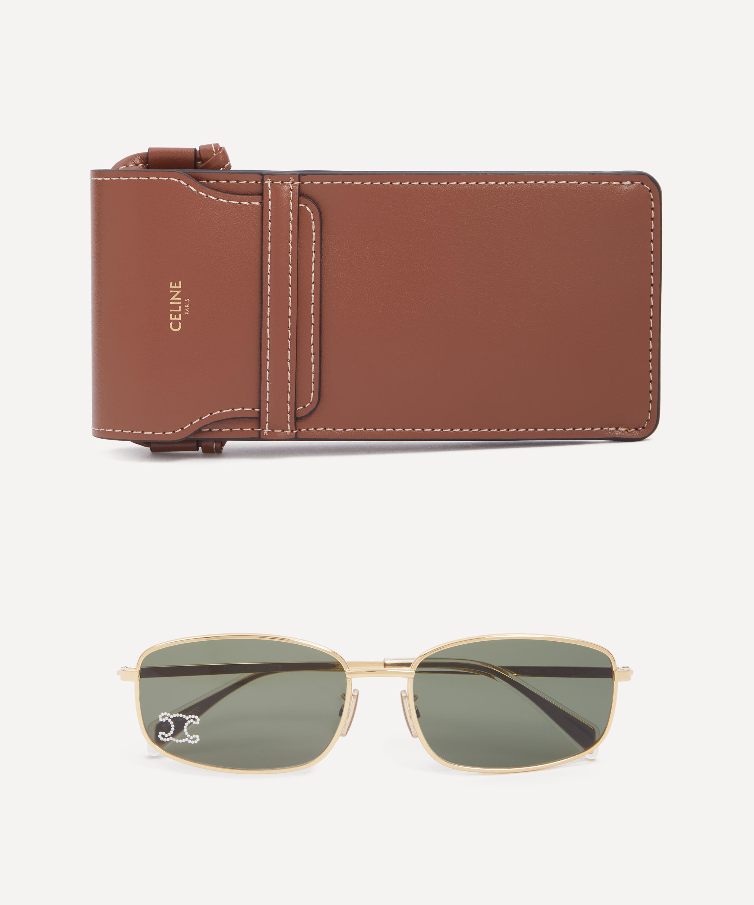 Timeless and ultra-wearable in equal measures, these square sunglasses from Celine will instantly invigorate any attire. Expertly crafted from gold-tone metal for a sleek finish, they’re further characterised by green tinted lenses adorned with a rhinestone emblem logo to the corner. Slide them on for a sophisticated French finish to your everyday look.