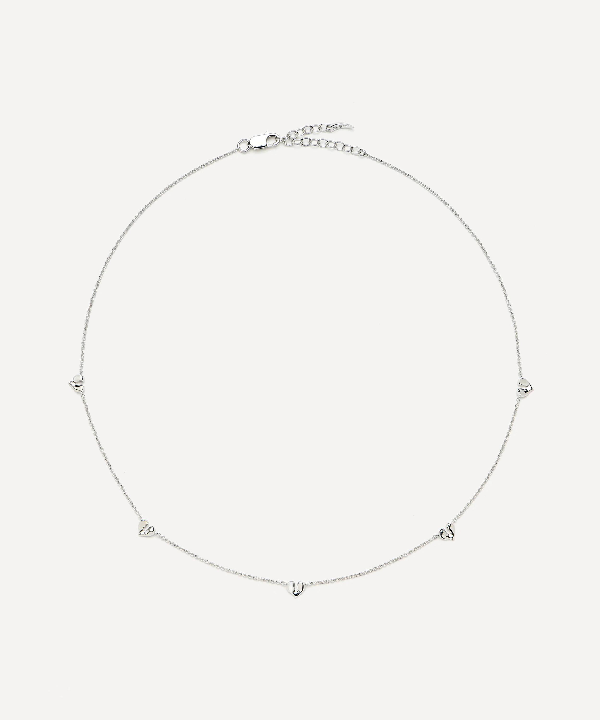 Crafted from rhodium-plated sterling silver, it features a delicate chain adorned with mini hearts, adding a touch of subtle glamour. Style it solo, team it with other gold necklaces, or pair it with a matching piece from the Molten collection.