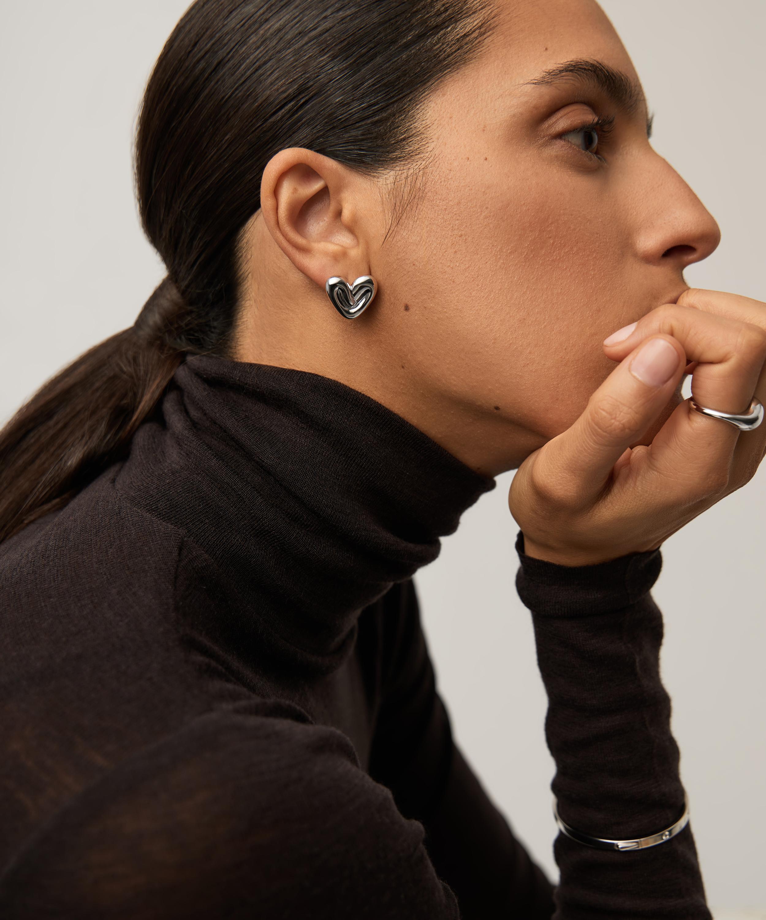 Designed for every love story, each stud is exquisitely crafted from rhodium-plated brass, featuring a sculptural, puffy heart. Treat yourself to this lovely pair or capture a loved one’s heart. They can be styled solo, or incorporated into an ear stack.