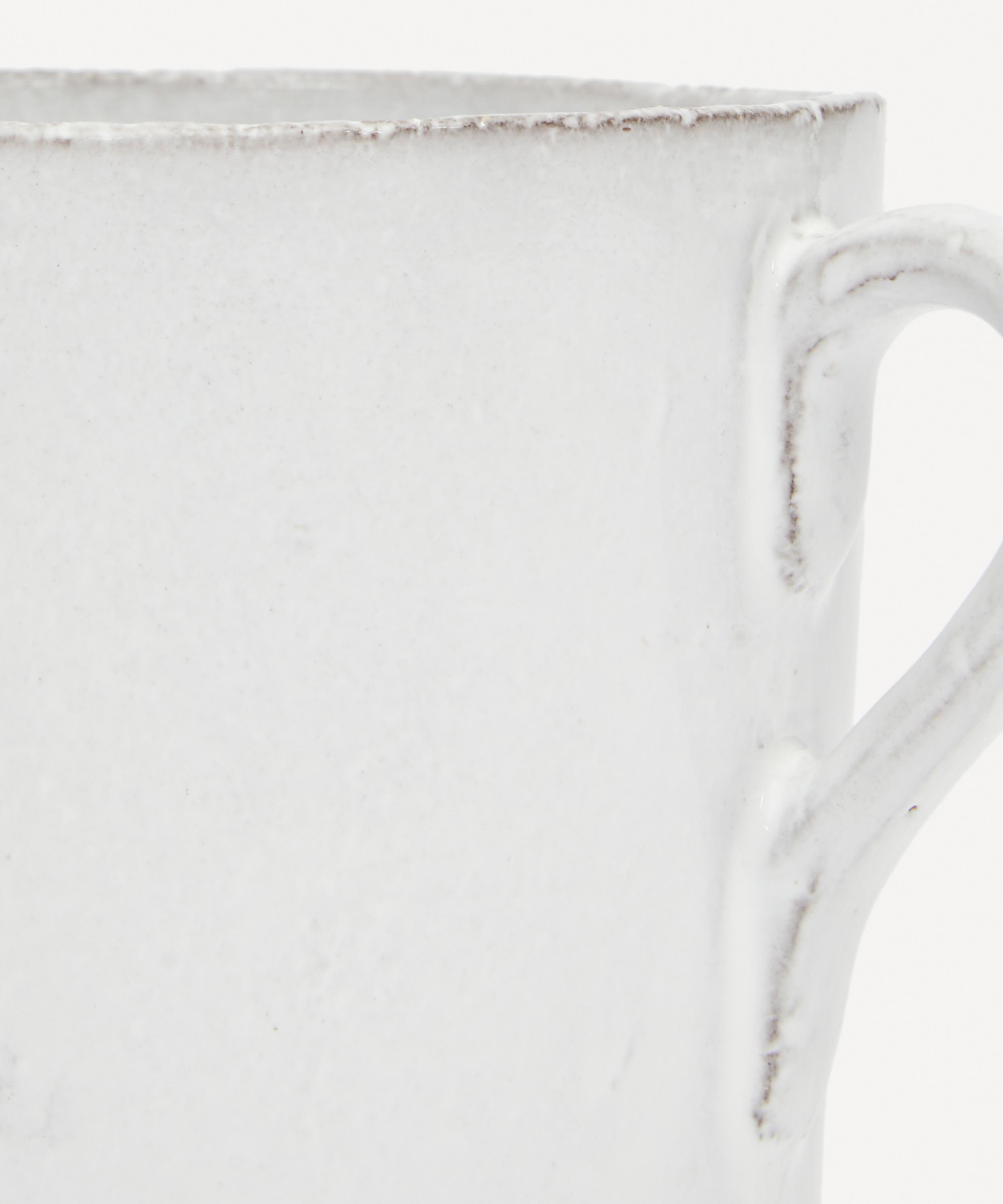 Votary of pre-industrial fabrication, Astier de Villatte is celebrated for being the one and only studio in Paris to hold and harbour the traditions of artisanal ceramic production. Restoring the ancestral systems of moulding and stamping, the Rien cup three is made using techniques from the Middle Ages which involve moulding a sheet of handmade clay, double firing the ‘biscuit’ piece and glazing the product in white enamel – a lengthy process that requires a drying time of up to one month. Characterised by exposed clay and a small handle, the cup is engraved with the brand’s signature crest - depicting an interlacing A & V - alongside the initials of one of the 40 master artisans who created it. Each handmade piece tells a beautiful story, it romances and imparts a sense of nostalgia into its owner. Arrange with other mugs in the collection to breathe an air of authenticity into your afternoon tea setting.