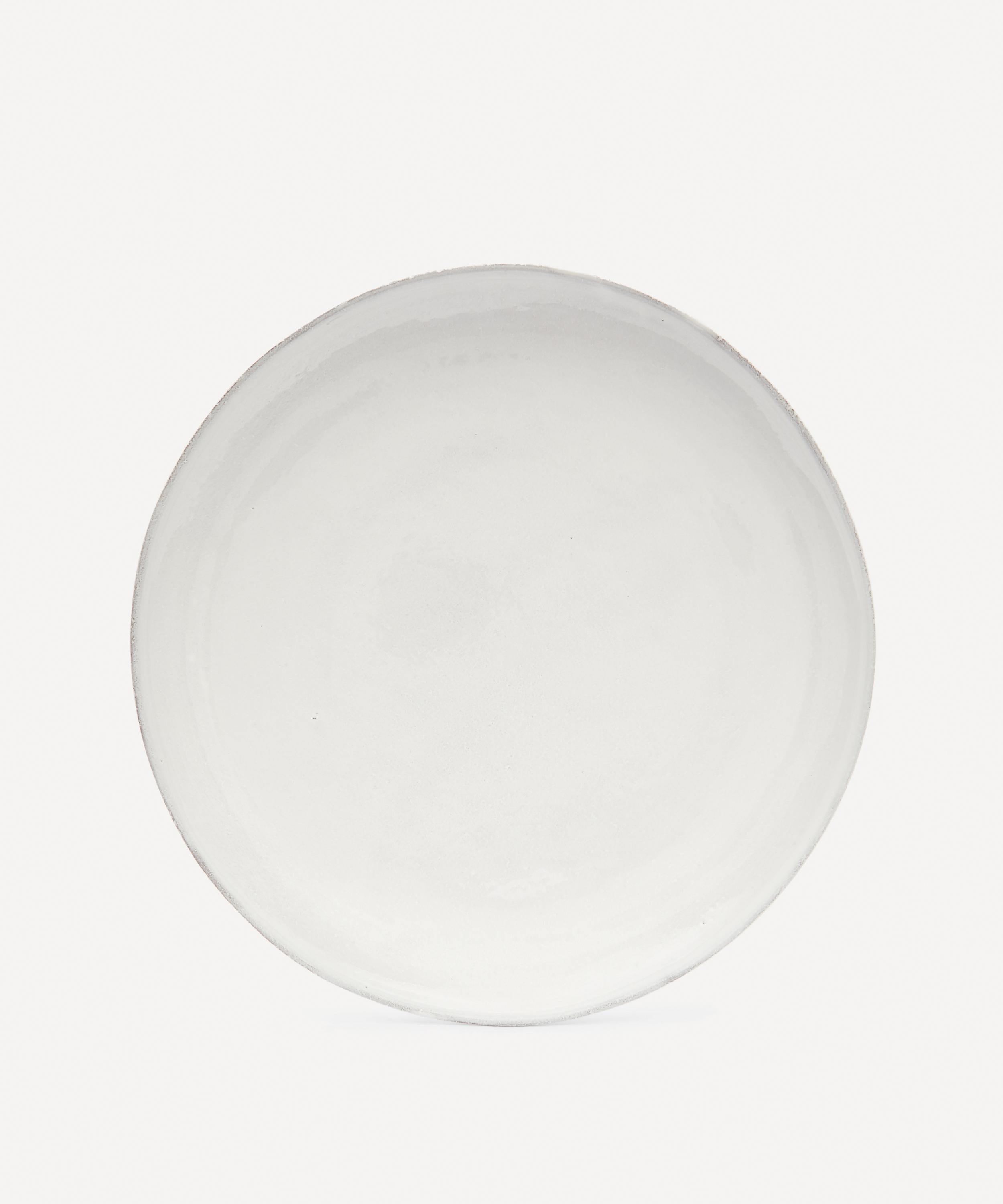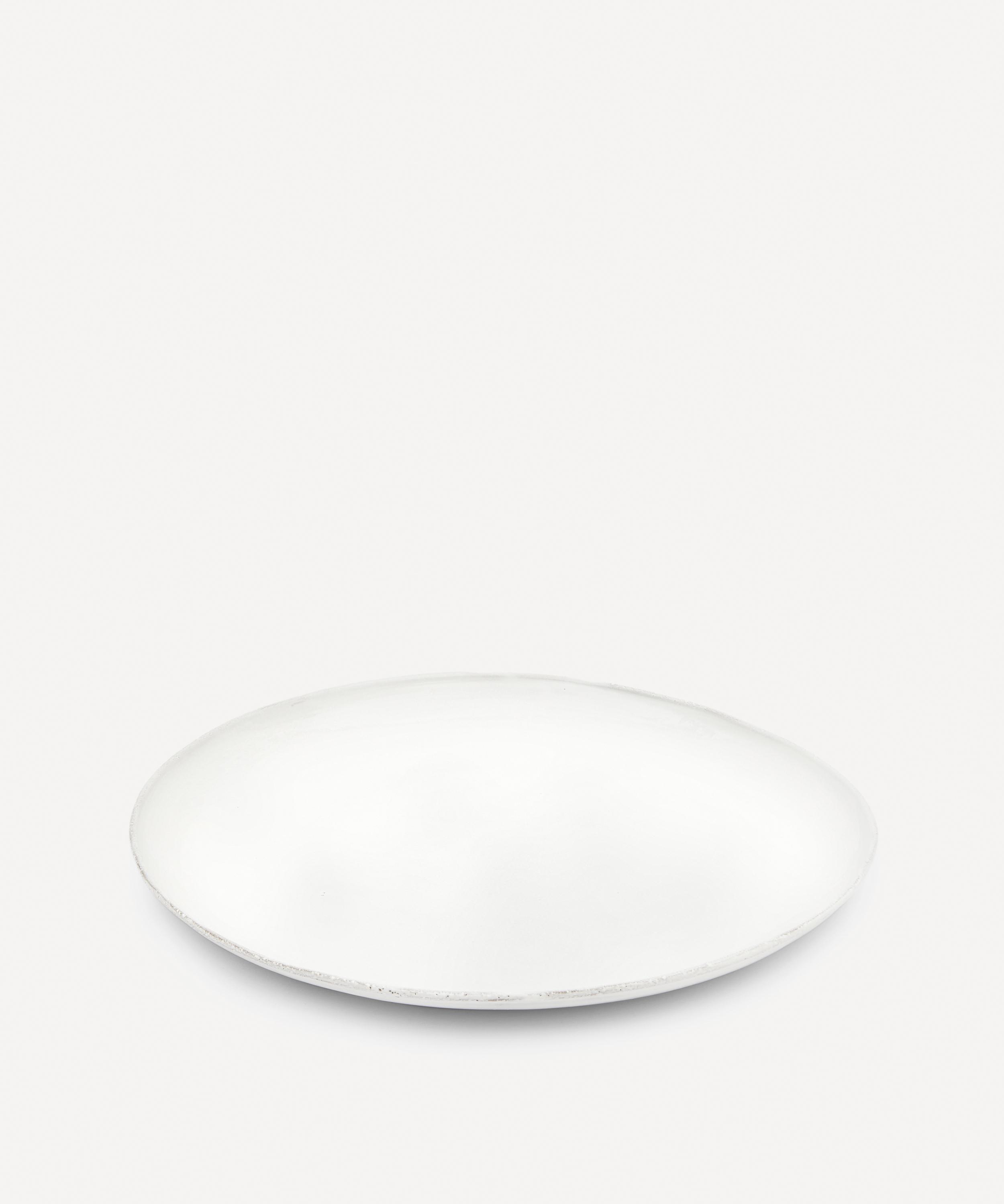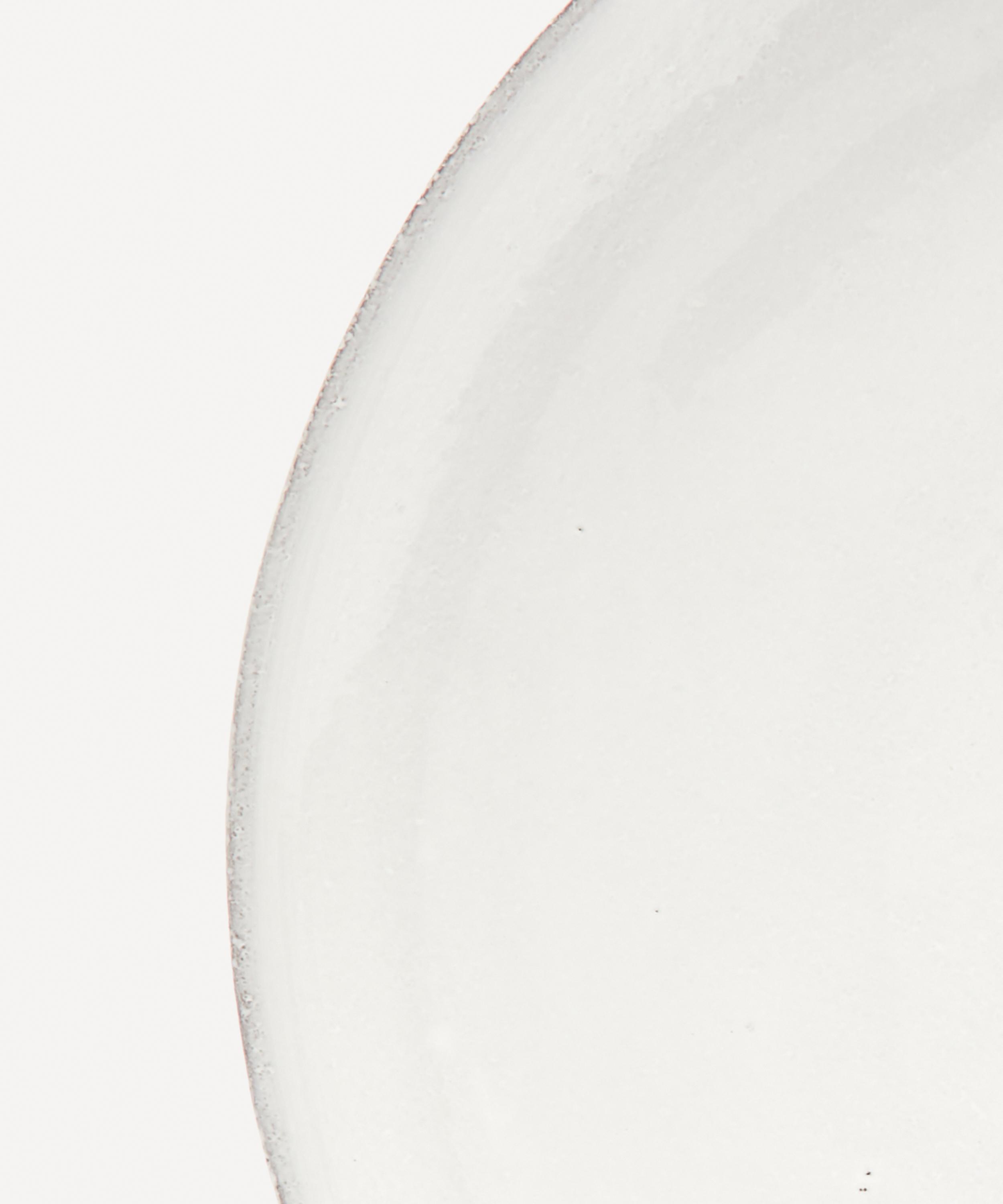 Votary of pre-industrial fabrication, Astier de Villatte is celebrated for being the one and only studio in Paris to hold and harbour the traditions of artisanal ceramic production. Restoring the ancestral systems of moulding and stamping, the round Rien platter is made using handcrafting techniques from the Middle Ages which involve moulding a handmade sheet of clay, double firing the ‘biscuit’ piece and glazing the product in white enamel – a lengthy process that requires a drying time of up to one month. The circular piece is engraved with the brand’s signature crest - depicting an interlacing A & V - alongside the initials of one of the 40 master artisans who created the glazed platter. Each handmade piece tells a beautiful story, it romances and imparts a sense of nostalgia into its owner. Arrange with other serveware in the collection to breathe an air of authenticity into your table setting.