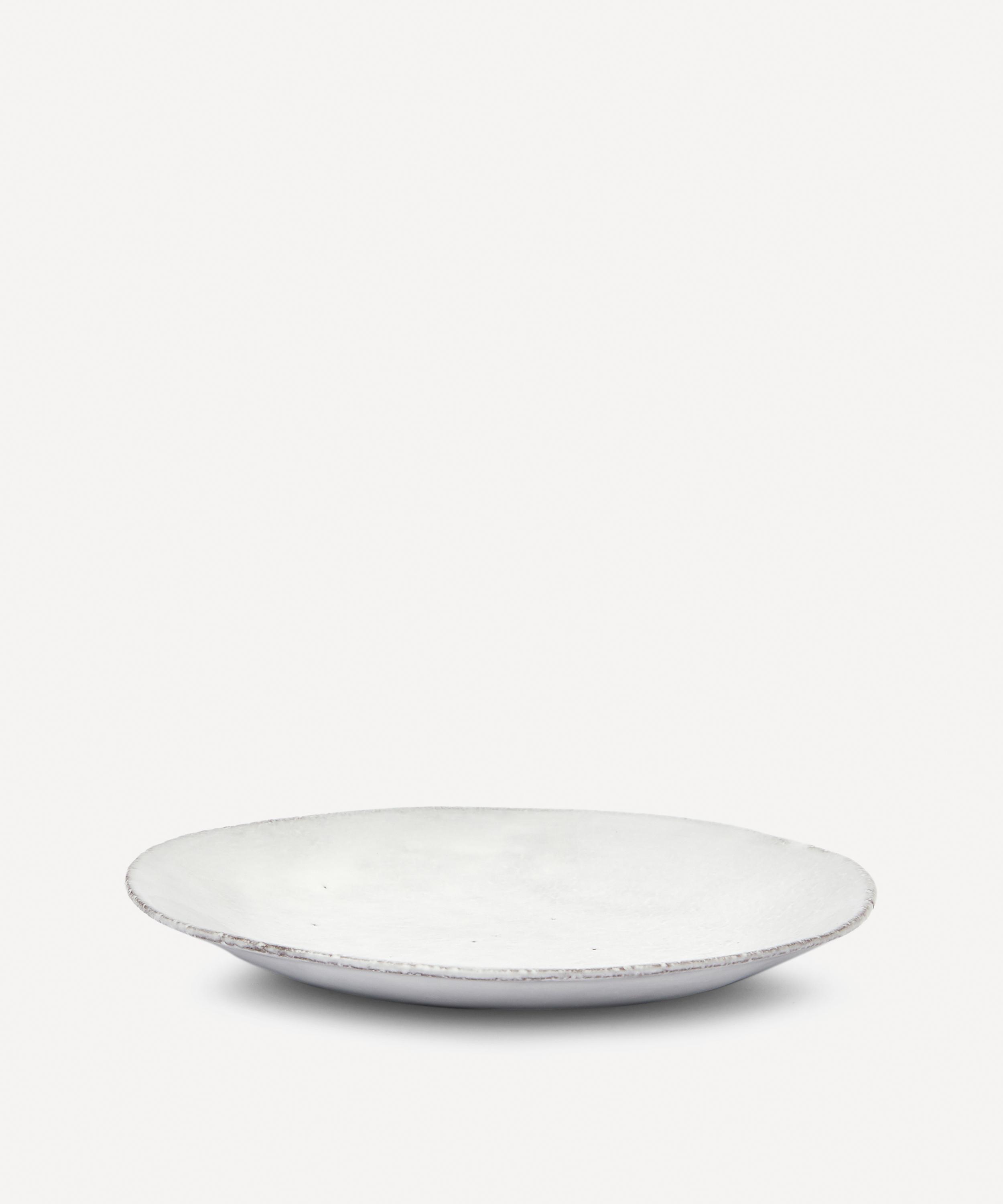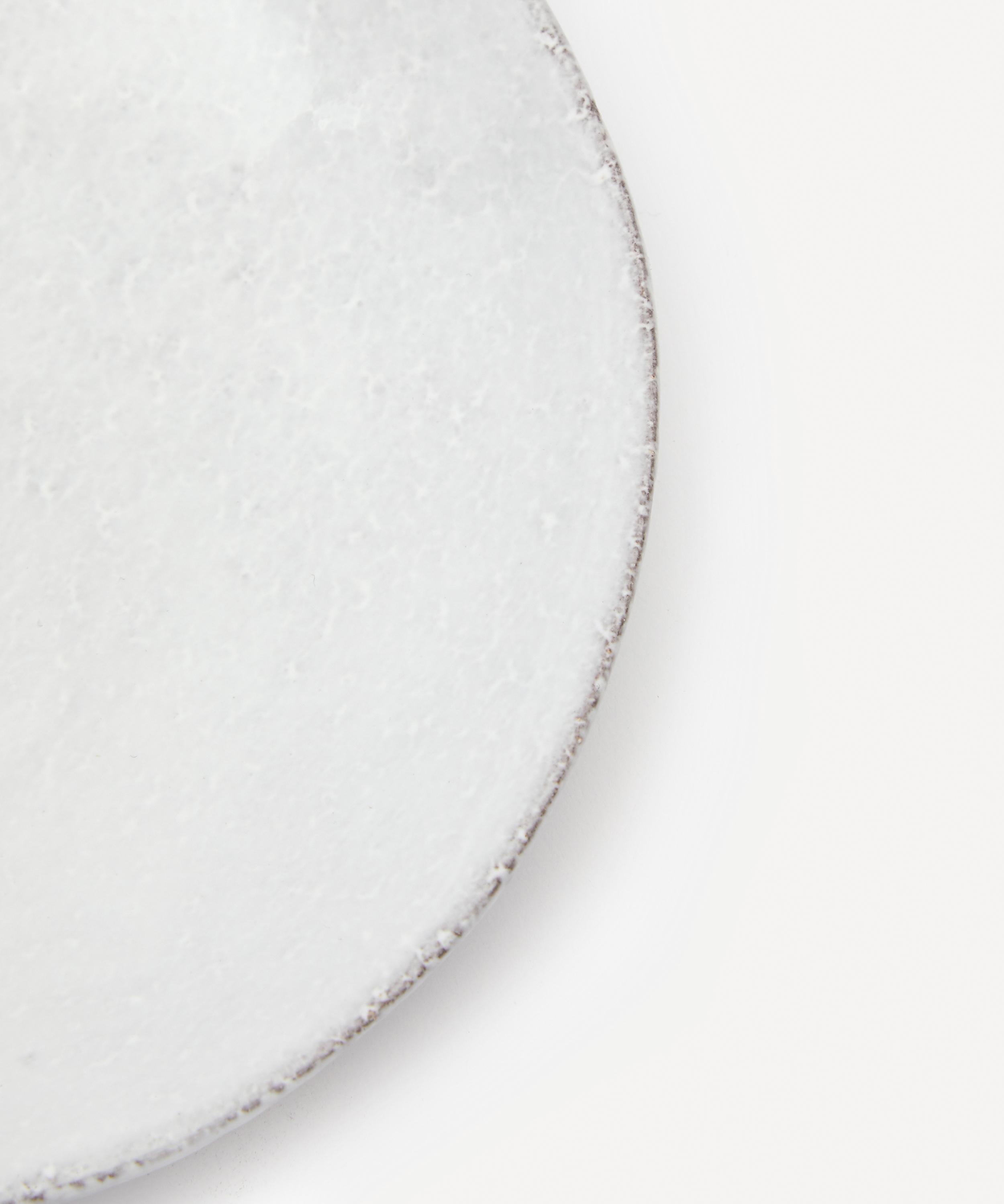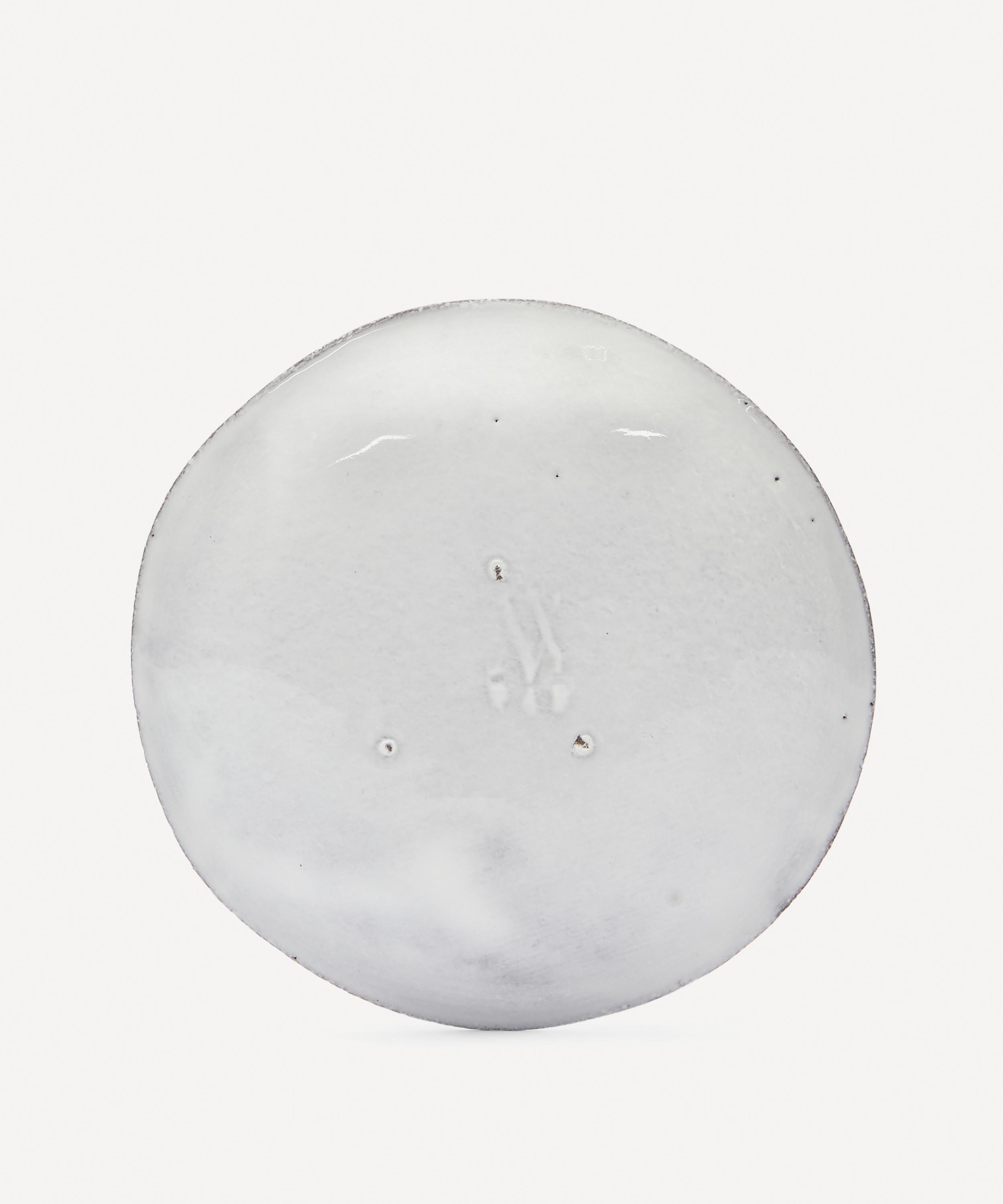 Votary of pre-industrial fabrication, Astier de Villatte is celebrated for being the one and only studio in Paris to hold and harbour the traditions of artisanal ceramic production. Restoring the ancestral systems of moulding and stamping, the Rien small plate is made using handcrafting techniques from the Middle Ages which involve moulding a handmade sheet of clay, double firing the ‘biscuit’ piece and glazing the product in white enamel – a lengthy process that involves a drying time of up to one month. Characterised by subtle indentations and exposed clay, the small plate is engraved with the brand’s signature crest - depicting an interlacing A & V - alongside the initials of one of the 40 master artisans who created it. Each handmade piece tells a beautiful story, it romances and imparts a sense of nostalgia into its owner. Arrange with other glazed bowls and plates in the collection to breathe an air of authenticity into your dining collection.