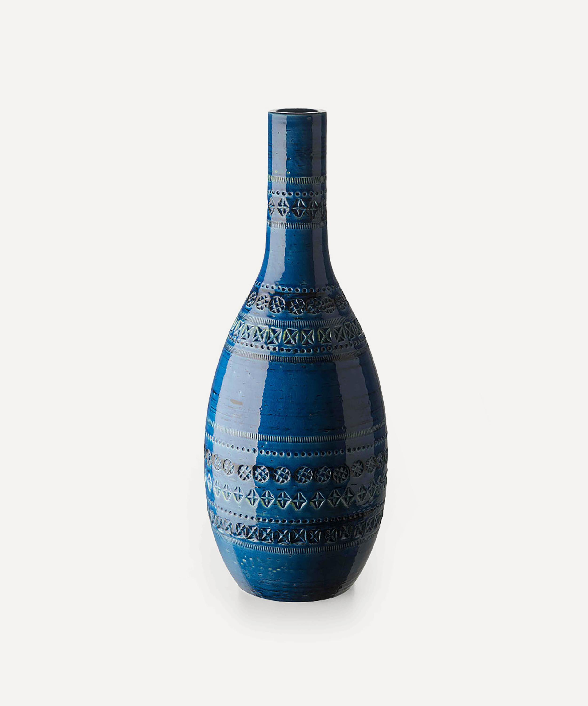 Bitossi’s Bottiglia vase is a member of the Italian brand’s iconic Rimini Blu ceramic series – each glazed a distinctive blue, and decorated with a frieze of abstract geometric imprints.