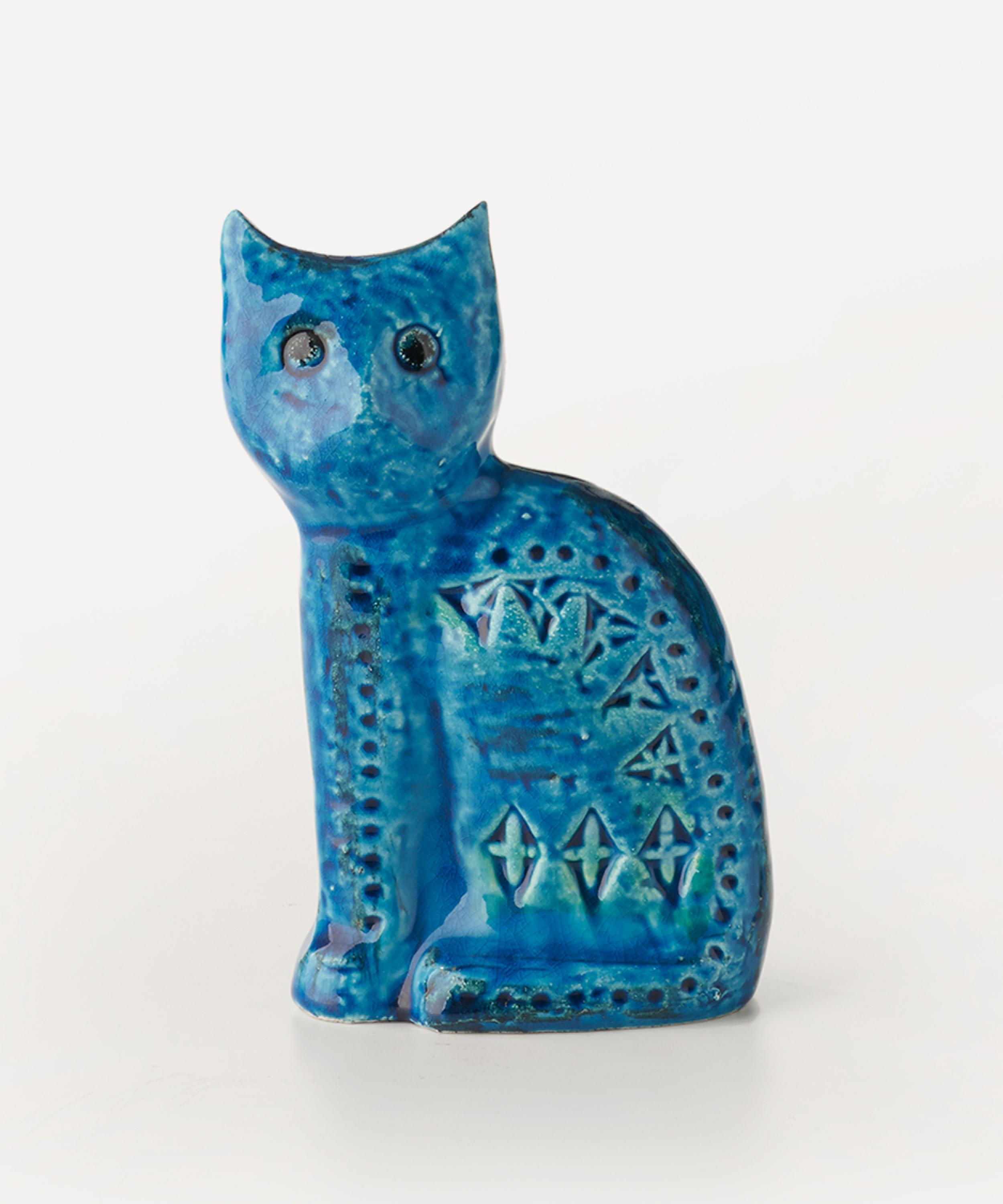 Bitossi’s sitting cat figure is a member of the Italian brand’s iconic Rimini Blu ceramic series – each glazed a distinctive blue, and decorated with a frieze of abstract geometric imprints.