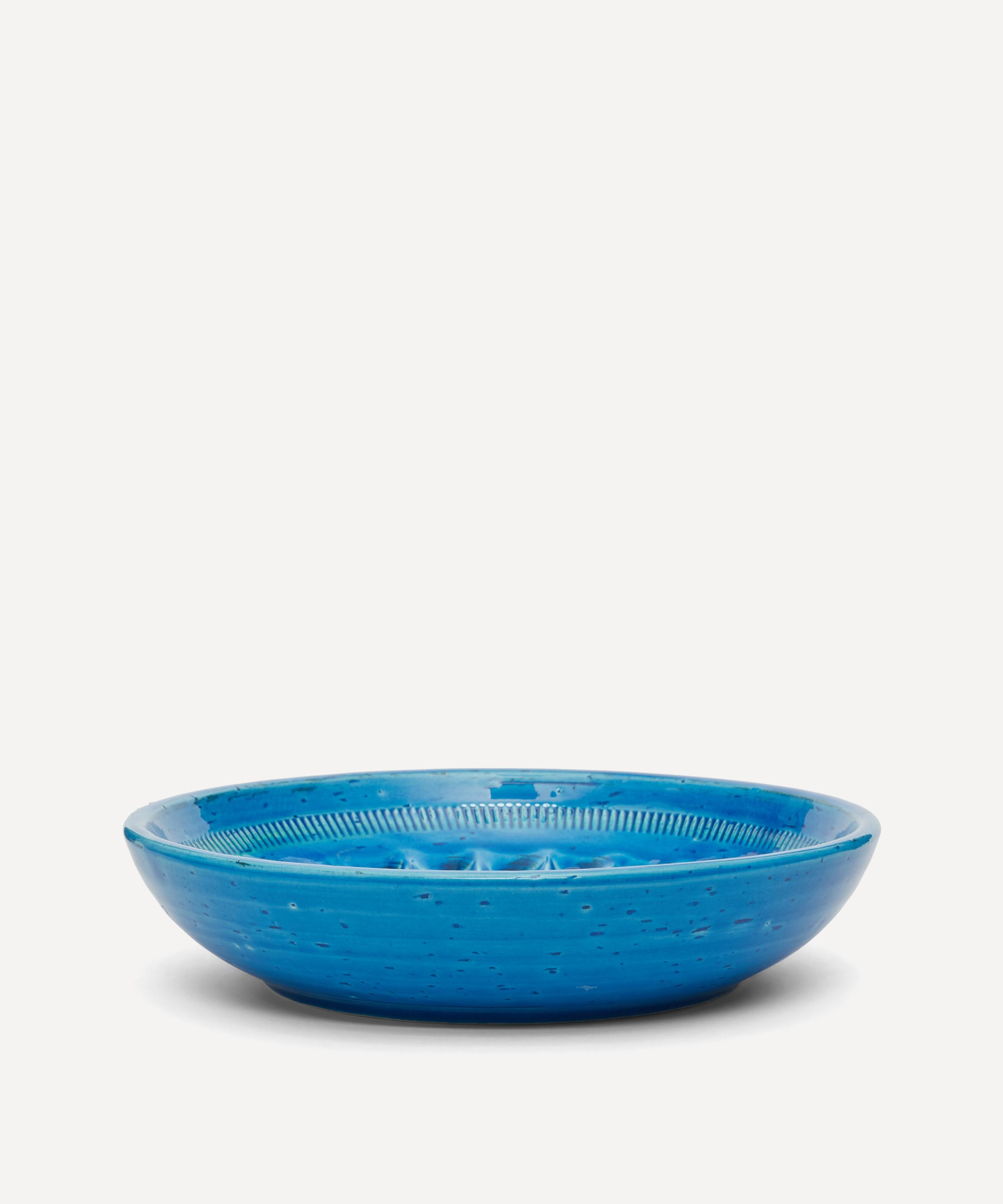 Bitossi’s dish is a member of the Italian brand’s iconic Rimini Blu ceramic series – each glazed a distinctive blue, and decorated with a frieze of abstract geometric imprints.