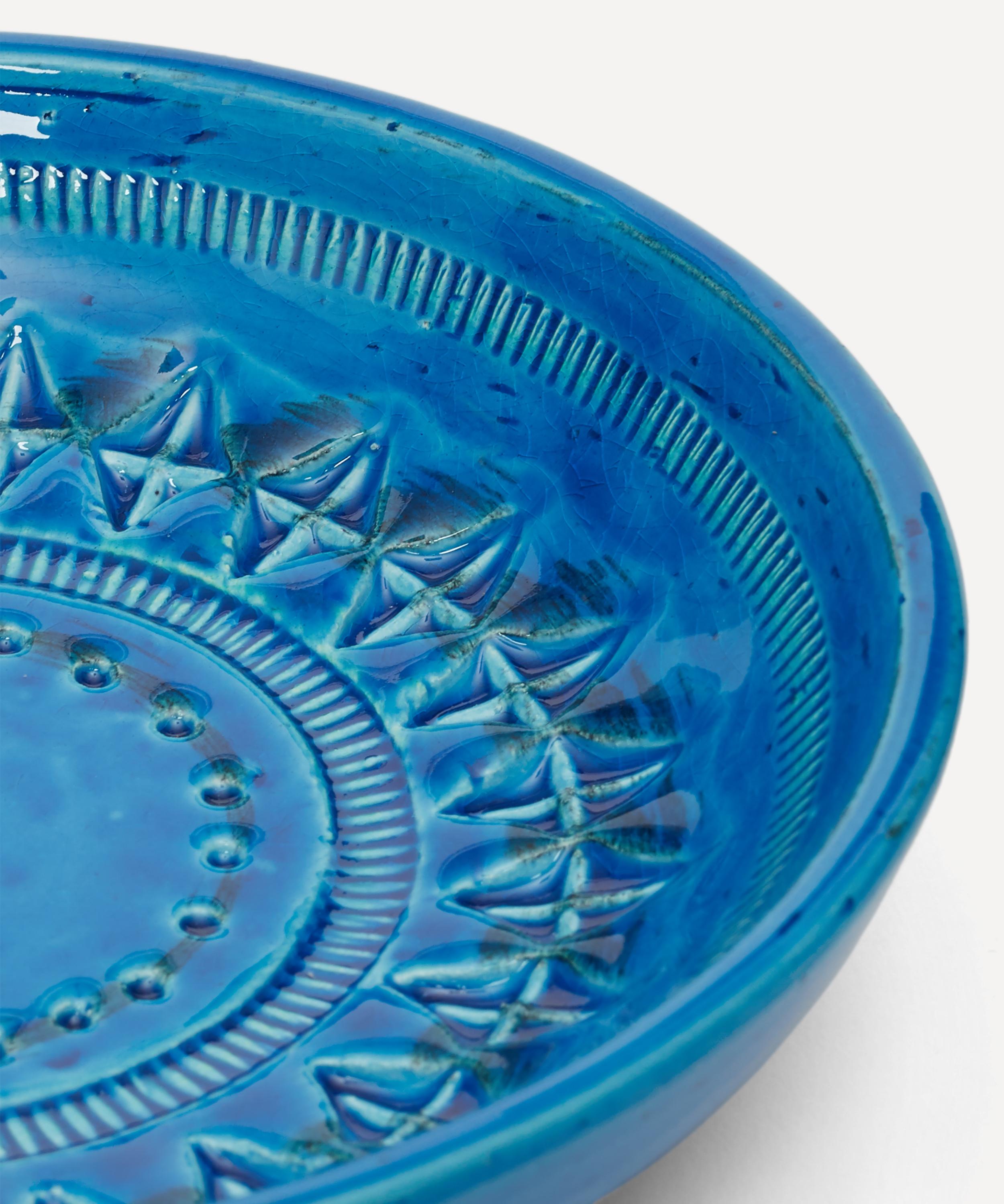 Bitossi has been producing the Rimini Blu series for 60 years – a true touchstone of Italian home interiors. This dish is treated with a vibrantly glossy blue glaze – an eye-catching centepiece for a dining table or a striking vide-poche. Each piece from the collection is handmade by skilled craftspeople in Italy using heritage techniques. The series was originally designed by Aldo Londi, who used to fill his pockets with little implements like wires, screws and nails to produce the brand's iconic, intricately imprinted detailing.