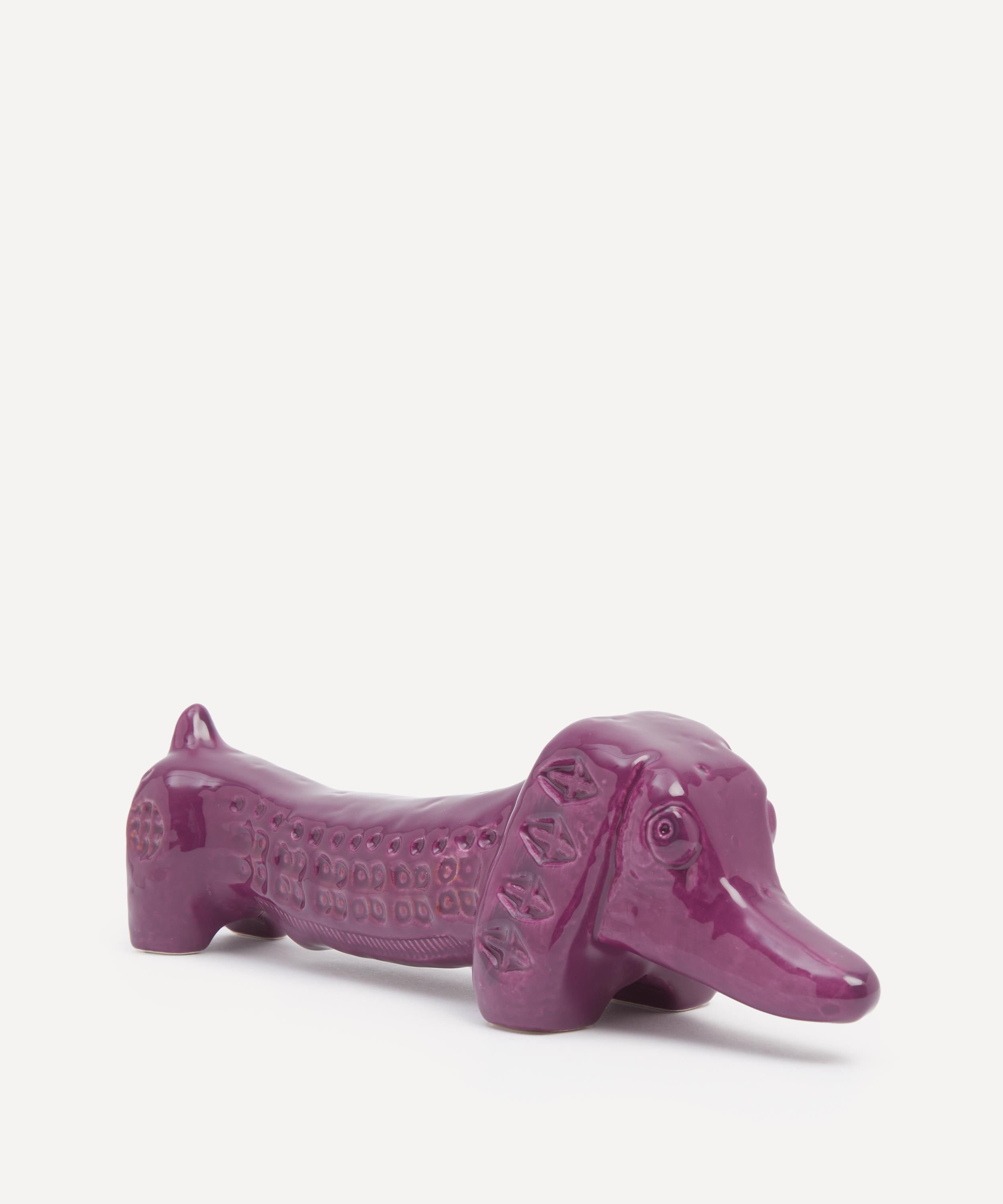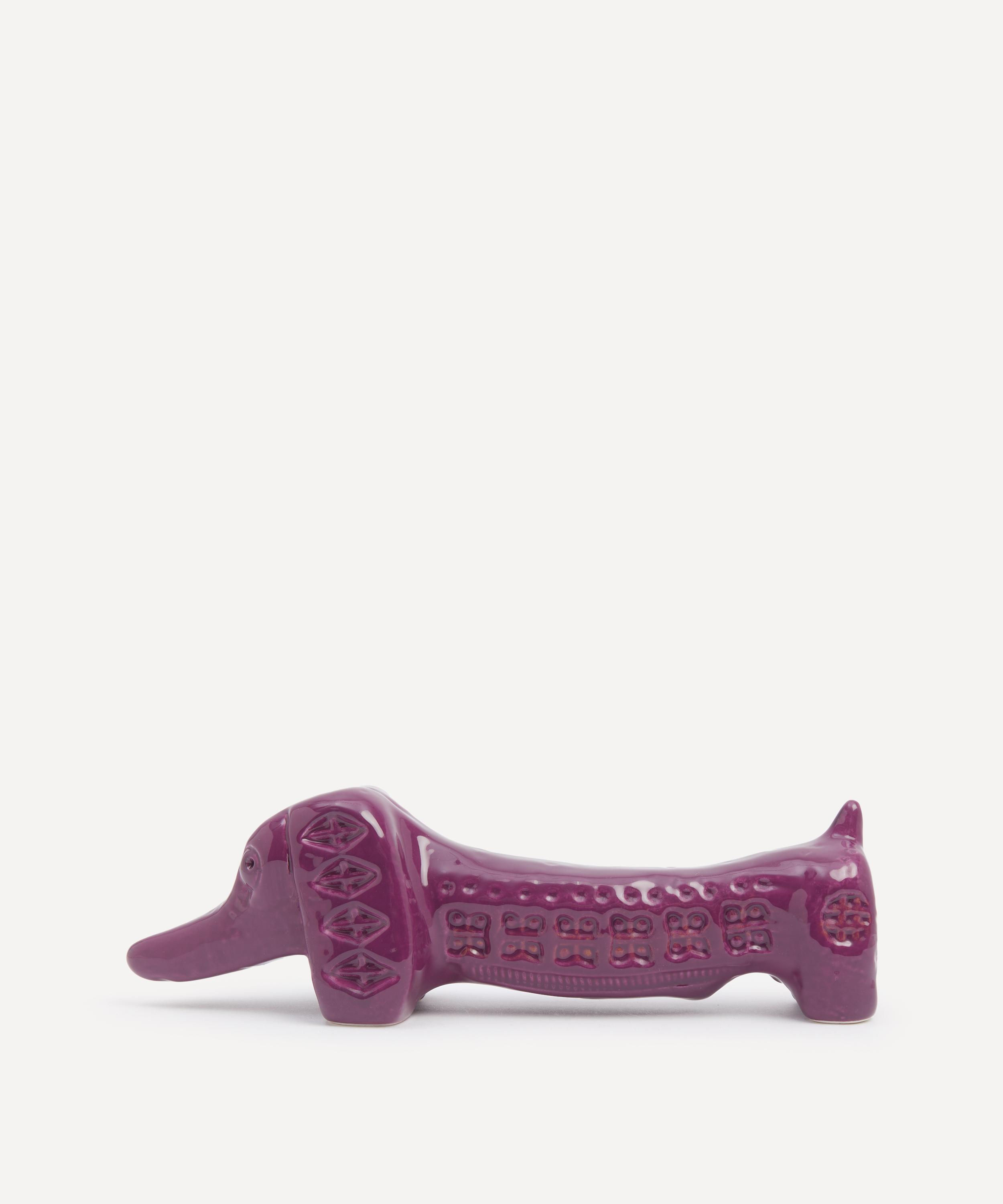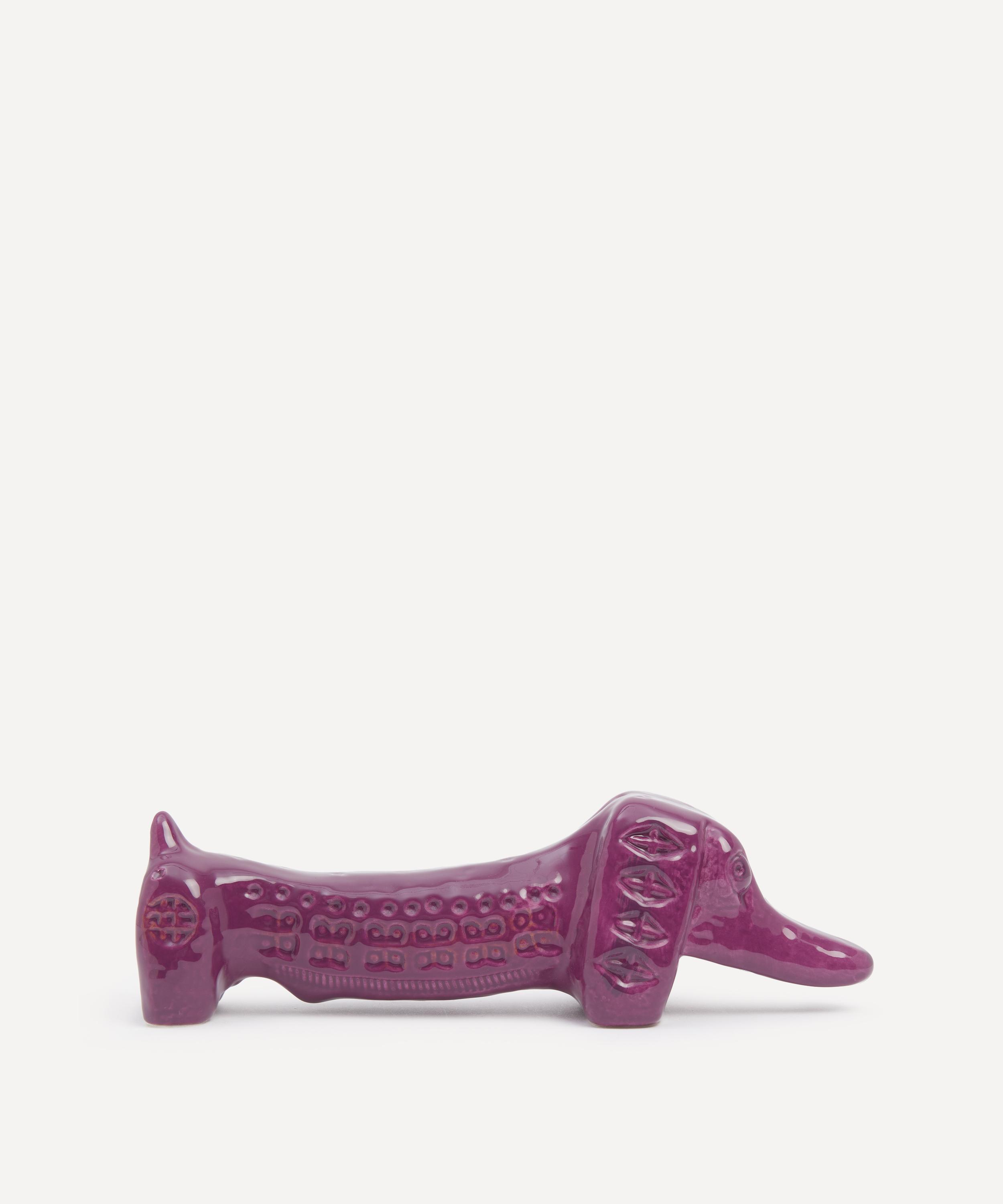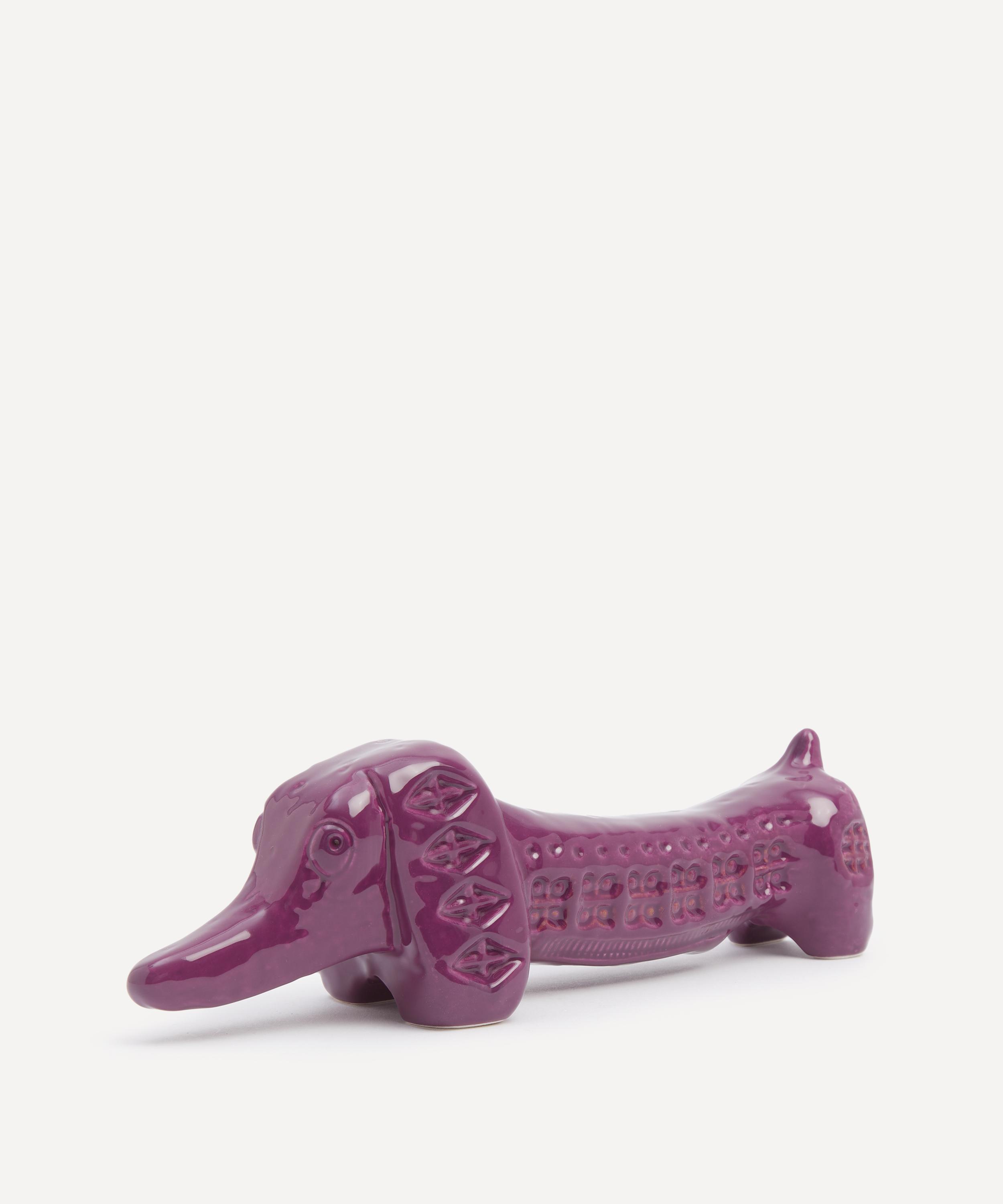 Bitossi’s long dog figure has been designed in collaboration with Liberty - glazed a distinctive purple and decorated with a frieze of abstract geometric imprints as part of the Italian brand’s Rimini by YOU ceramic series.