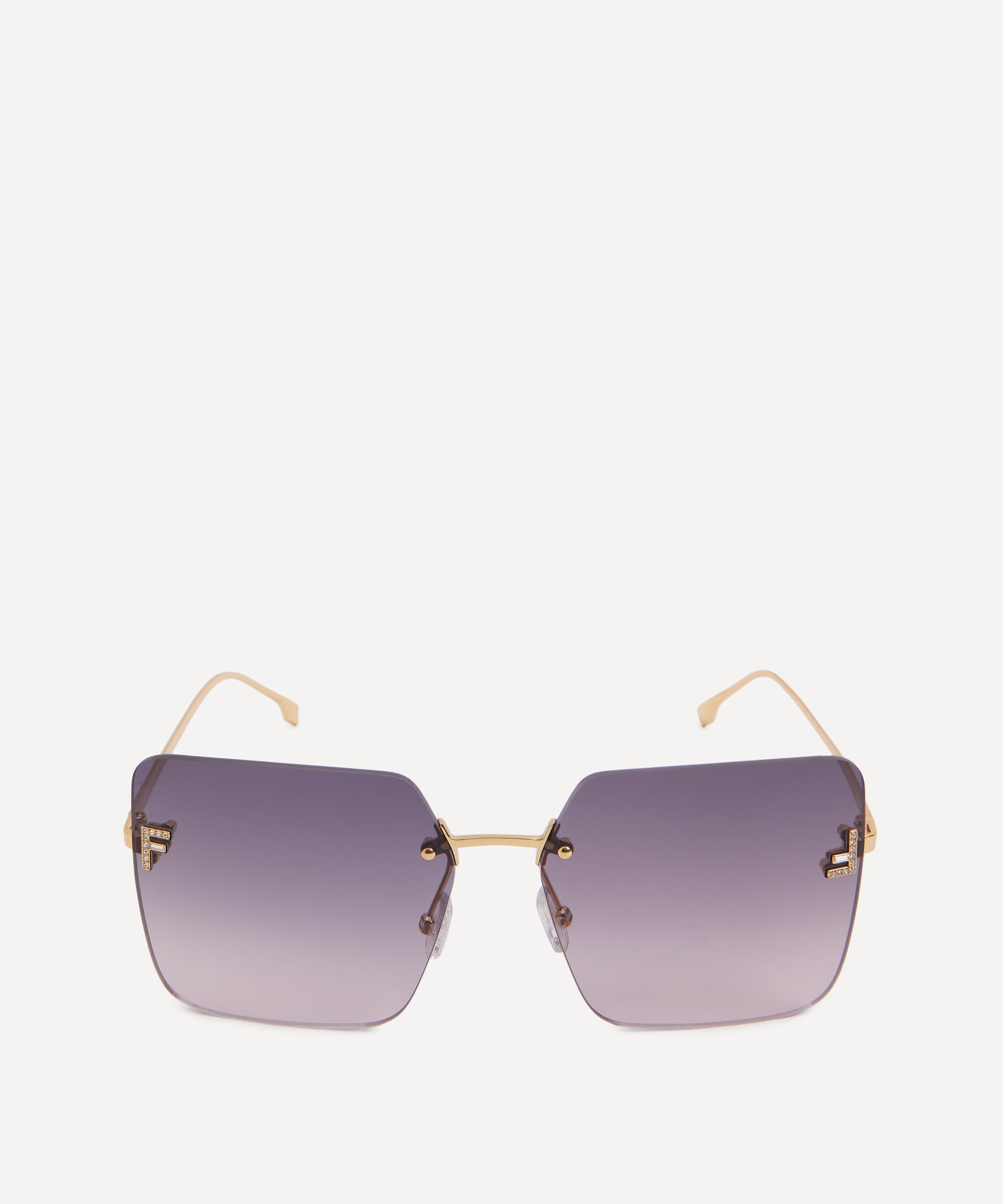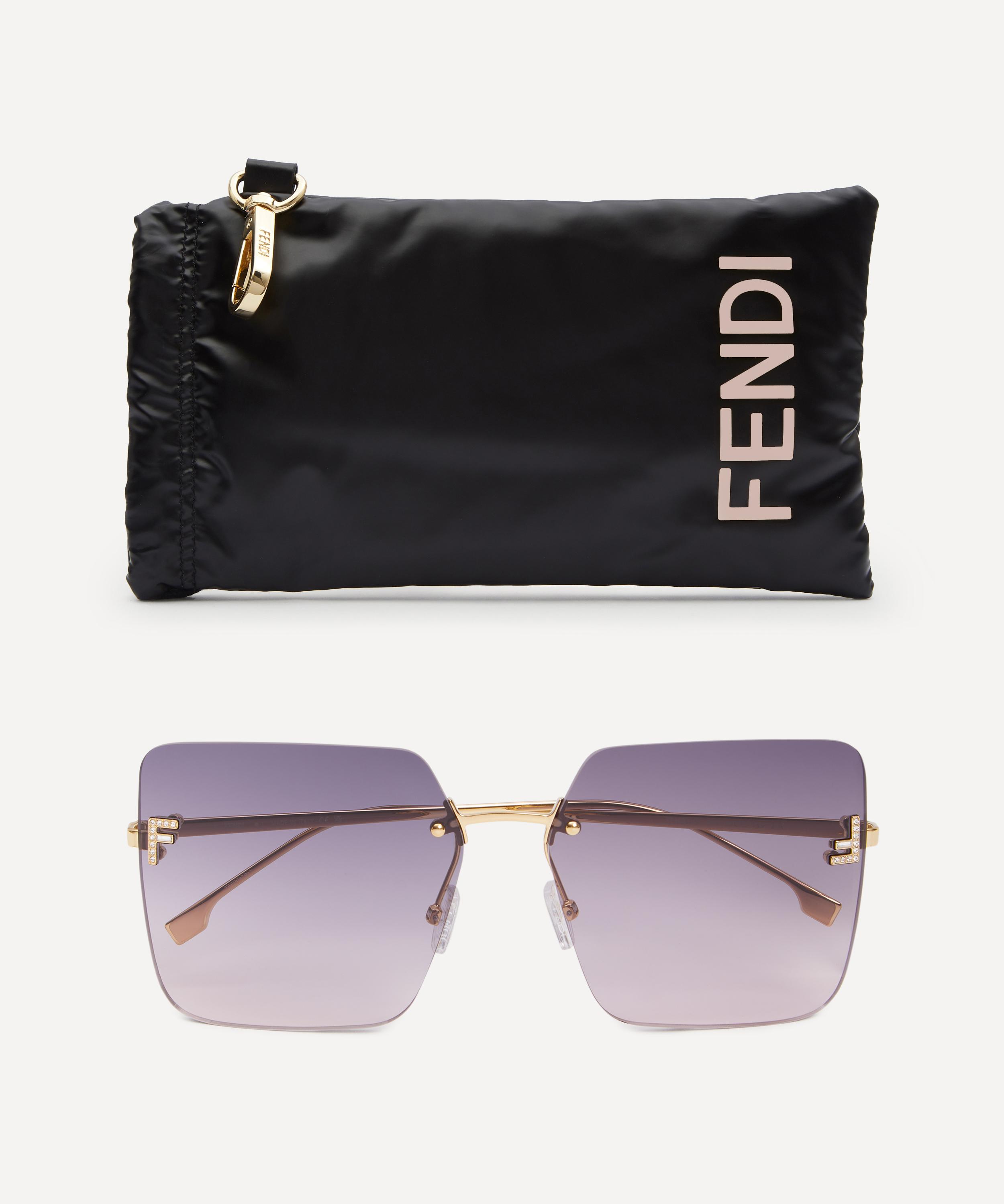 Boasting an elegant sensibility, this eye-catching pair have been meticulously crafted for a large, angular silhouette with rimless grey tinted lenses, and are complete with 'FF' logo detailing fixed to the front, complete with sparkling diamanté detailing.