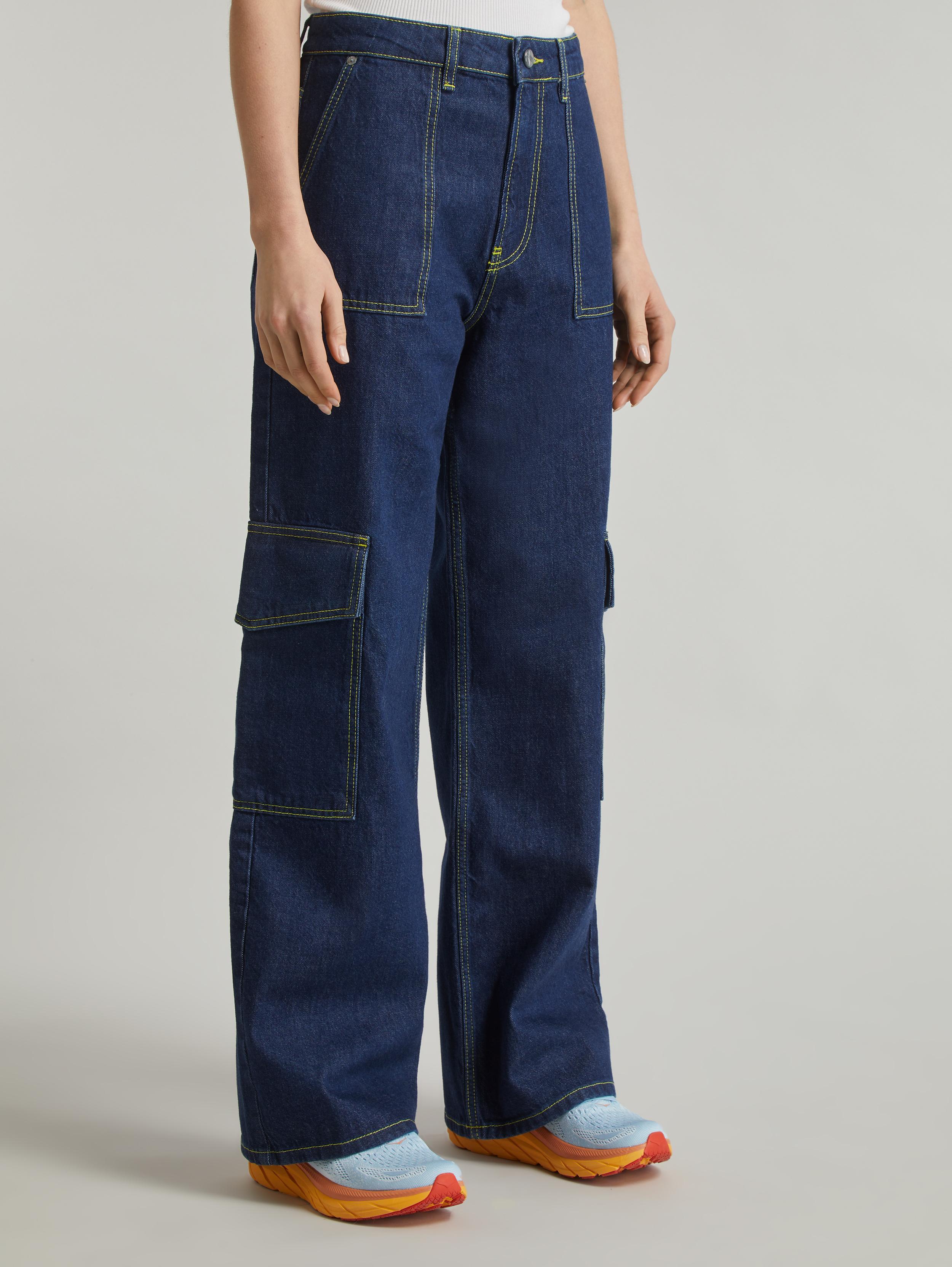 Denim done the Scandi-cool way, the Rinse Denim Angi jeans from GANNI are imbued with a Y2k sensibility. Cut for a baggy, wide-leg silhouette from 100% certified organic cotton denim, this utilitarian-inspired pair is fitted with classic five pockets and two large cargo flap-pockets with contrasting yellow top-stiching detail throughout.