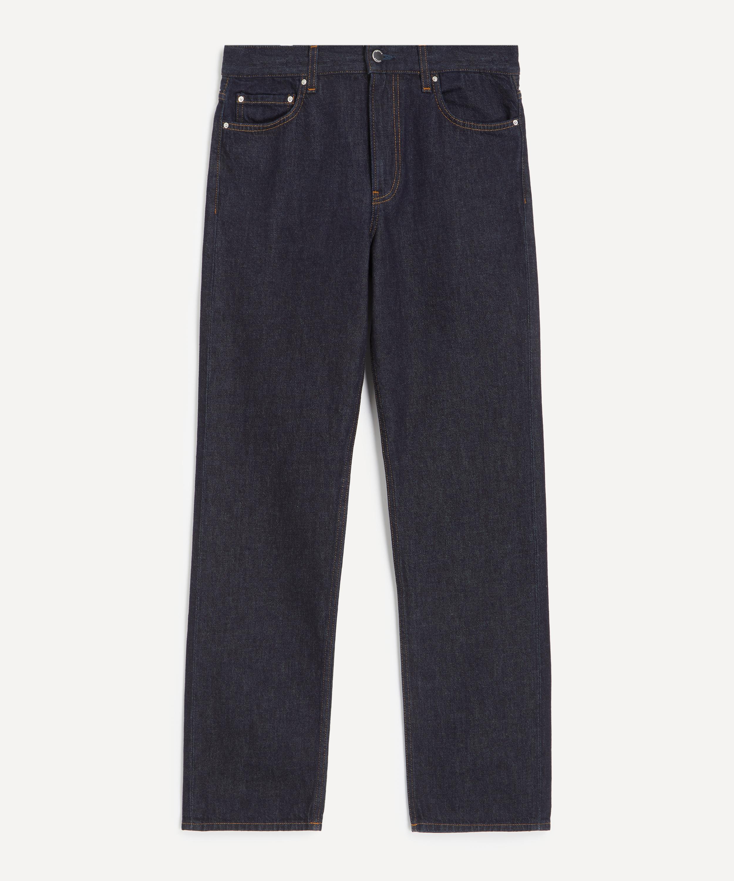 Crafted from cotton denim in a rinsed blue wash, these jeans feature a classic mid-low waist and straight-leg silhouette for a flattering, timeless fit. Finished with five pockets, belt loops, and a logo-embossed jacron patch at the back for a heritage touch.