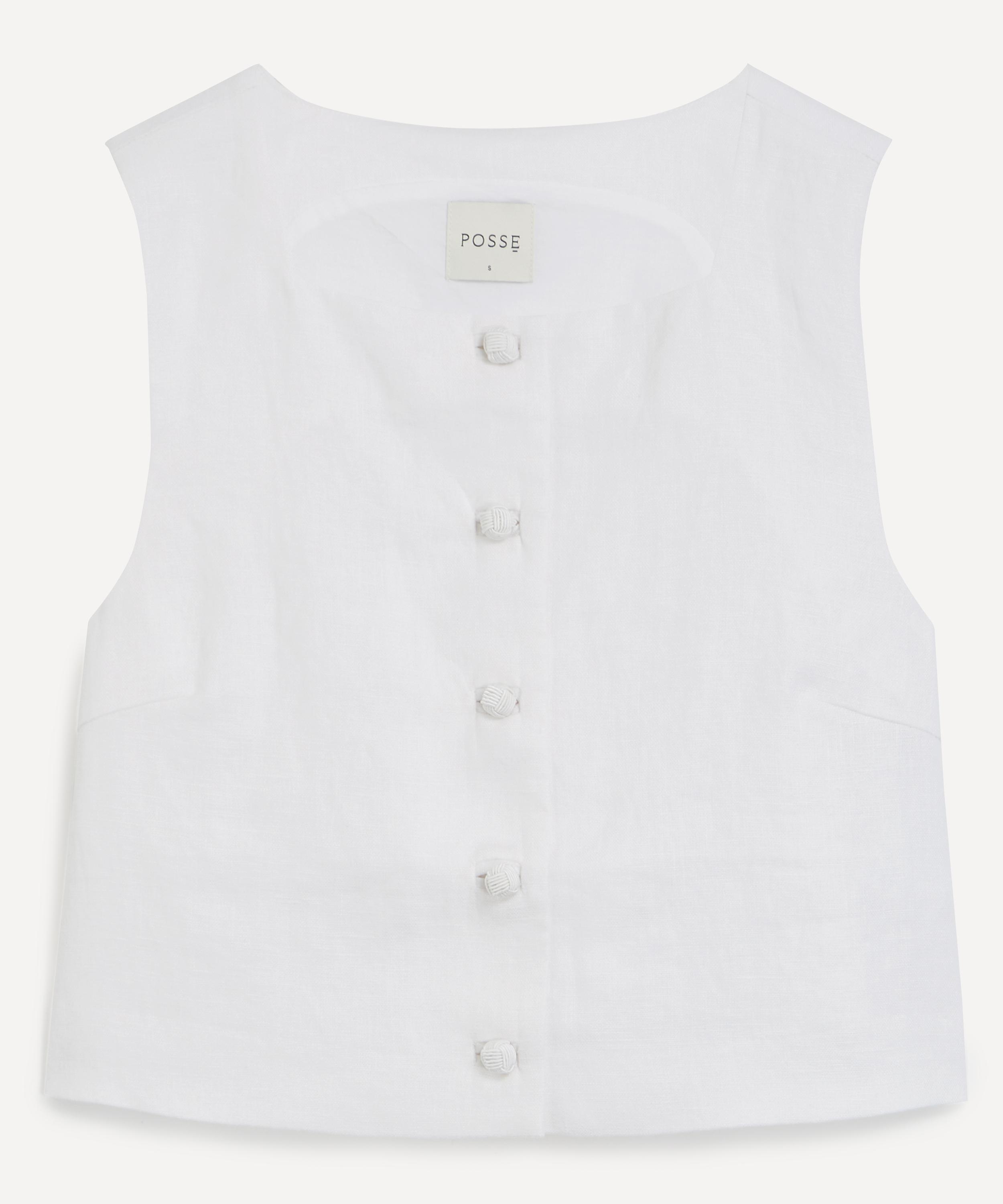 Timeless and elegant, the Rio Tailored Linen Crop Top from POSSE is an ode to enduring style.