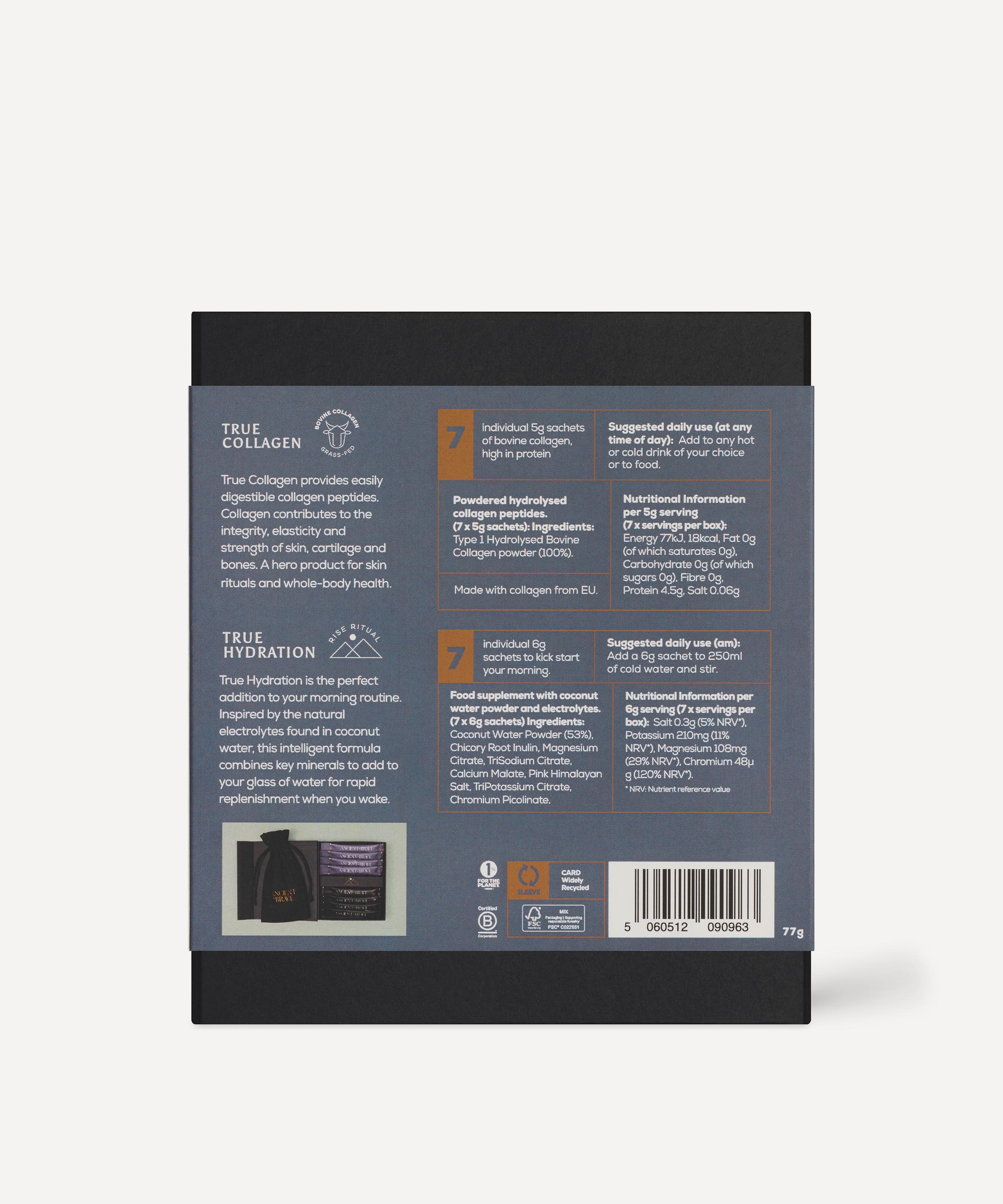 - Includes: True Hydration 15 x 6g & True Collagen 15 x 6g