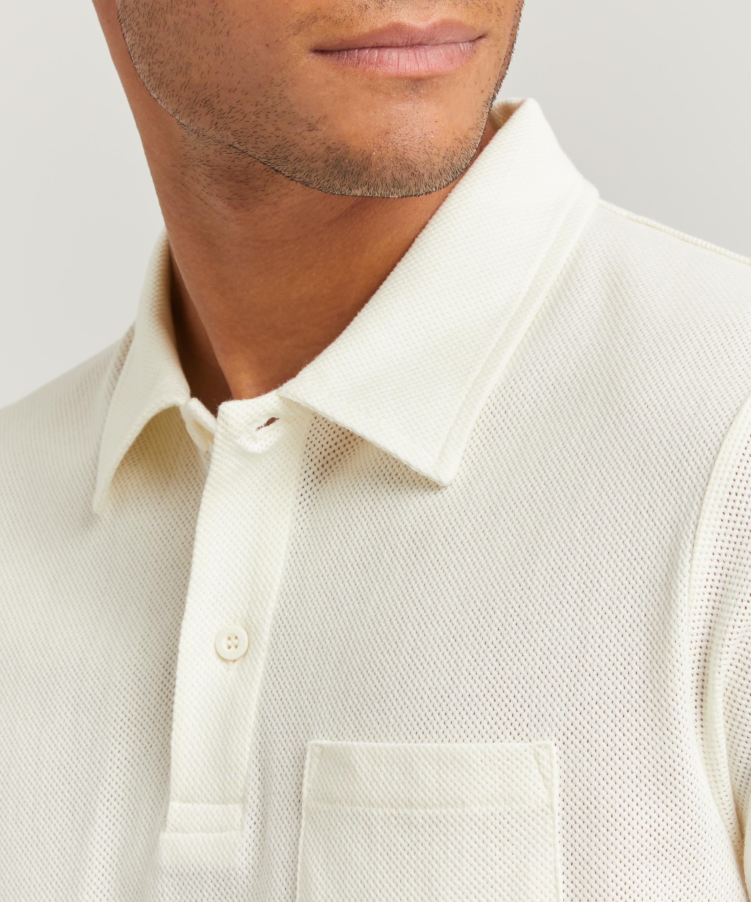 Cut from breathable cotton mesh, this versatile polo features a spread button-up collar, short sleeves and a front chest pocket. Pair with linen trousers and sandals to embrace the sun-soaked, effortless heritage of the piece.