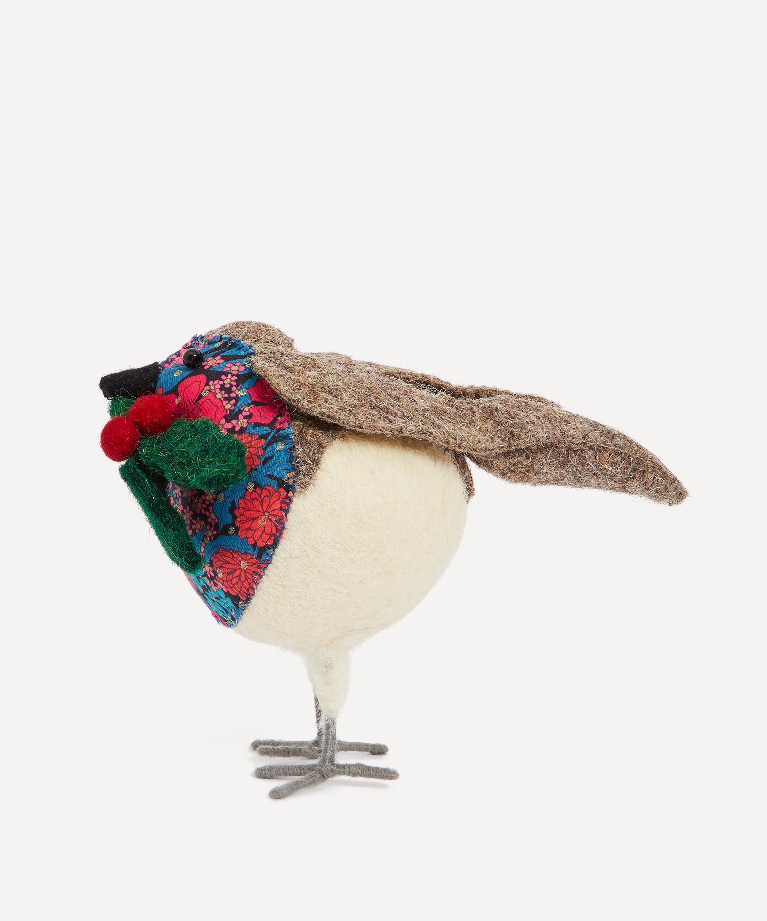 A tactile twist on traditional seasonal décor, this felt and cotton robin is finished with a Liberty print trim and to add further holiday cheer to your Christmas tree. Pair it with your classic and modern baubles and adornments or mix and match it with other novelty pieces for optimal festive flair.