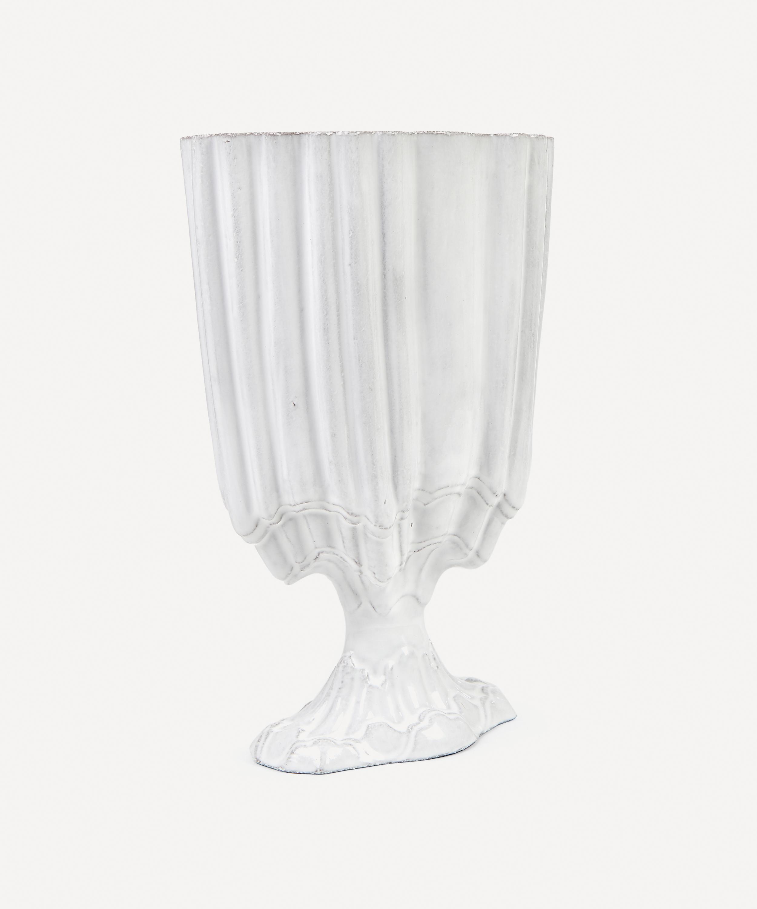 Votary of pre-industrial fabrication, Astier de Villatte is celebrated for being the one and only studio in Paris to hold and harbour the traditions of artisanal ceramic production. Restoring the ancestral systems of moulding and stamping, the Rocaille vase is made using techniques from the Middle Ages which involve moulding a sheet of handmade clay, double firing the ‘biscuit’ piece and glazing the product in white enamel – a lengthy process that requires a drying time of up to one month. Characterised by its elaborate undulations and architectural layers, the vase is engraved with the brand’s signature crest - depicting an interlacing A & V - alongside the initials of one of the 40 master artisans who created it. Each handmade piece tells a beautiful story, it romances and imparts a sense of nostalgia into its owner. Pair with other ornate vases from the collection for a coordinated decorative approach.