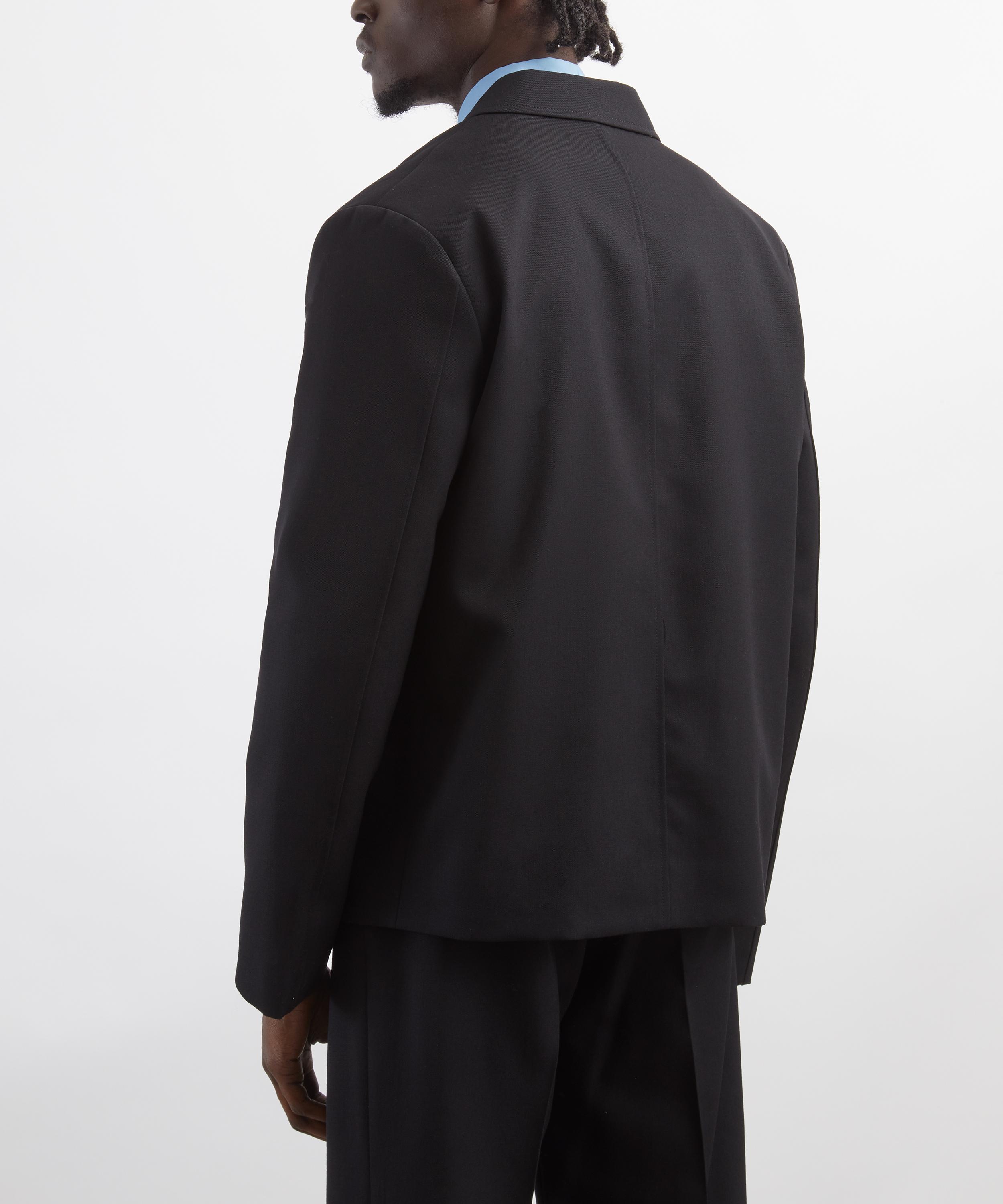 Cut from wool gabardine, it features relaxed tailoring, classic notch lapels and a trio of horn buttons. Pair with an all-black ensemble for a look that is effortlessly sleek.
